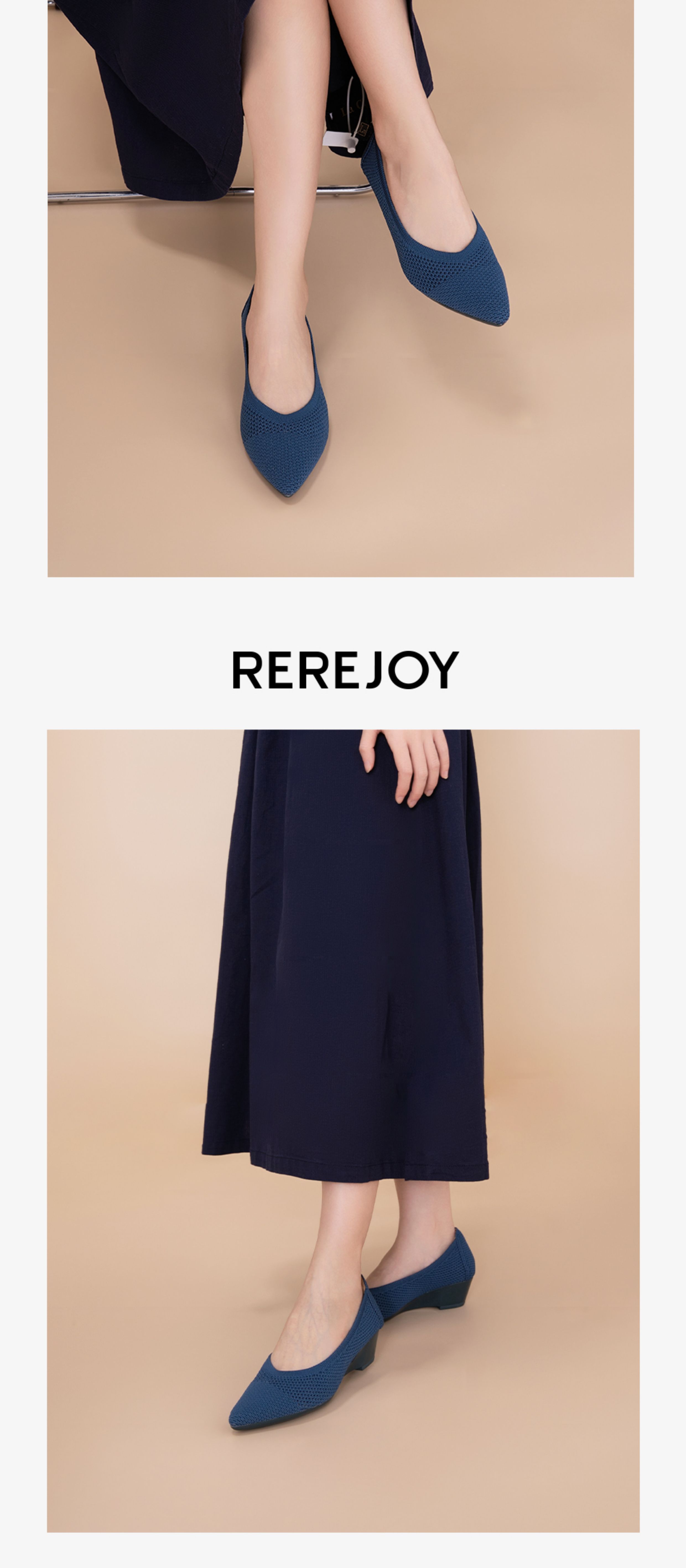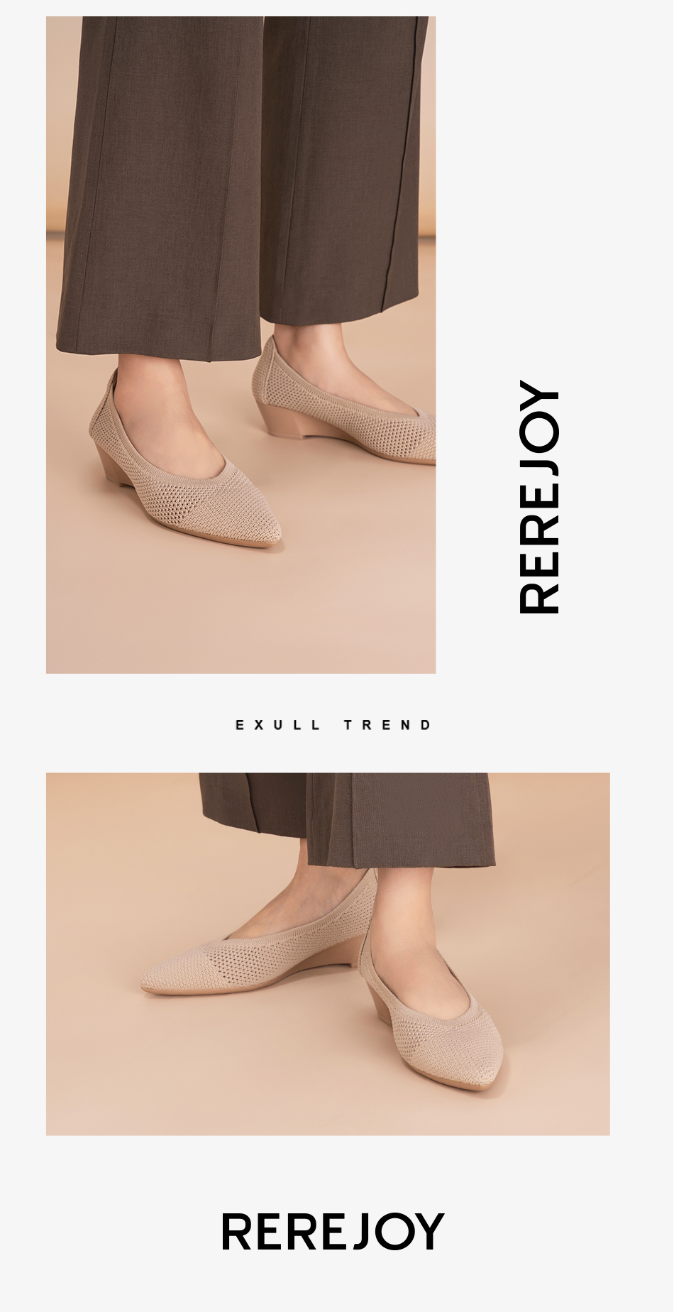 REREJOY王妃鞋飞针编织尖头舒适坡跟2025新款蛋卷镂空透气女单鞋