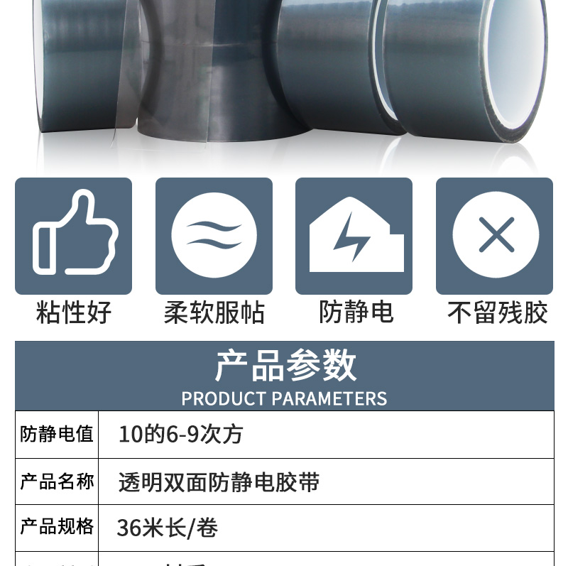 双面透明防静电胶带ESD防静电胶纸10的6-9次方电梯按钮电子包装车间服装标识双抗静电胶带