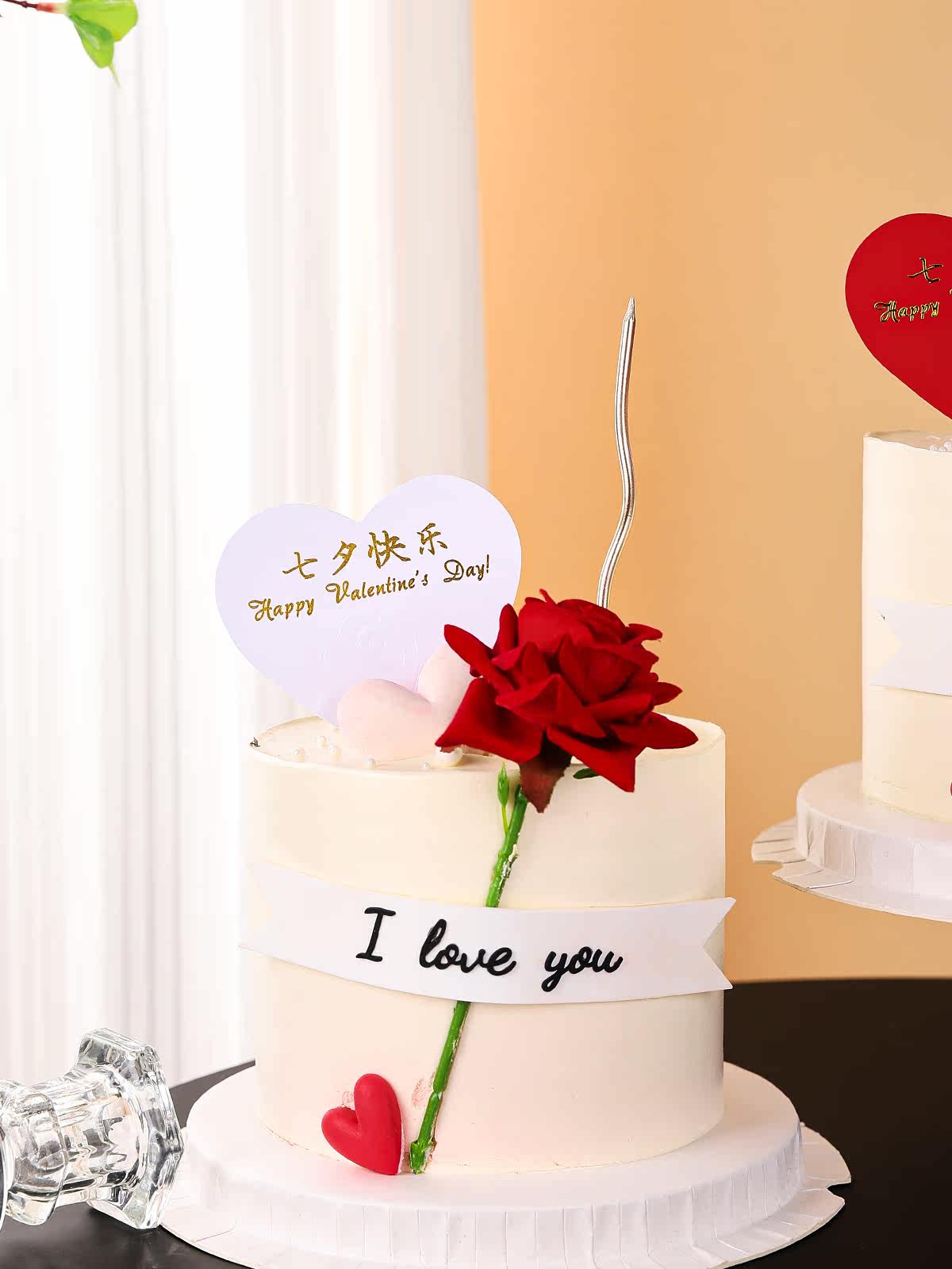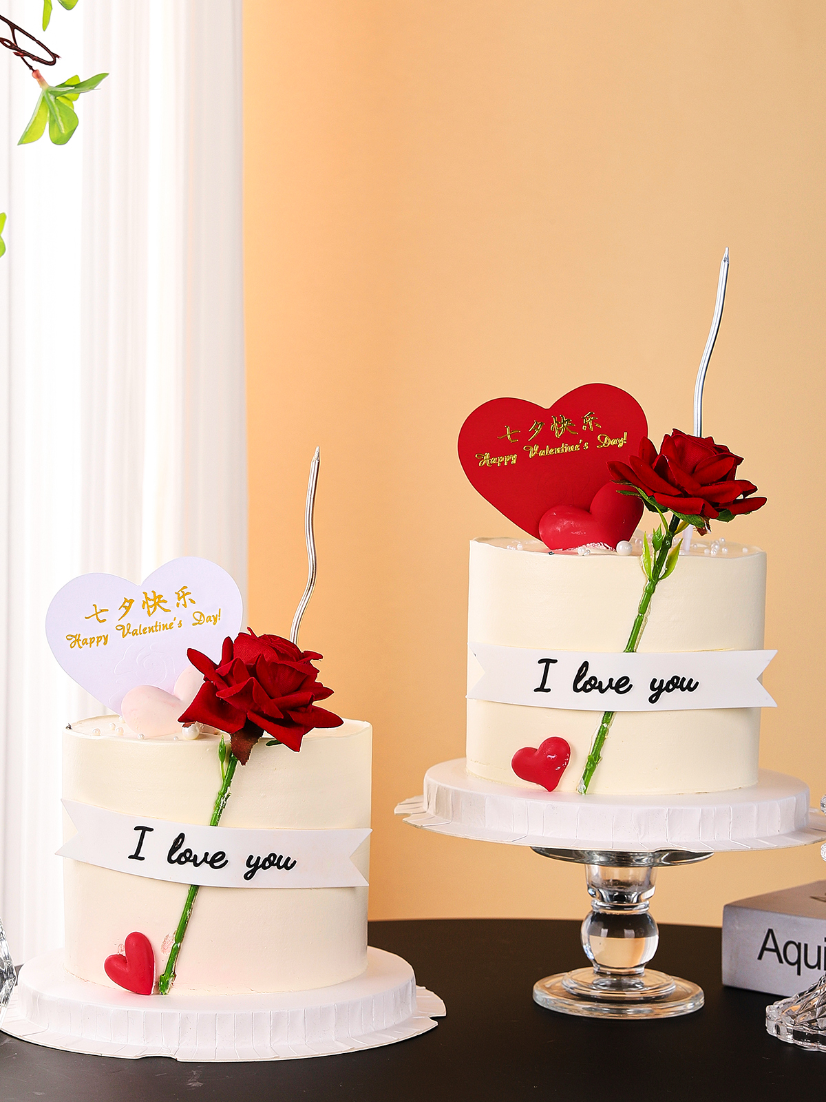 七夕情人节蛋糕装饰爱心卡片仿真玫瑰花摆件情侣告白love装扮插件