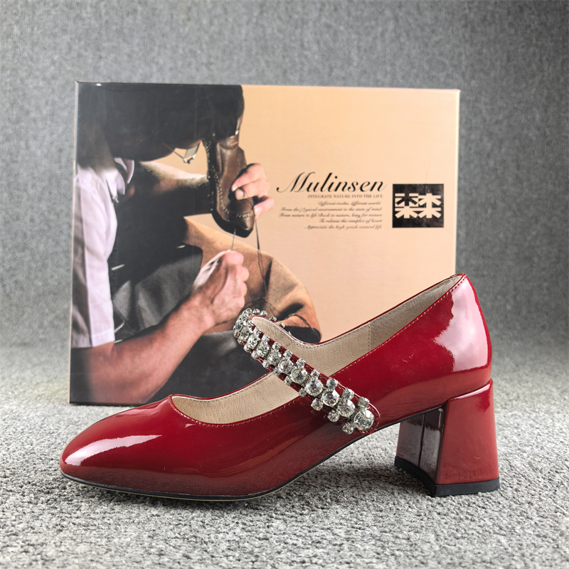 正品撤柜时尚小香风女鞋牛漆皮春秋新款方头浅口真皮玛丽珍单鞋女