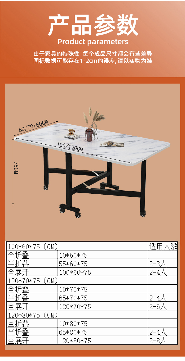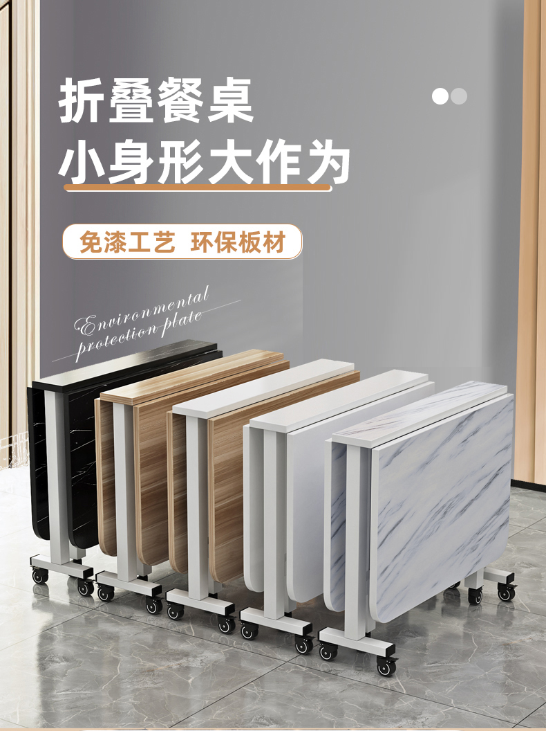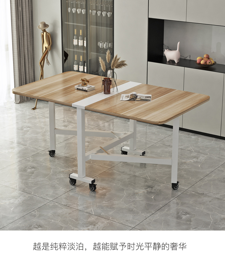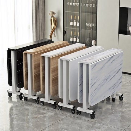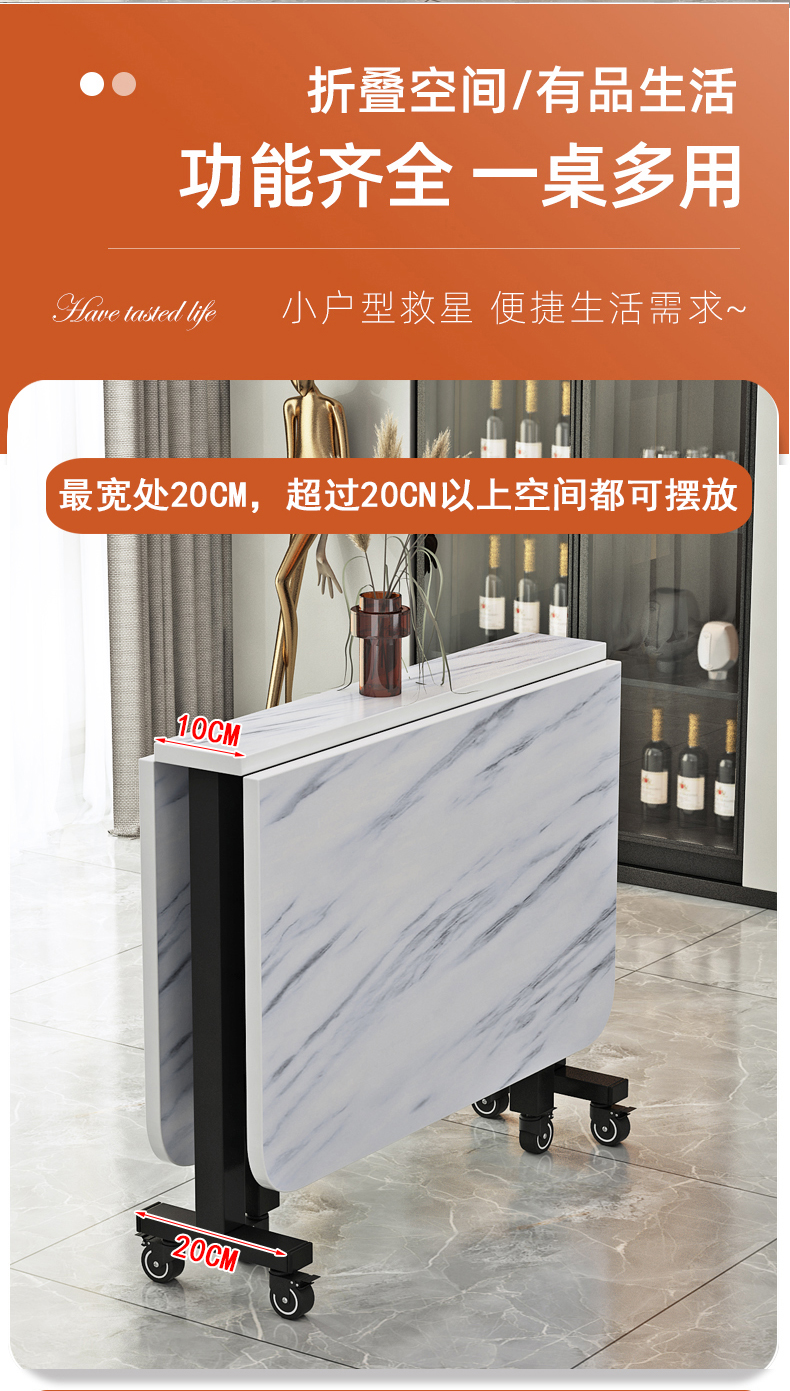 可折叠家用餐桌简约现代厨房长方形桌带轮子小户型出租房简易饭桌