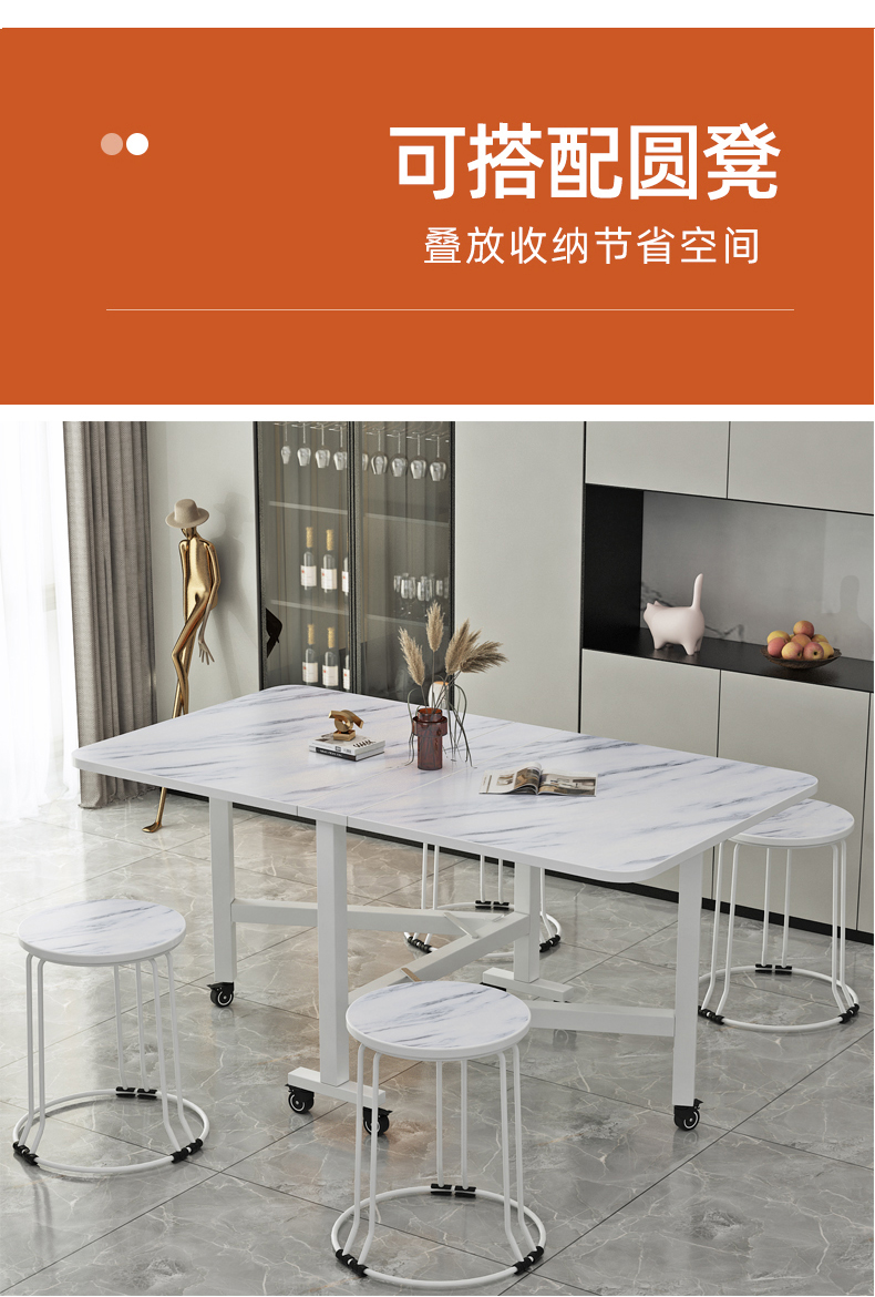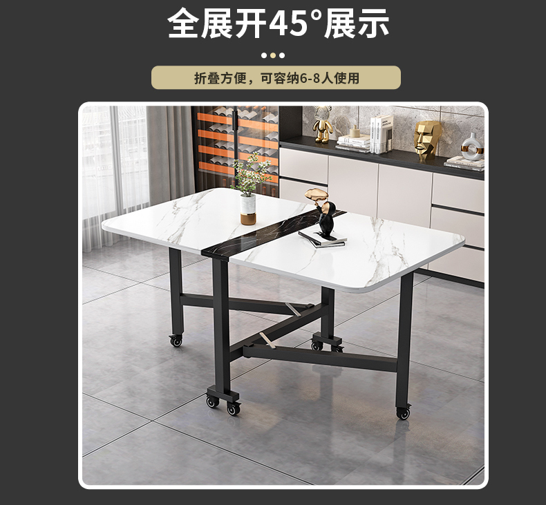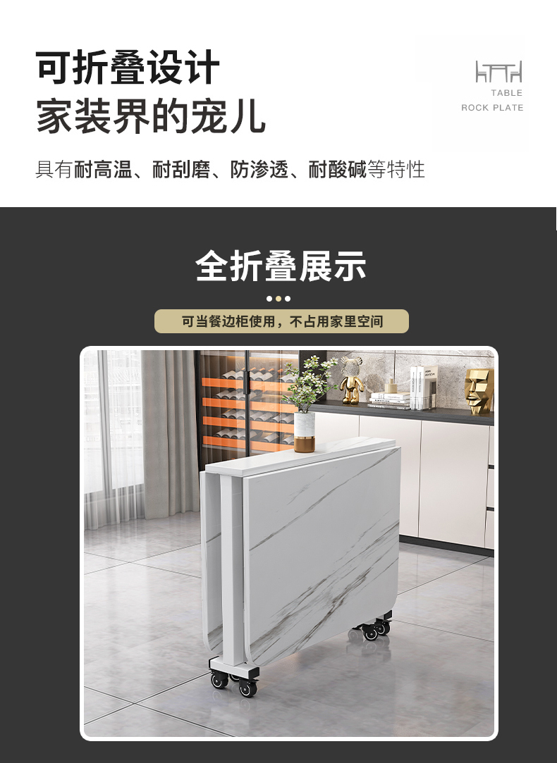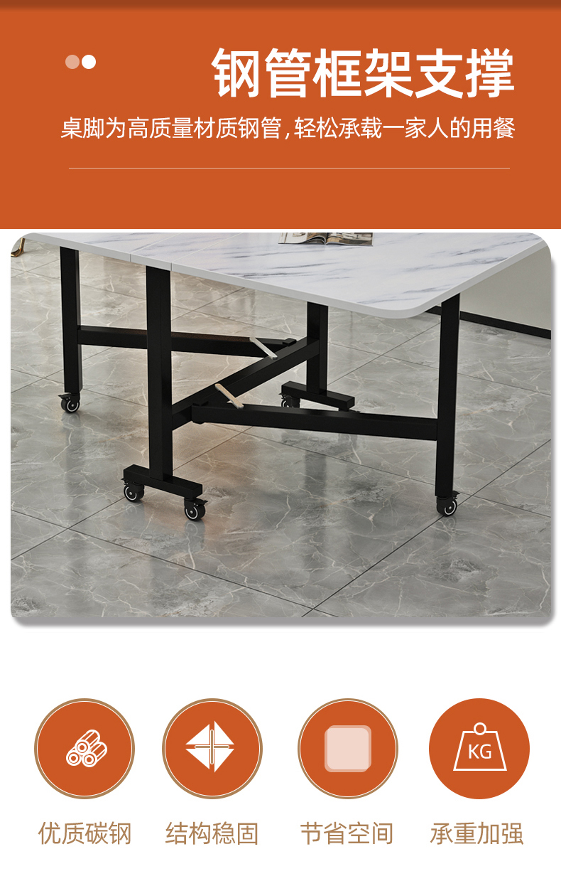 可折叠家用餐桌简约现代厨房长方形桌带轮子小户型出租房简易饭桌