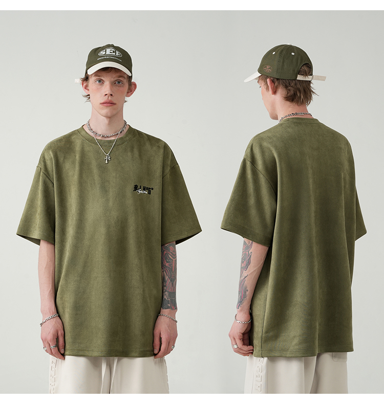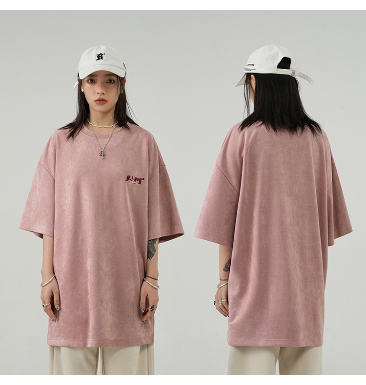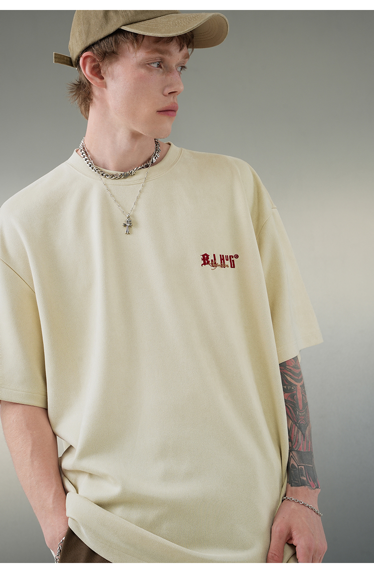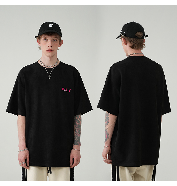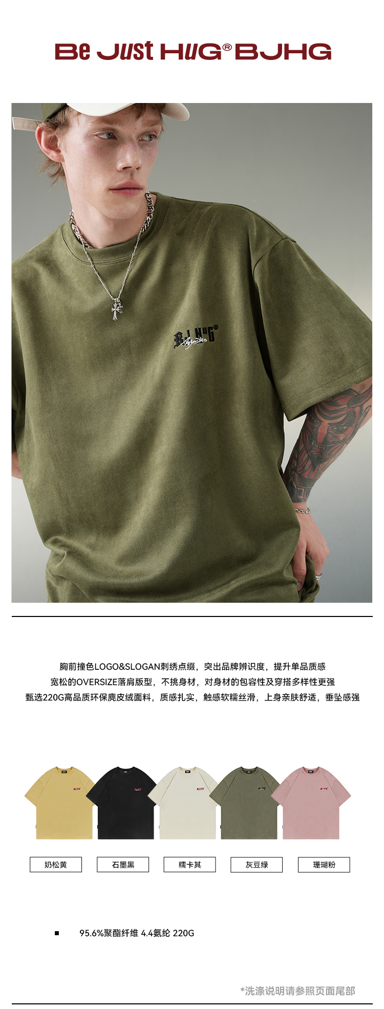 BJHG不计后果撞色刺绣t恤短袖男款夏季环保麂皮绒半袖情侣装T恤女