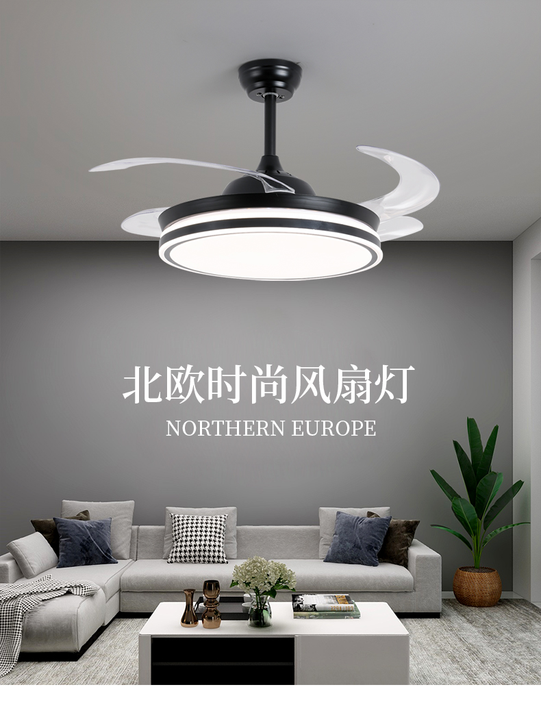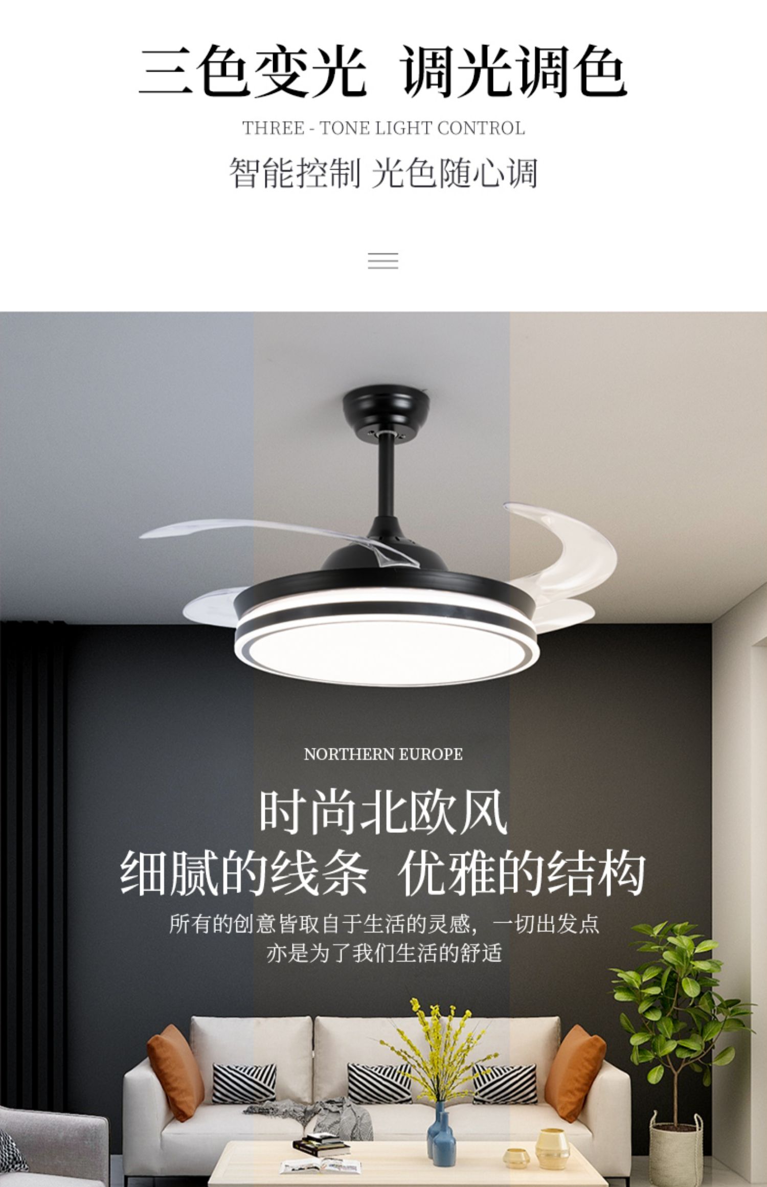 蓝牙风扇灯吊扇灯带灯一体隐形客餐厅家用轻奢简约现代电风扇吊灯