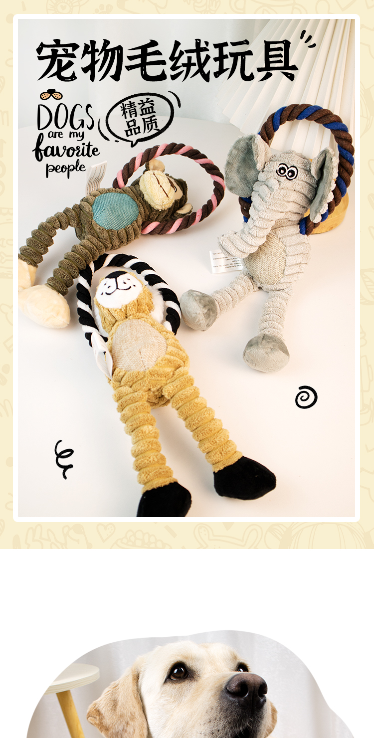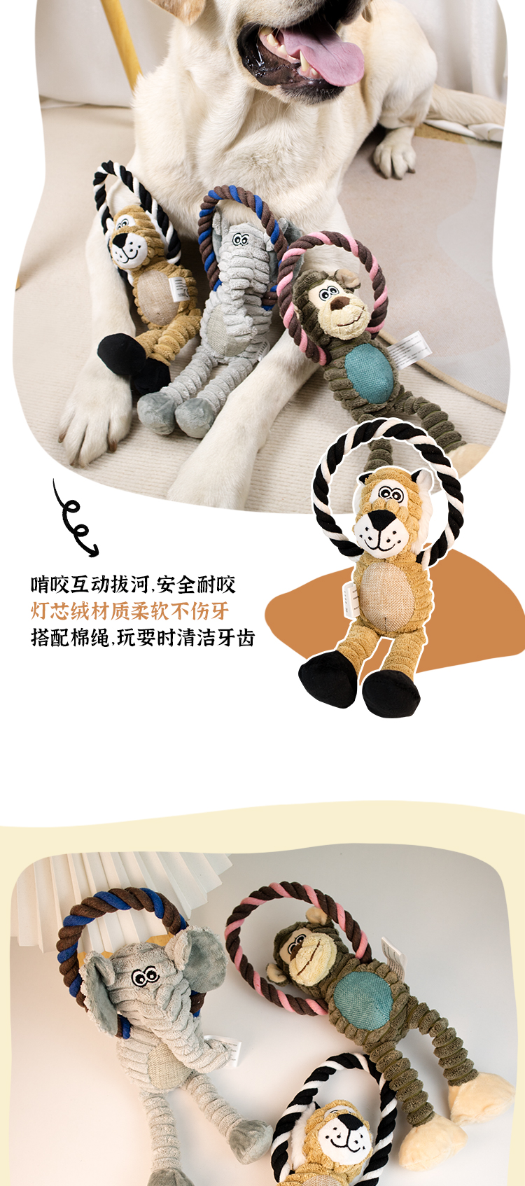 宠物狗狗毛绒玩具狮子猴子大象互动啃咬发声绳结陪伴玩具大型犬