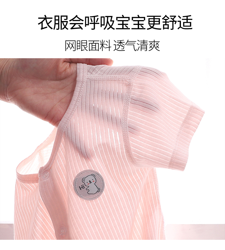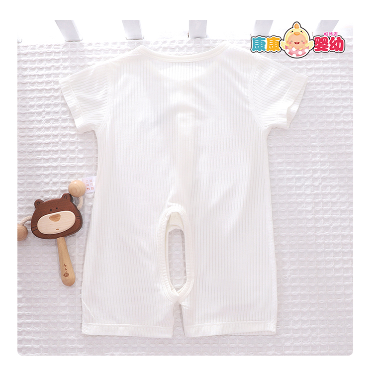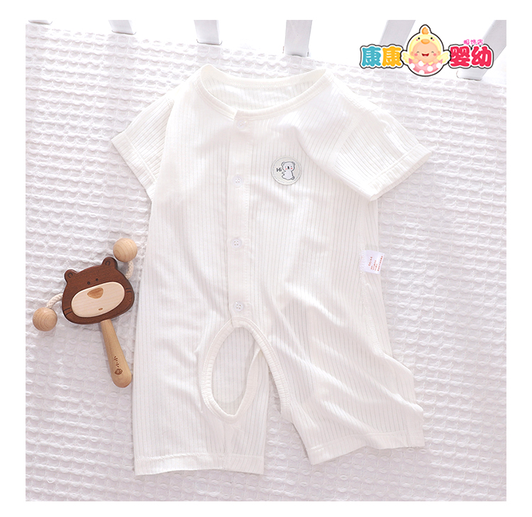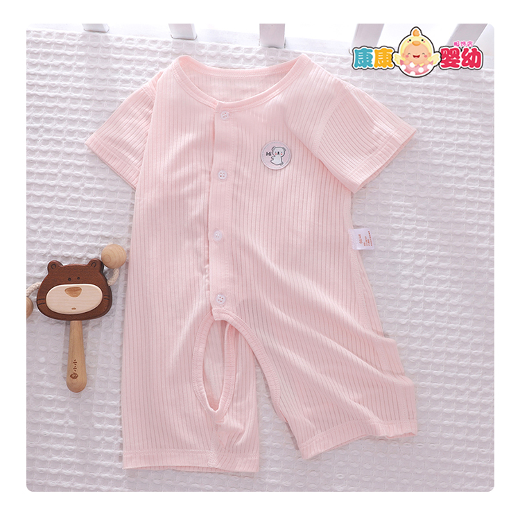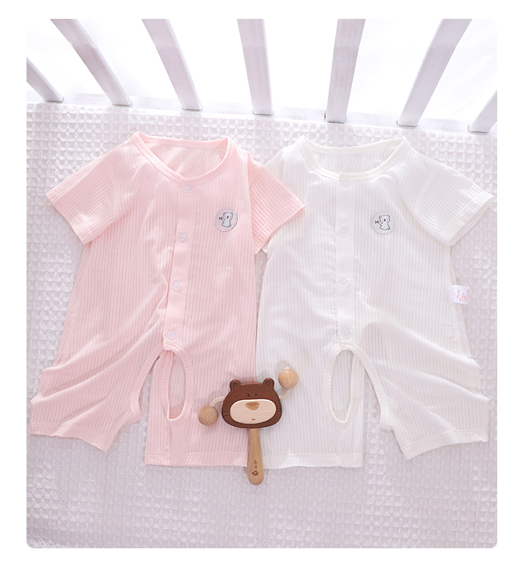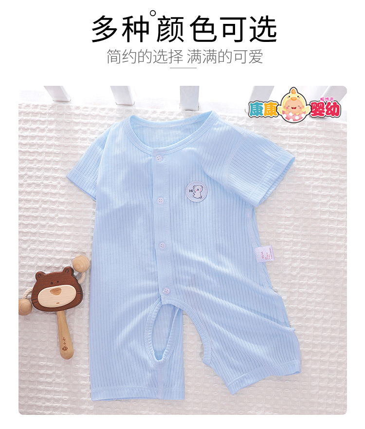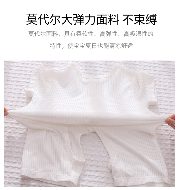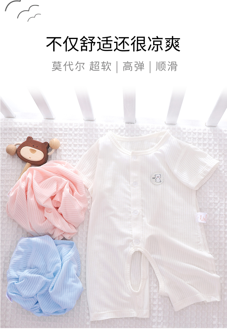 新生婴儿短袖连体衣开裆爬服夏季薄款哈衣男女宝宝睡衣冰丝莫代尔
