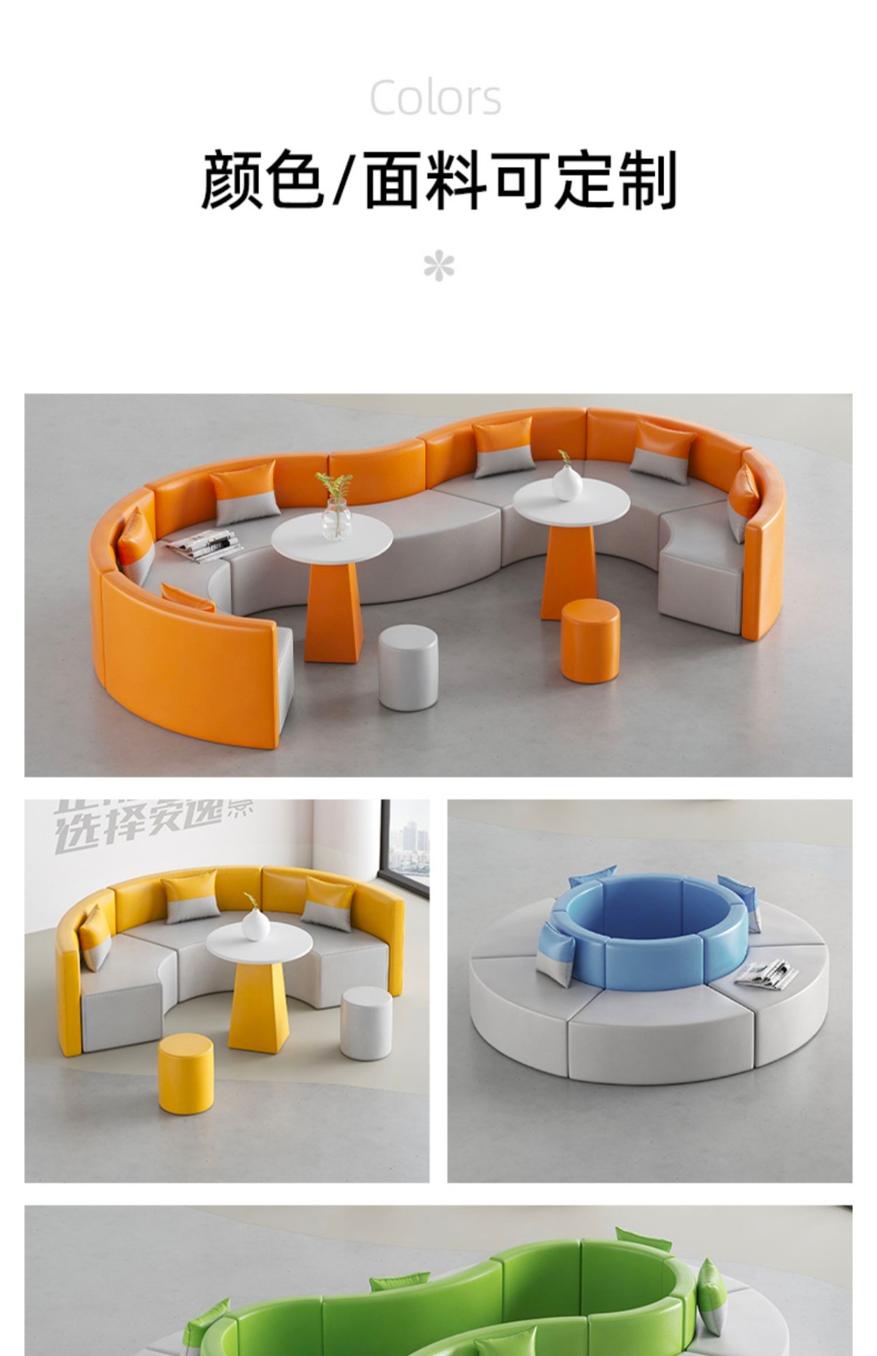 创意休息区休闲沙发茶几组合简约S圆弧型皮质会客接待等候办公室