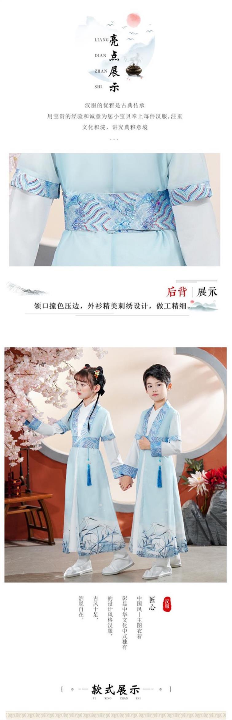 儿童汉服男童国学演出服中国风日常套装超仙小孩女童古装夏季薄款