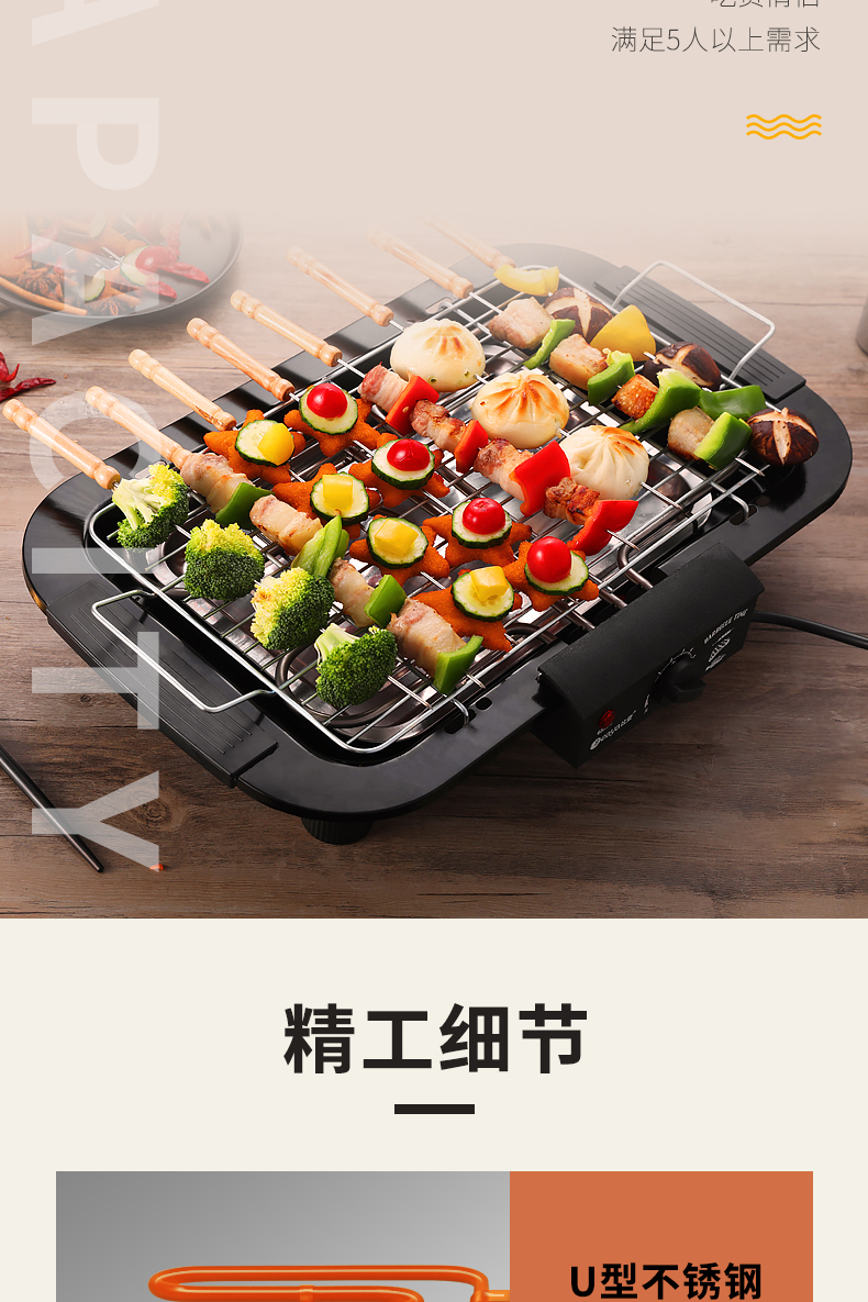 比亚电烧烤炉家用无烟烧烤架室内烤串炉子韩式多功能电烤盘烤肉锅