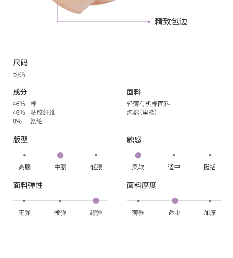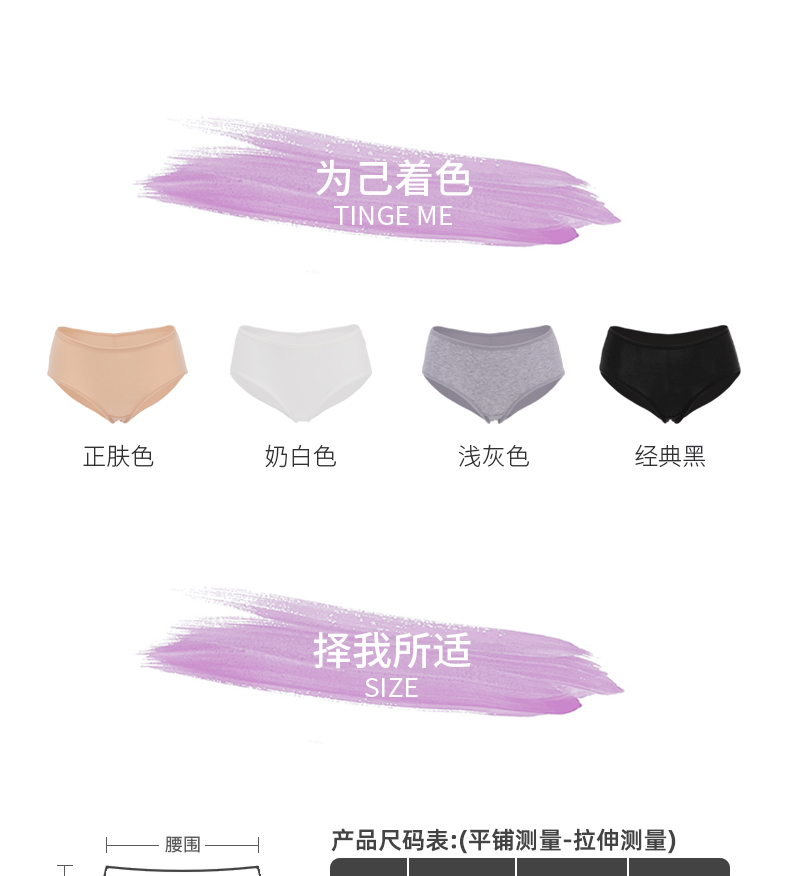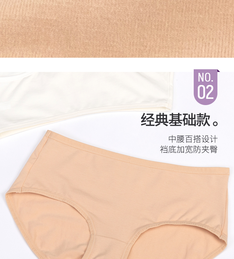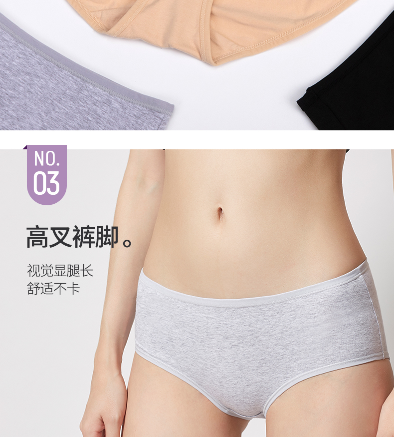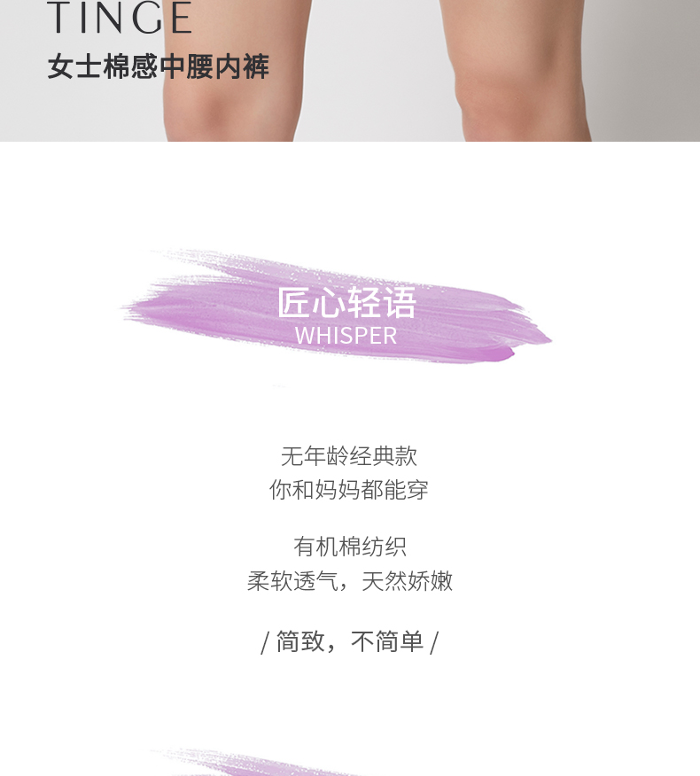 TINGE精梳棉纯色女士内裤女纯棉抗菌裆中腰无痕新疆长绒棉三角裤