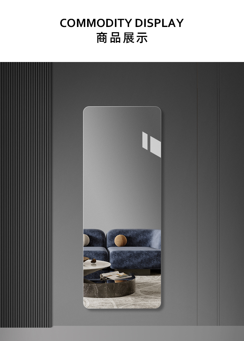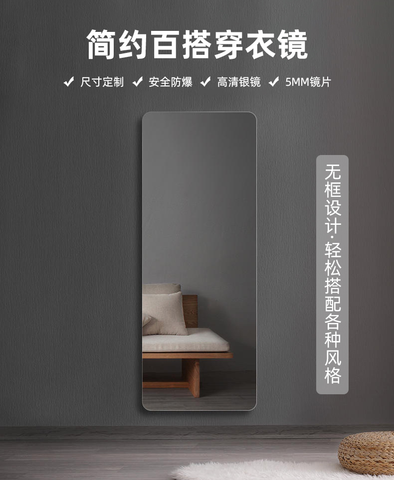 家用玻璃无边框镜子全身穿衣镜壁挂式贴墙自粘试衣镜挂墙式免打孔