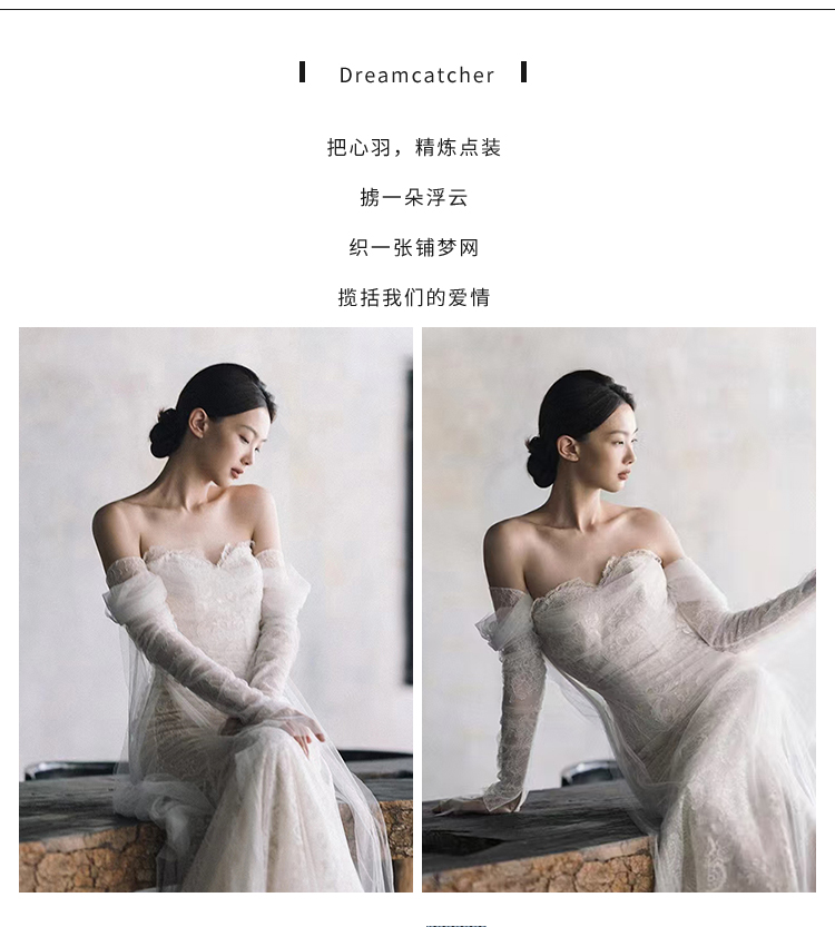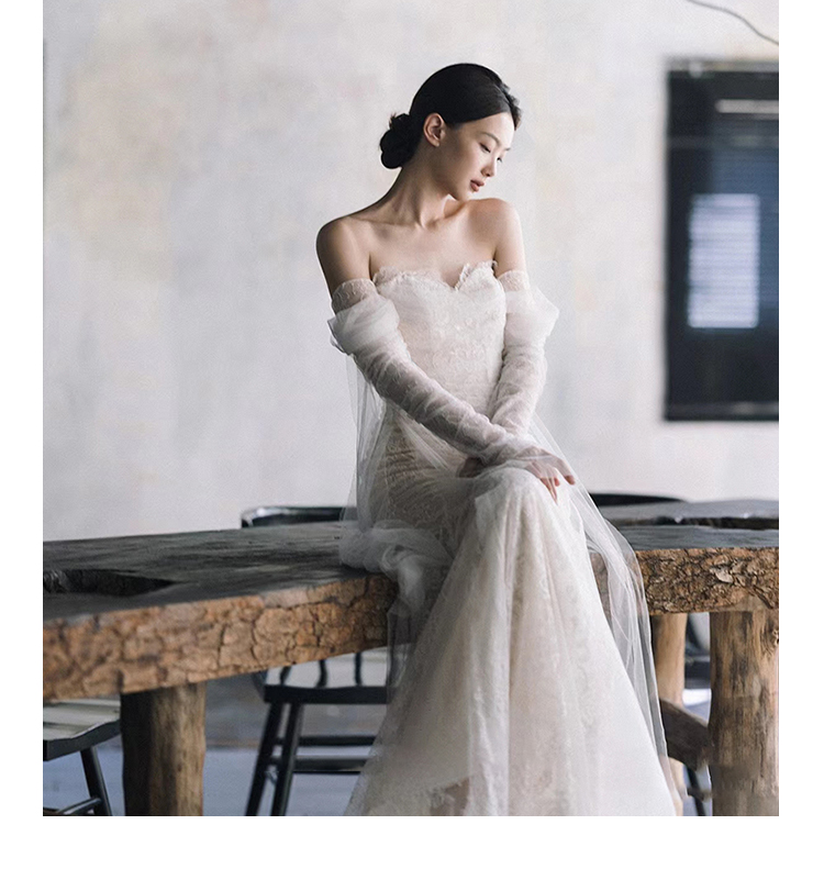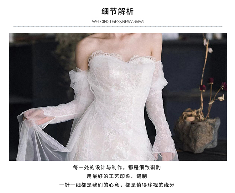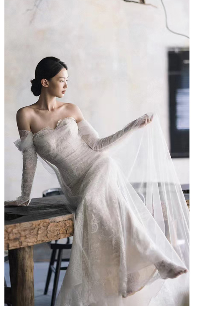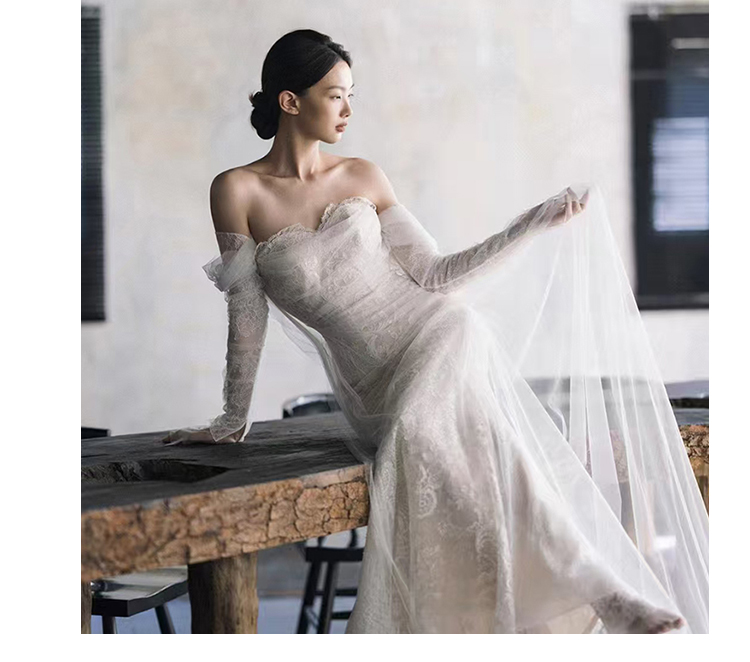 一字肩轻婚纱蕾丝法式鱼尾主婚纱高级感新娘新款结婚迎宾出门纱