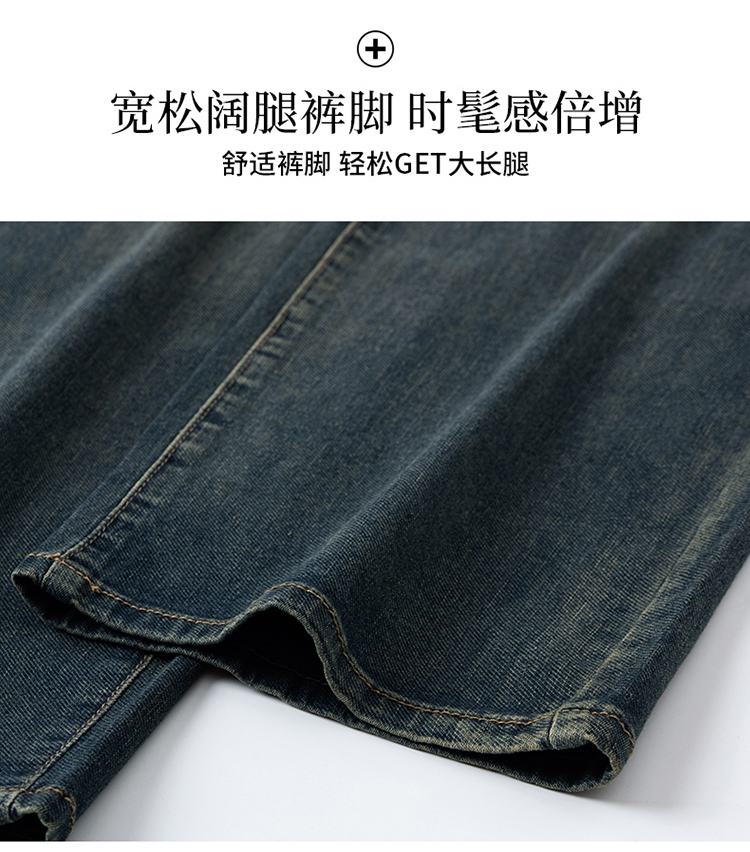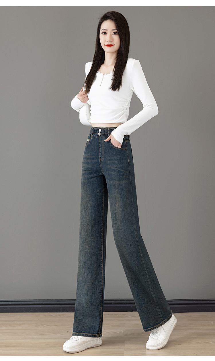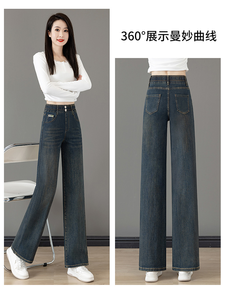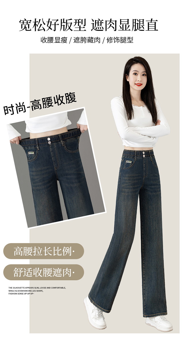 复古窄版松紧腰直筒牛仔裤女2025春季新款胖妹妹小个子窄版阔腿裤