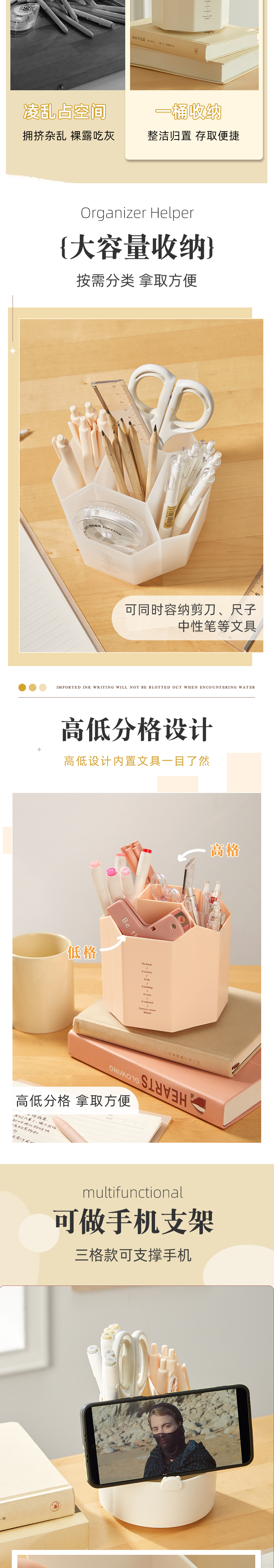 三年二班 360度旋转笔筒收纳盒轻奢高级感学生桌面多功能笔架儿童男孩笔桶办公室创意摆件大容量女孩可爱笔盒
