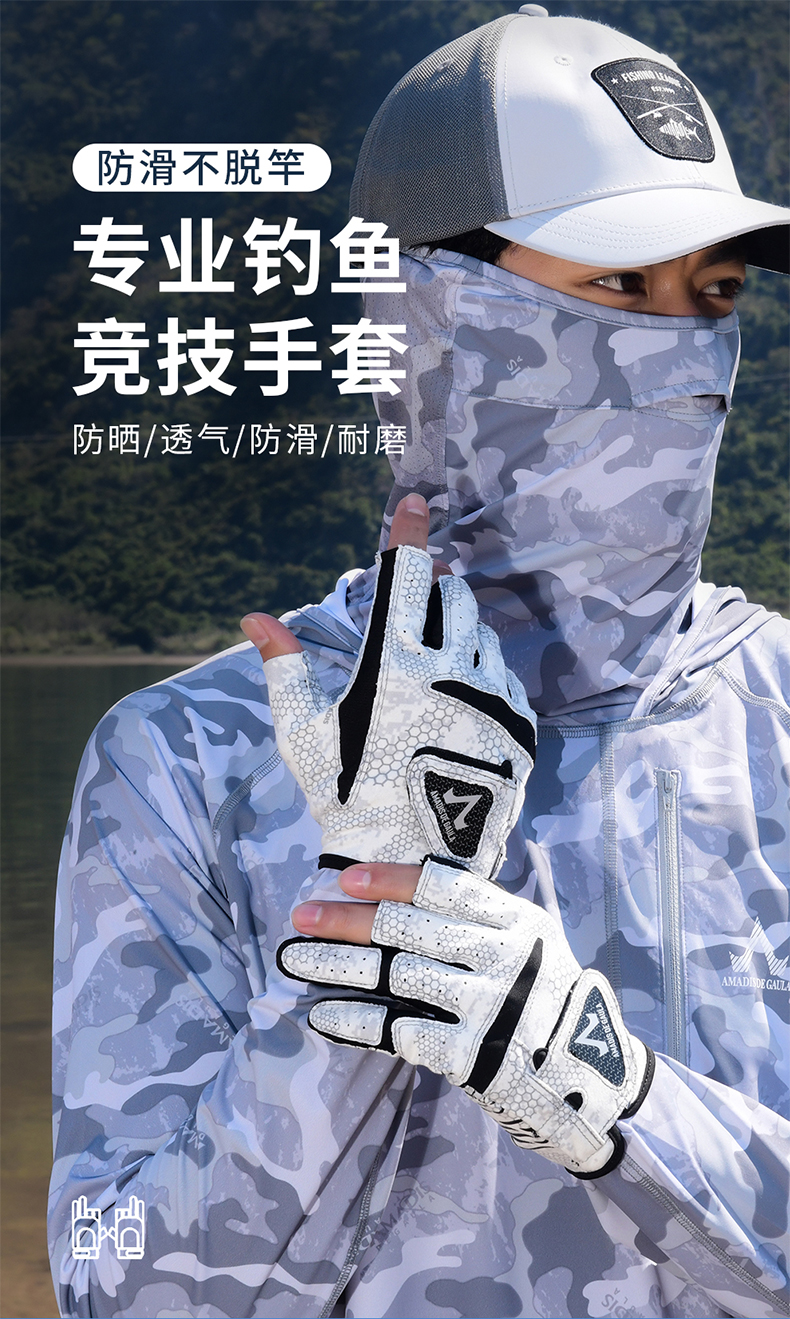 阿玛迪斯钓鱼手套夏薄款速干路亚半指男女露三指防割防刺海钓飞磕