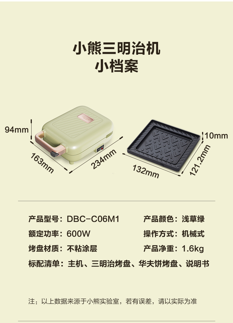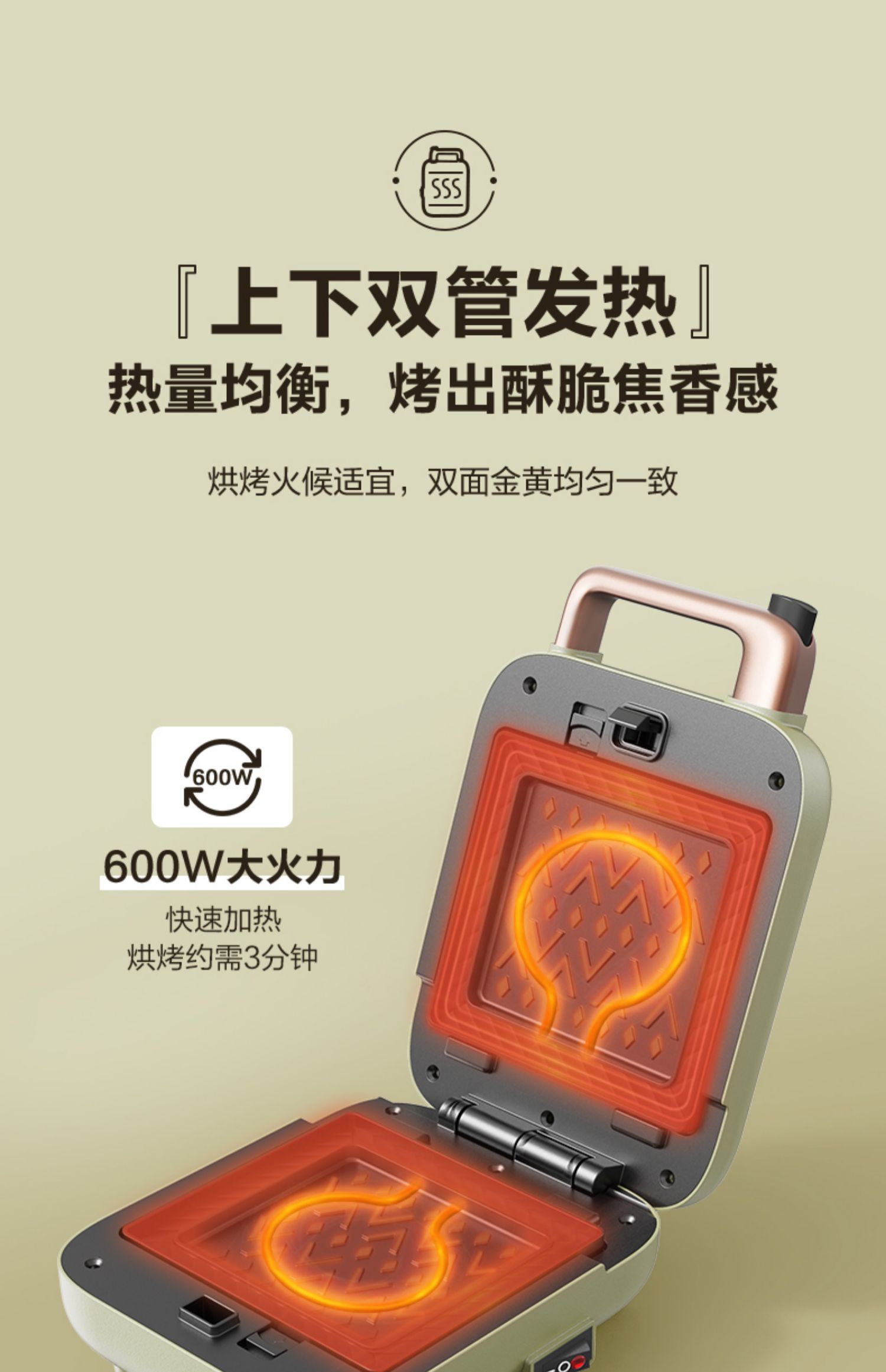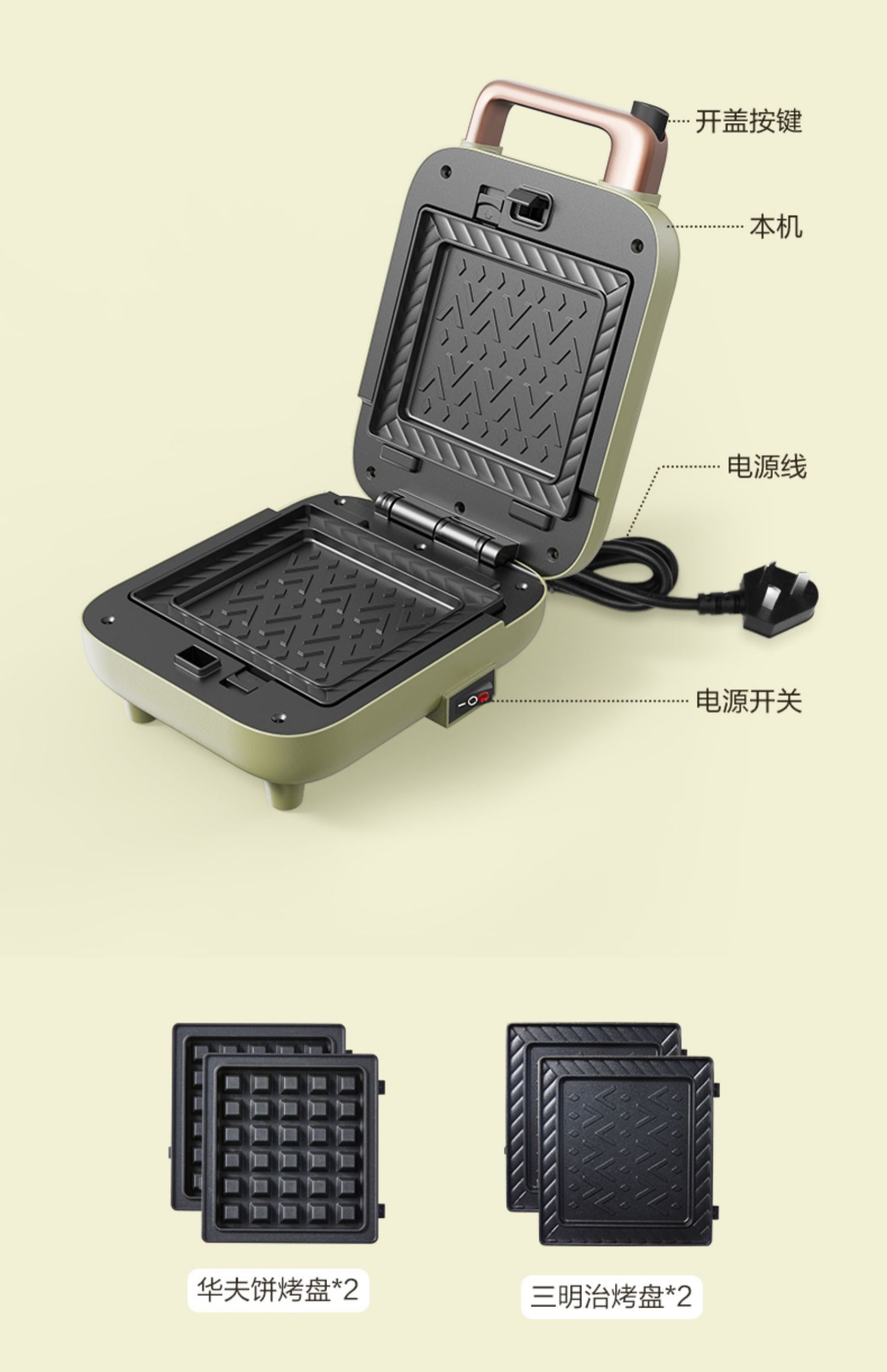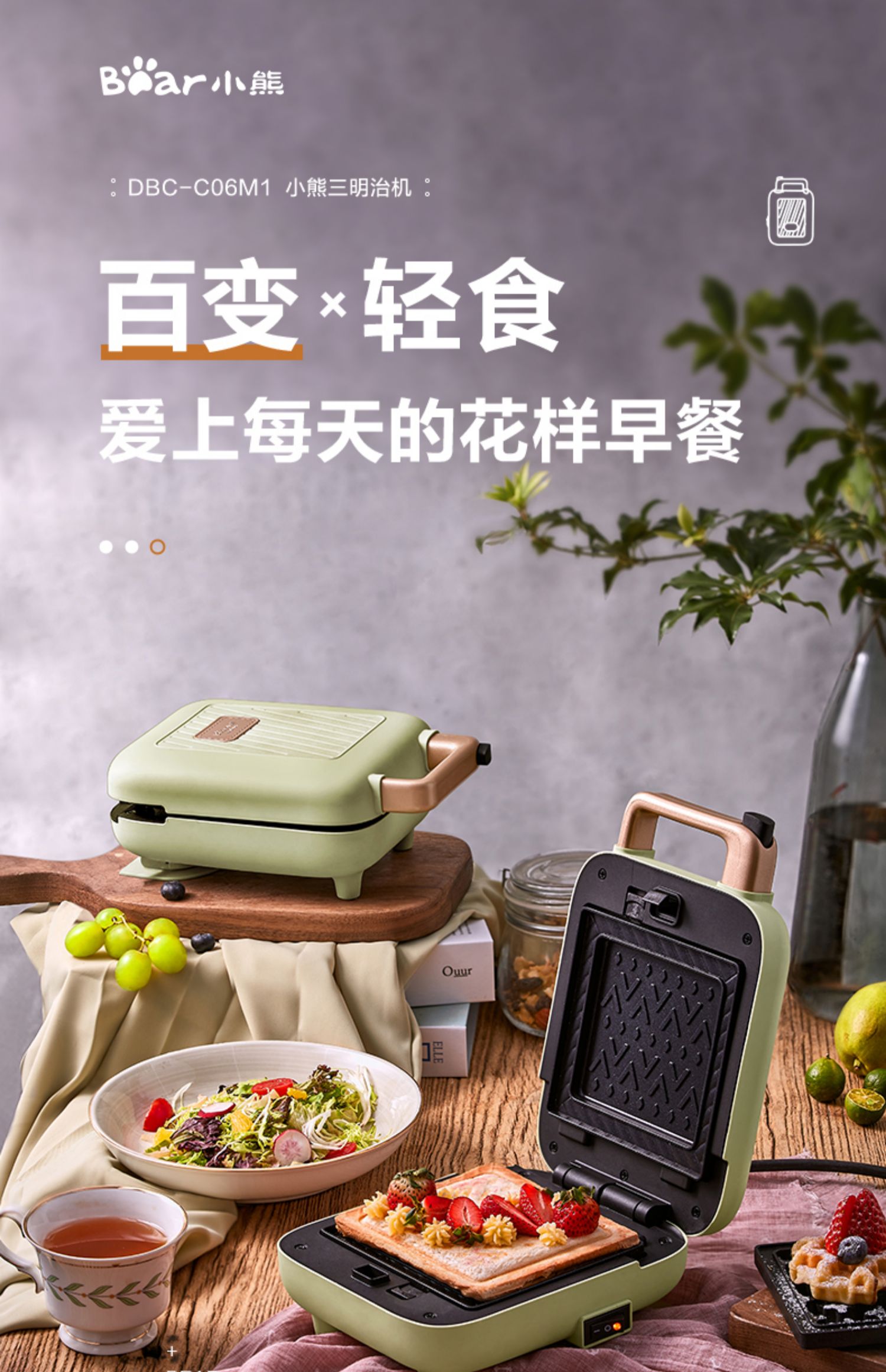 小熊三明治机多功能早餐机神器懒人家用小型烤面包机轻食华夫饼机