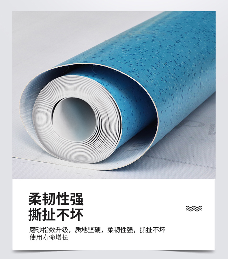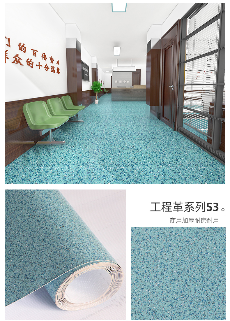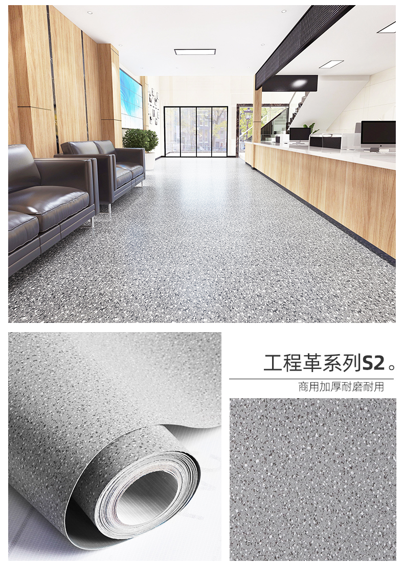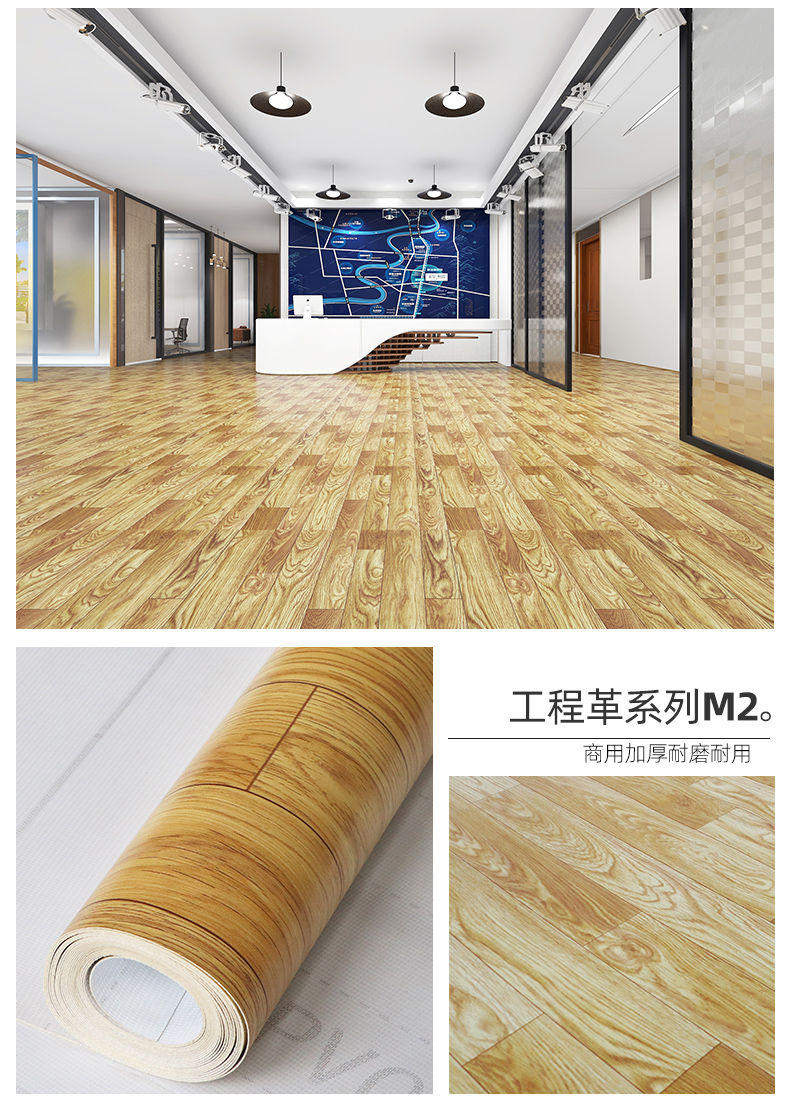 PVC商用地板革加厚耐磨办公室医院厨房地胶防水塑胶全塑实心地胶