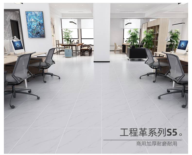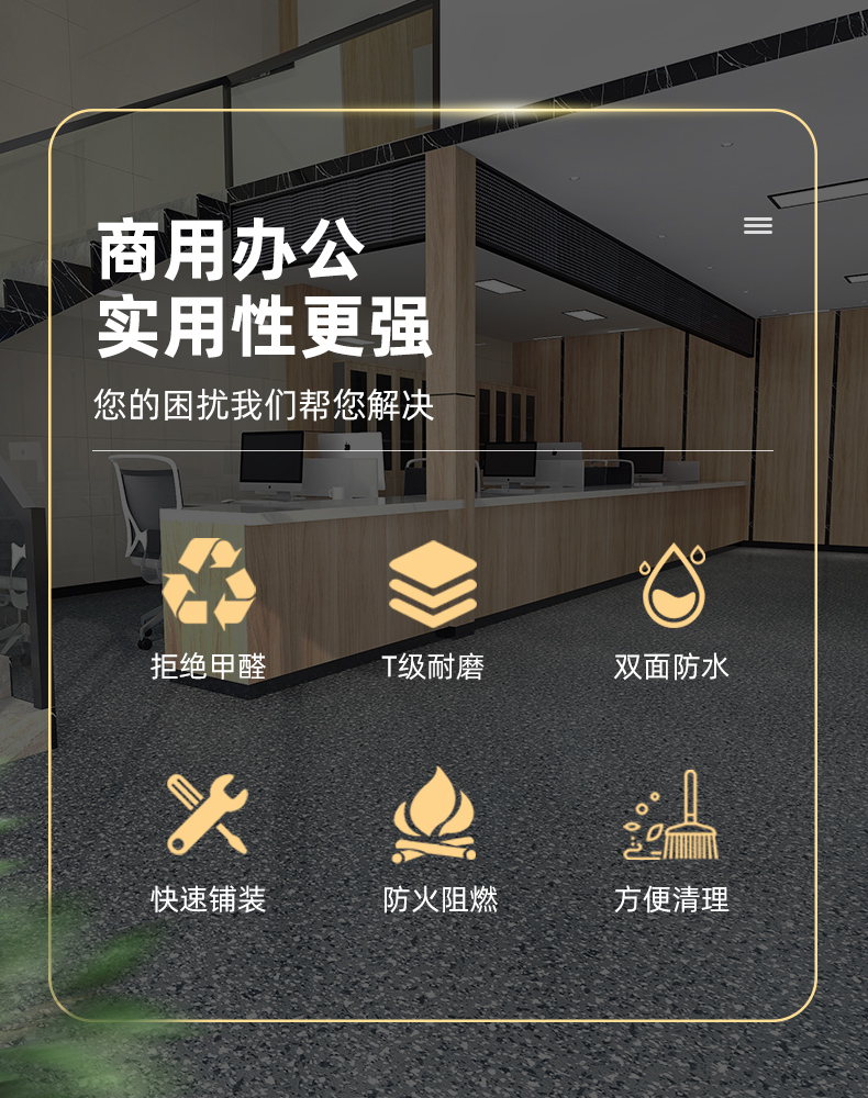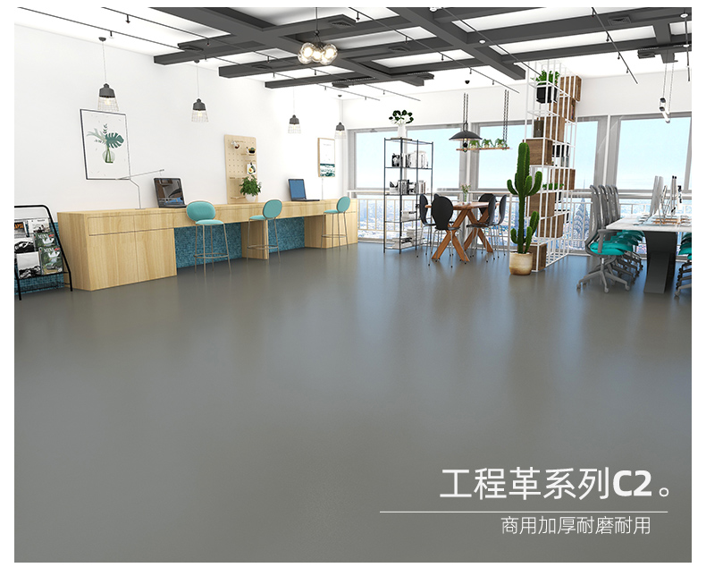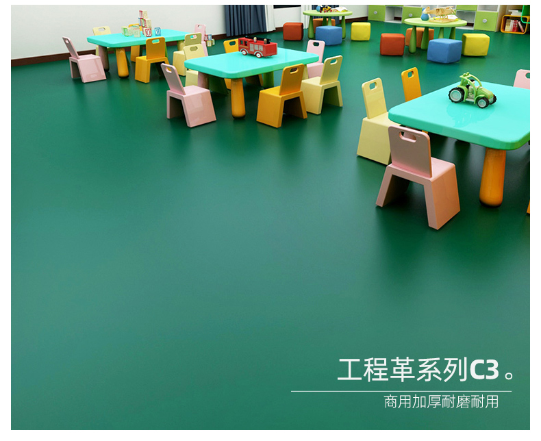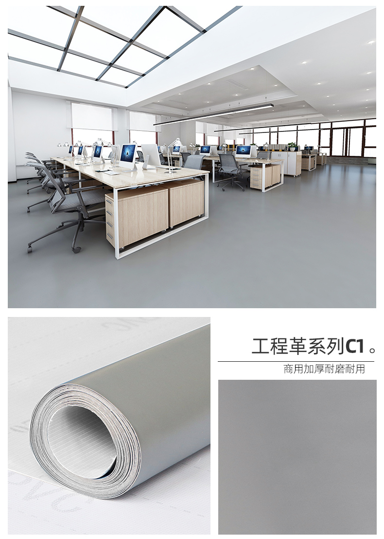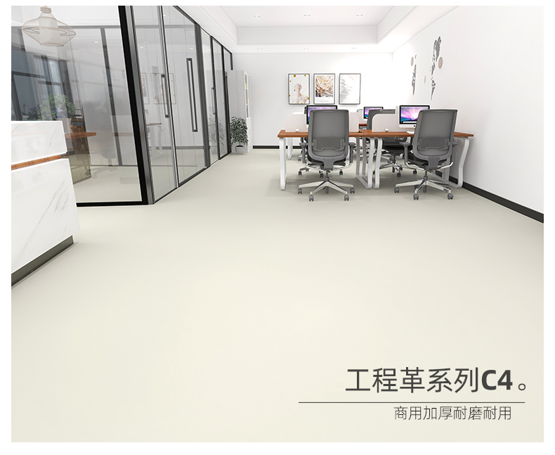PVC商用地板革加厚耐磨办公室医院厨房地胶防水塑胶全塑实心地胶