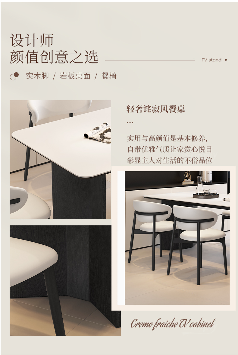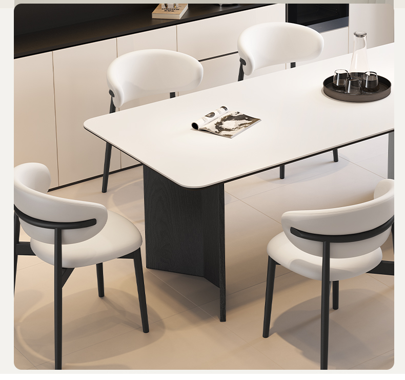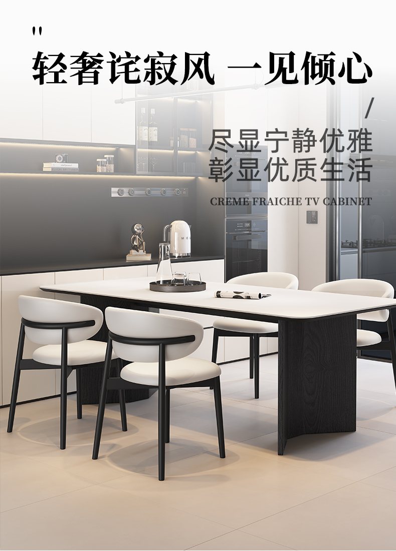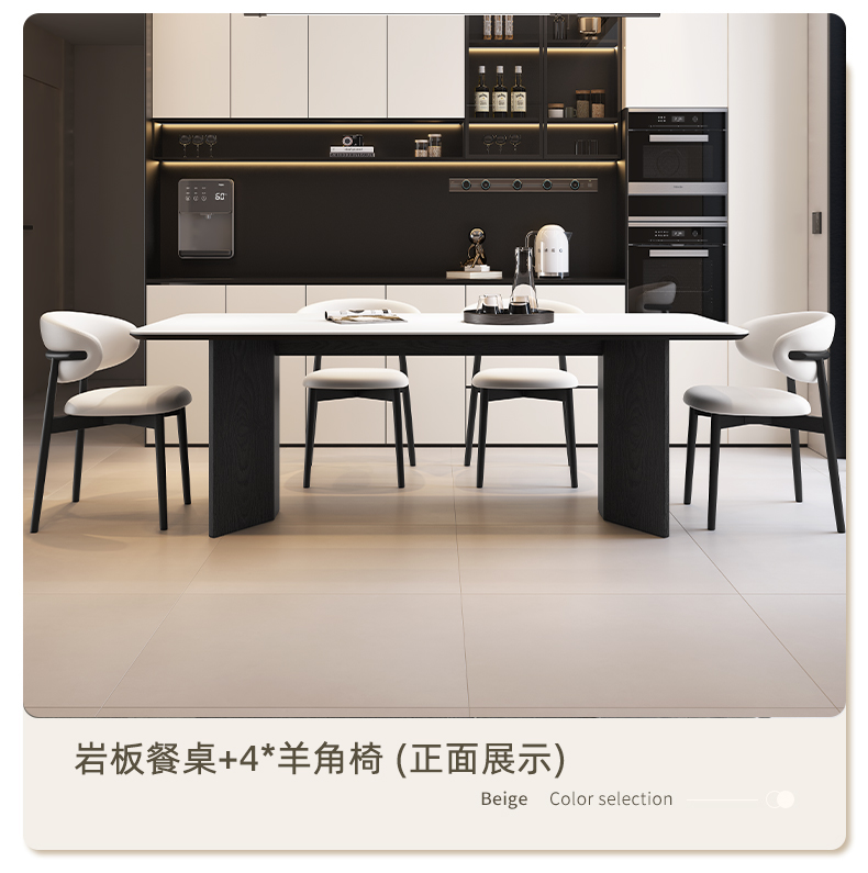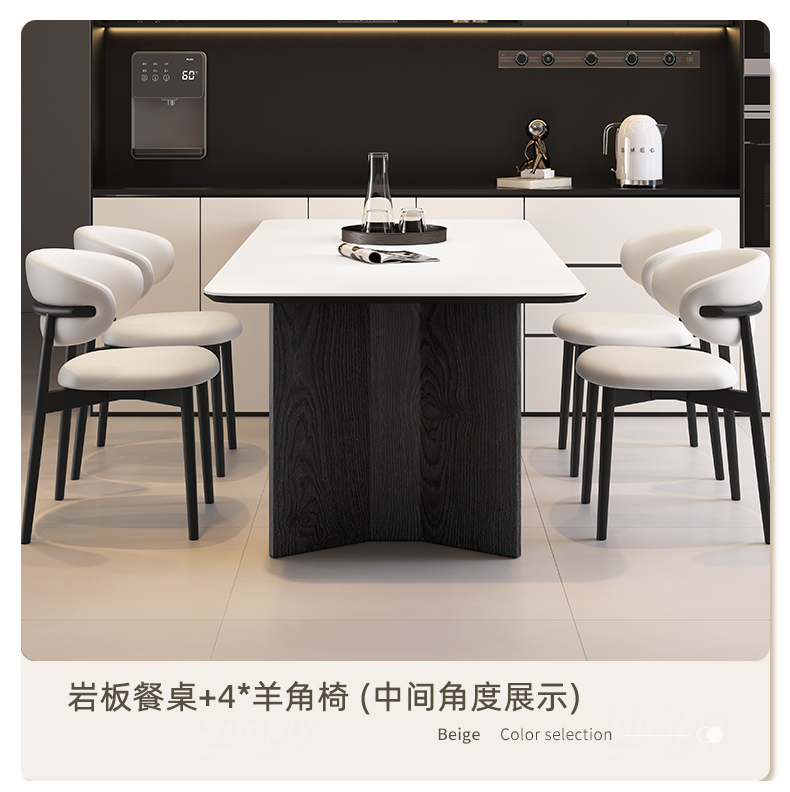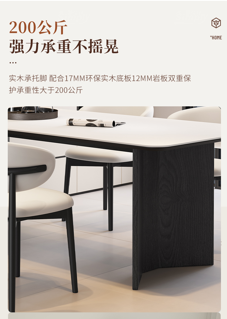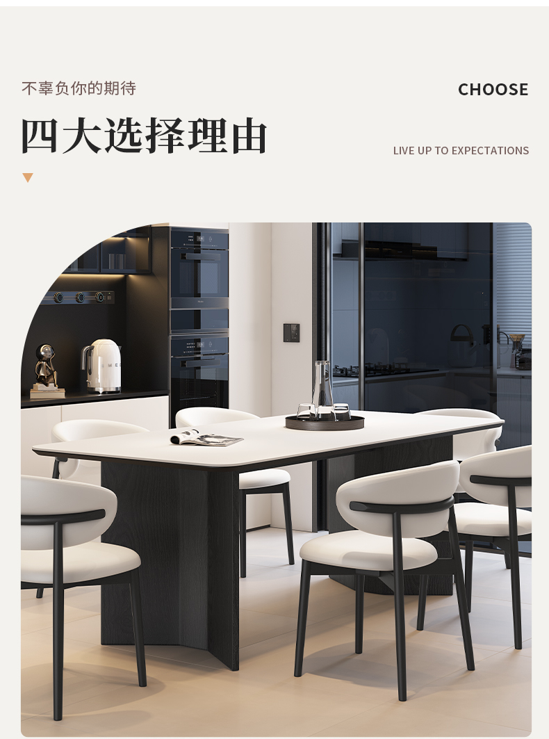 实木小户型意式极简白色岩板长方形餐桌椅组合家用现代简约饭桌子