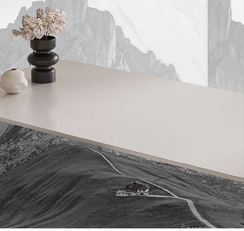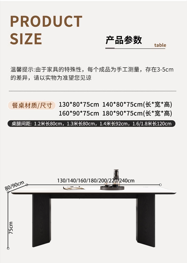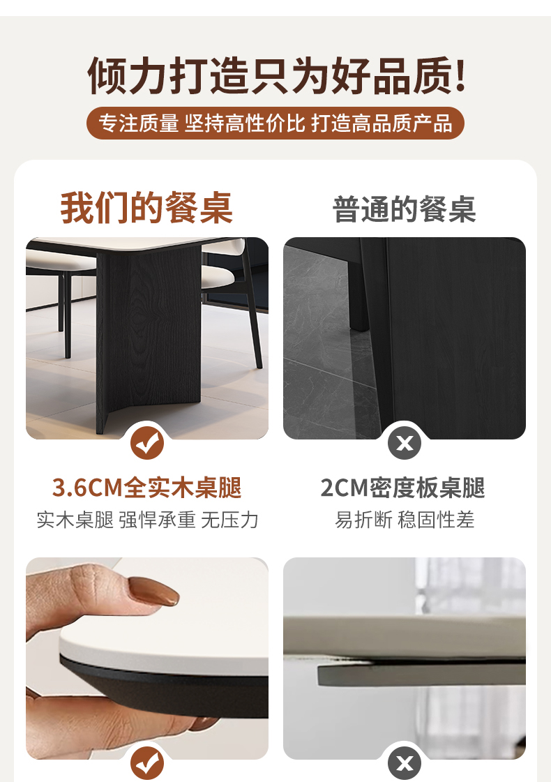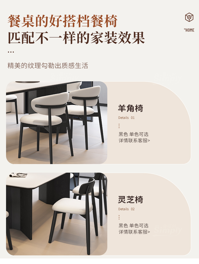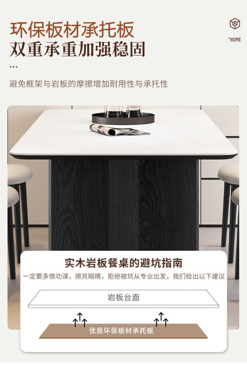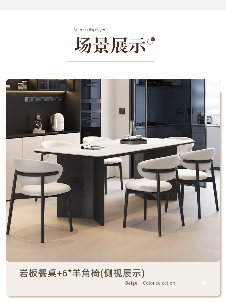 实木小户型意式极简白色岩板长方形餐桌椅组合家用现代简约饭桌子