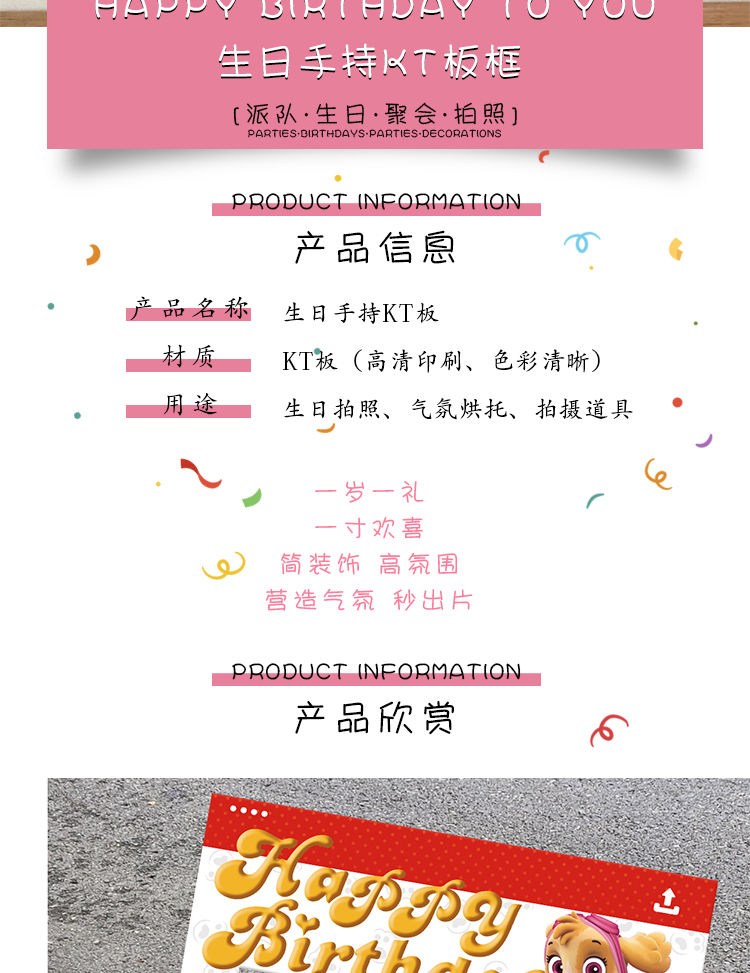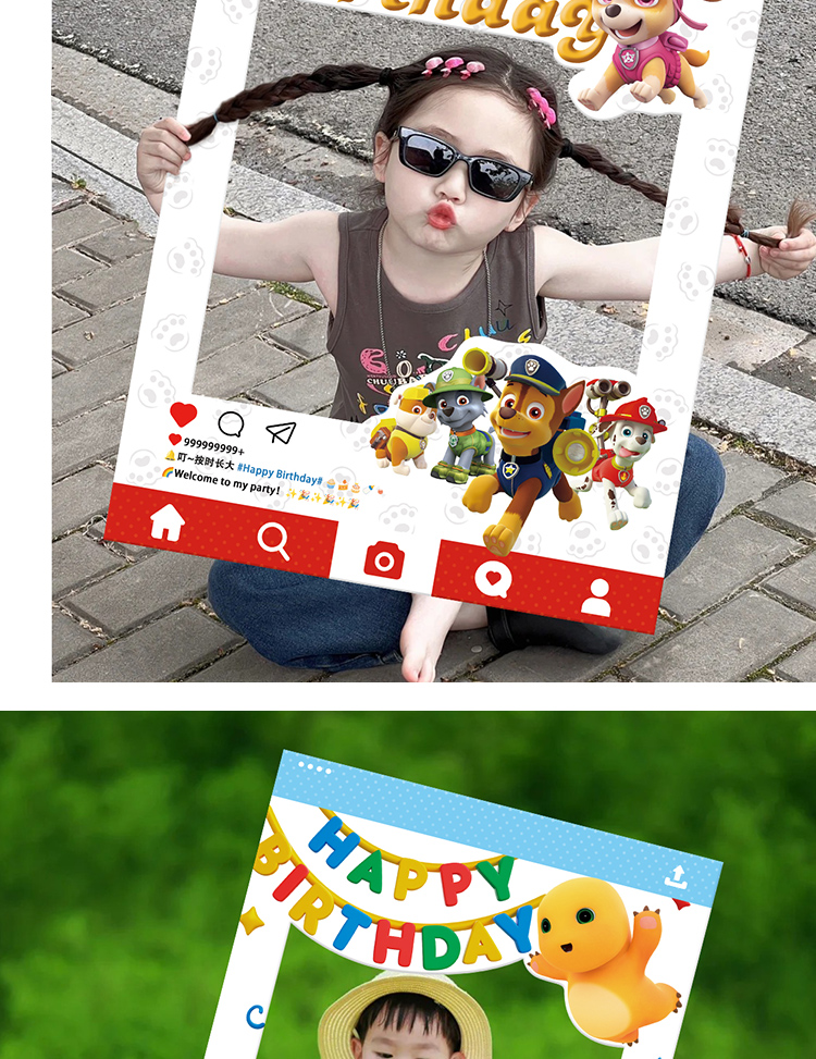 儿童手持拍照相框kt板宝宝周岁生日聚会派对装饰布置氛围道具
