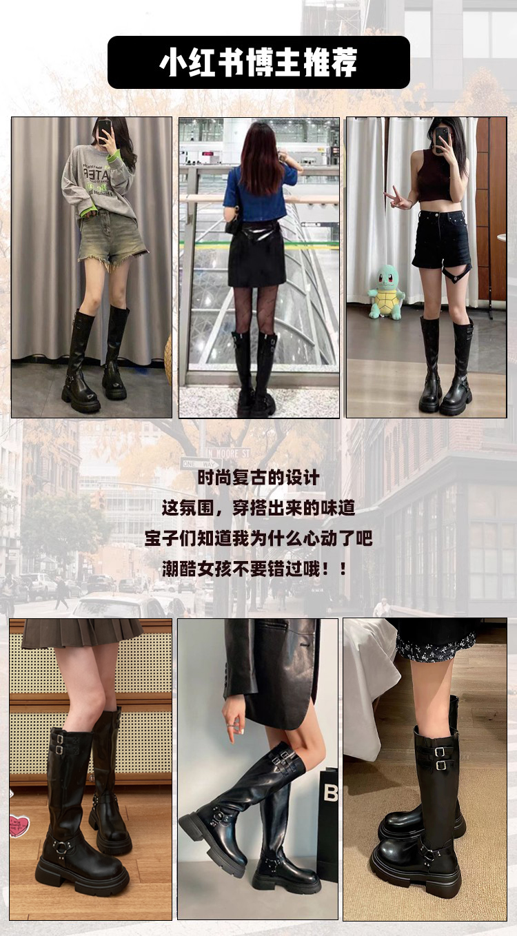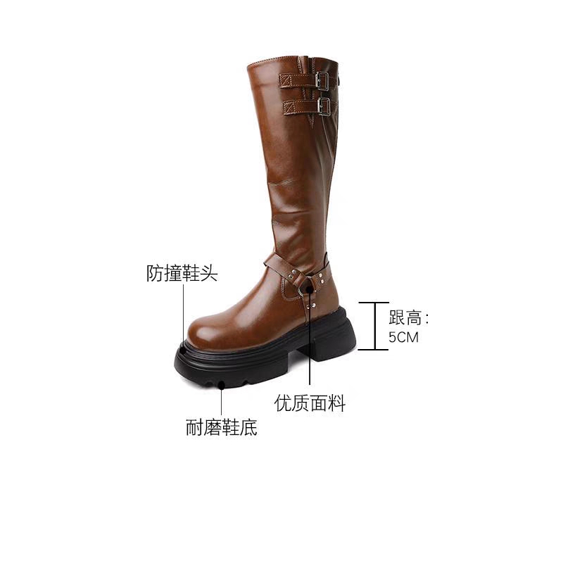 加绒靴子女长筒靴厚底小个子2024秋季新款复古不过膝骑士靴高筒靴