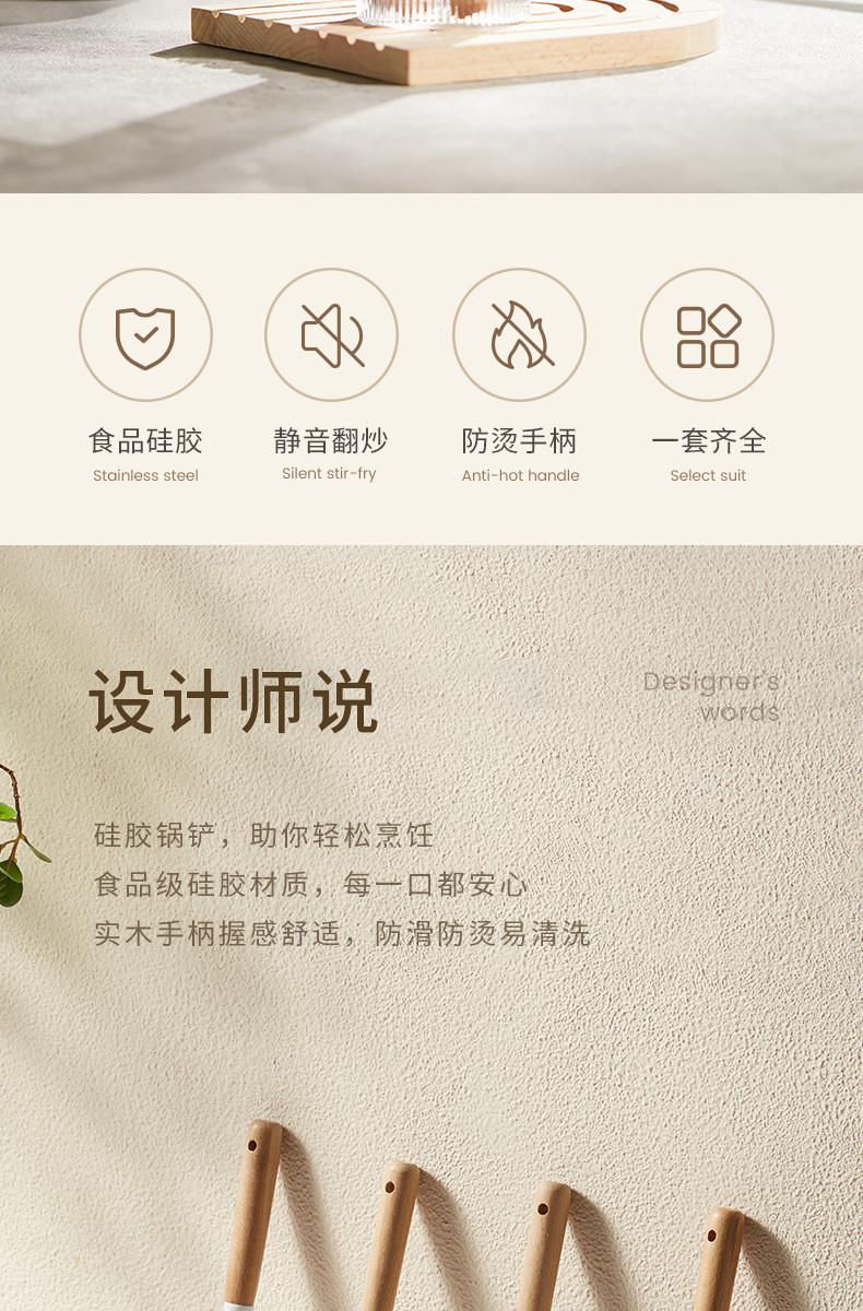 MOMO HOME家居厨房用具硅胶锅铲套装汤勺烹饪厨具用具木柄
