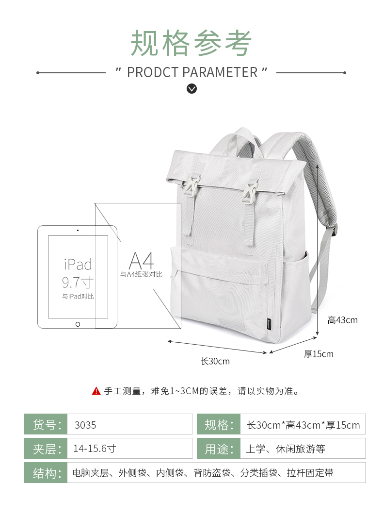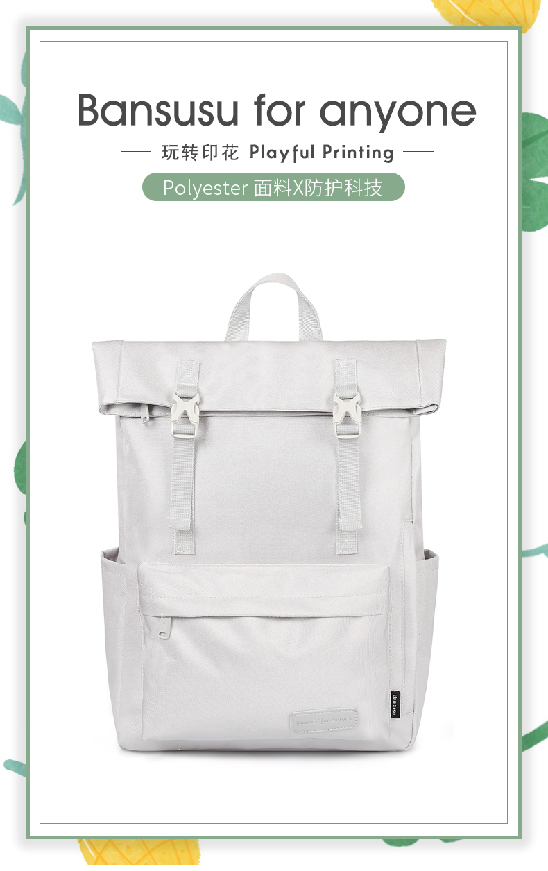 Bansusu.纯色大容量旅行双肩包背包电脑包学院风书包减压男女情侣