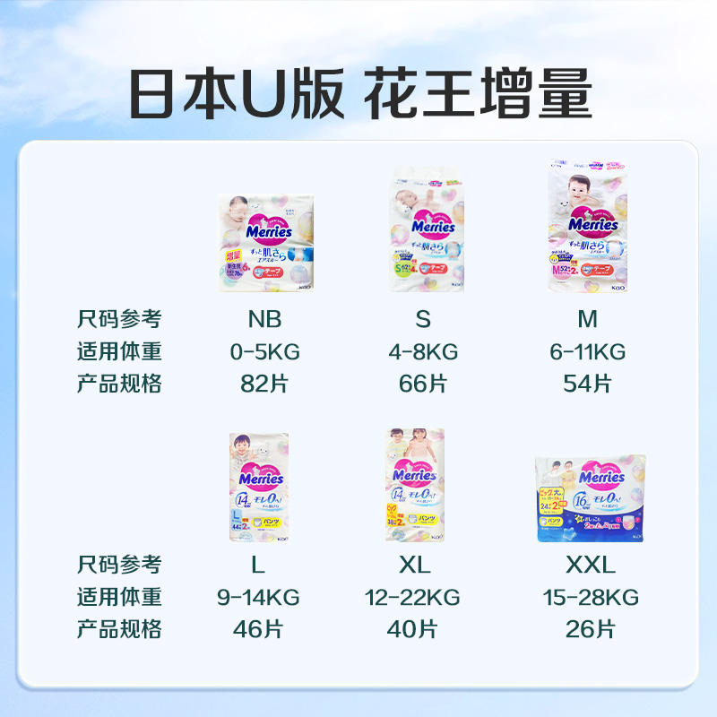 日本花王纸尿裤U版尿不湿NB S M L拉拉裤ML XL XXL新生婴儿三倍透
