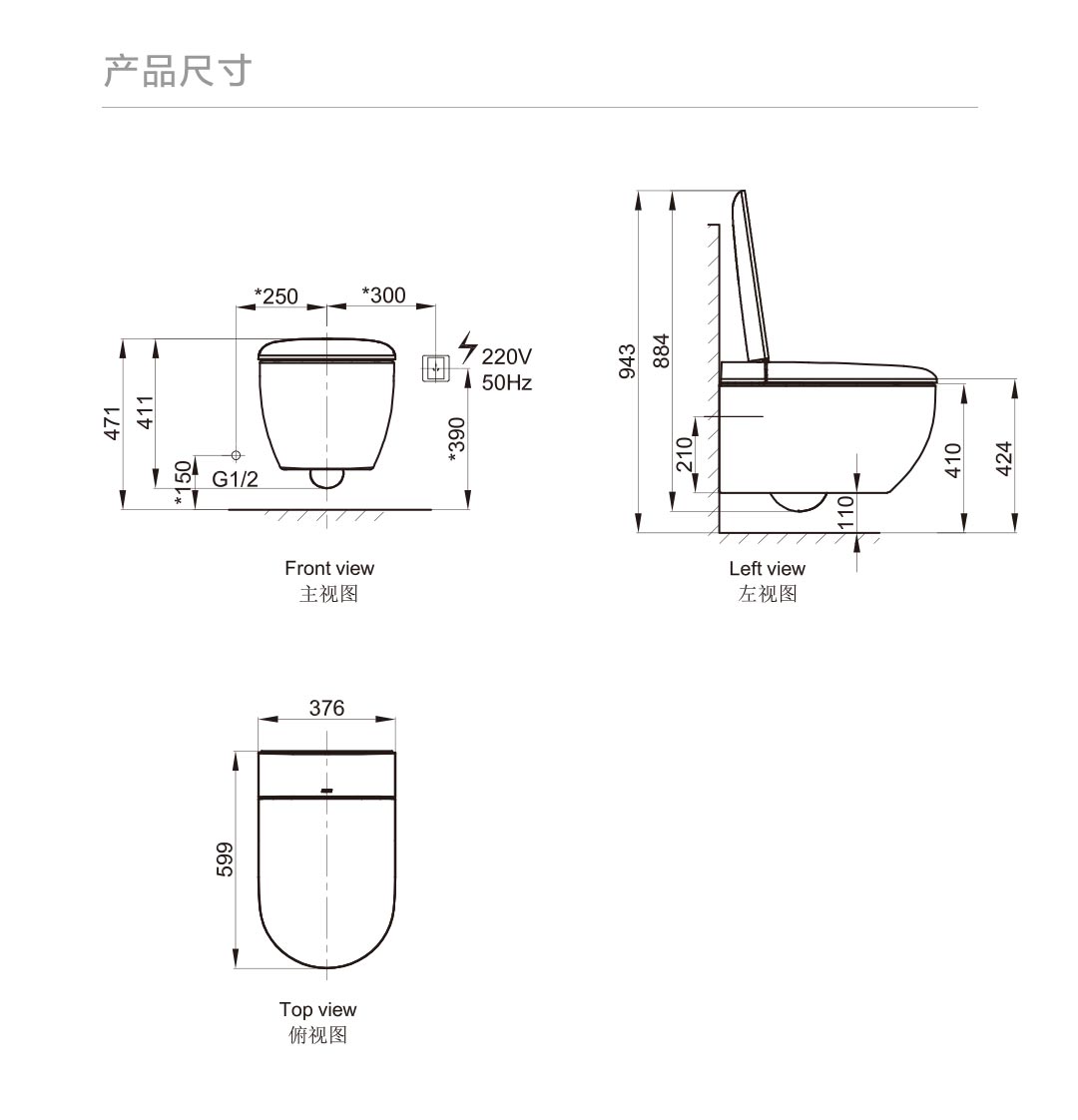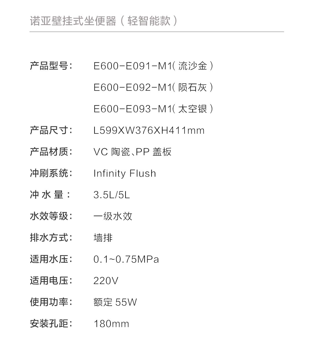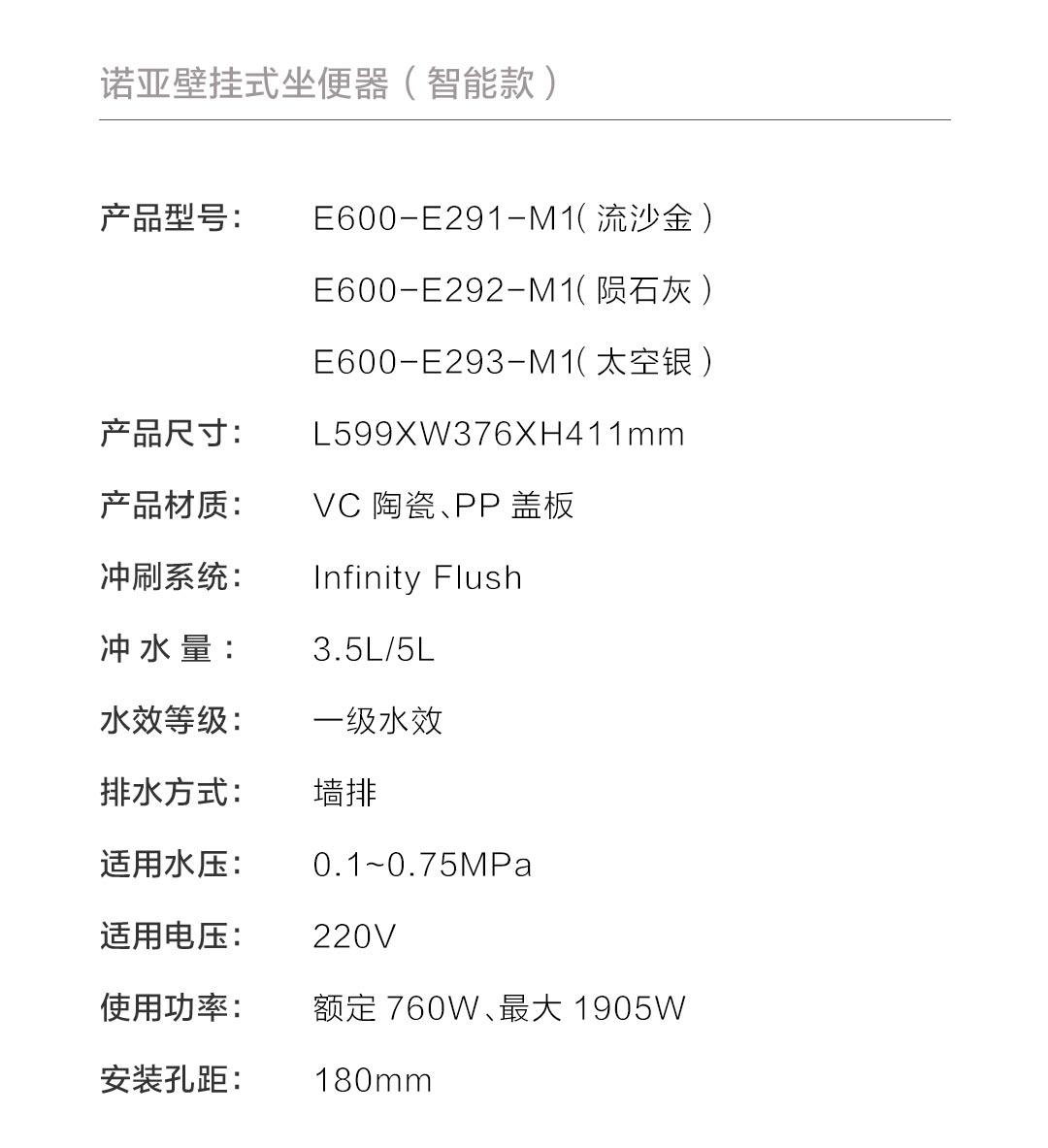 恩仕AXENT NOVIA壁挂挂墙智能坐便器马桶