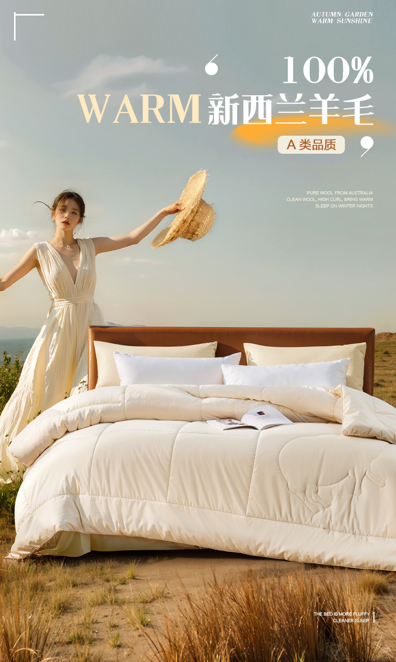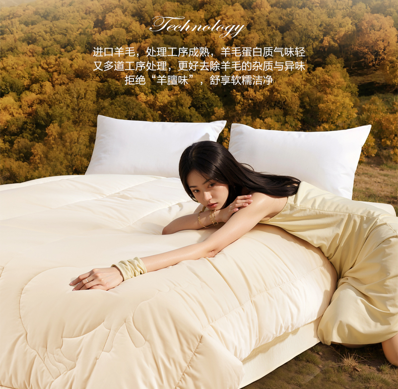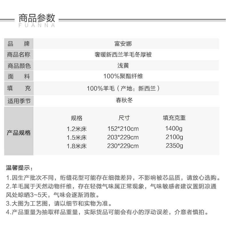 富安娜100%羊毛被新西兰进口纯羊毛被子宿舍加厚保暖冬厚被芯