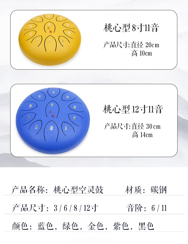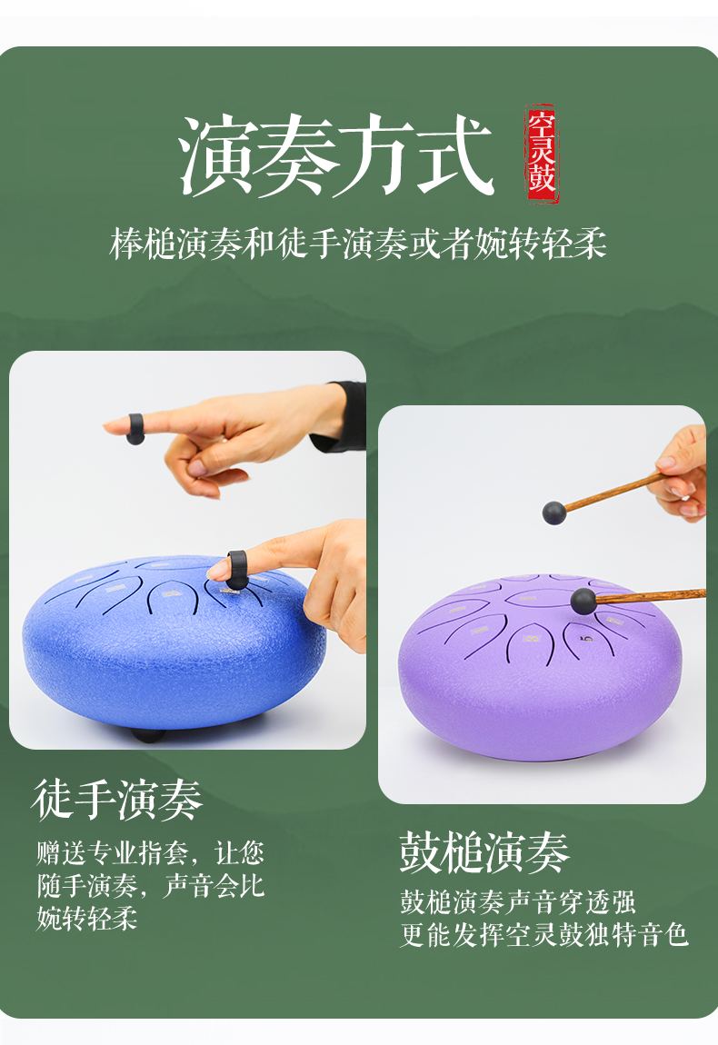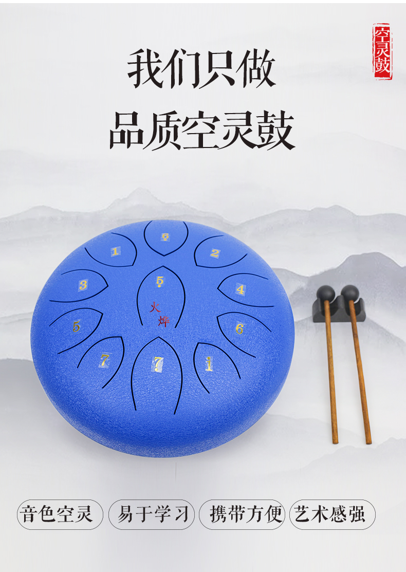 12寸6寸空灵鼓鼓 鼓 手碟鼓 寸忘忧舌8寸初学打击乐器钢无忧鼓3