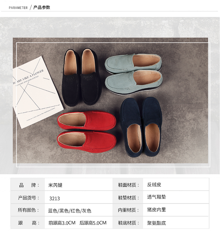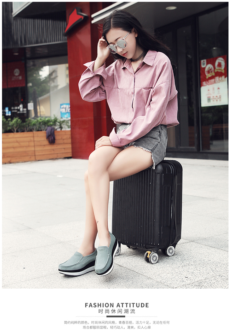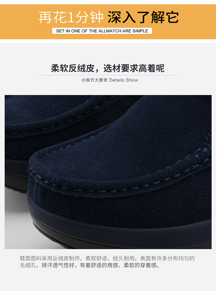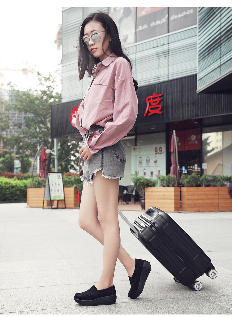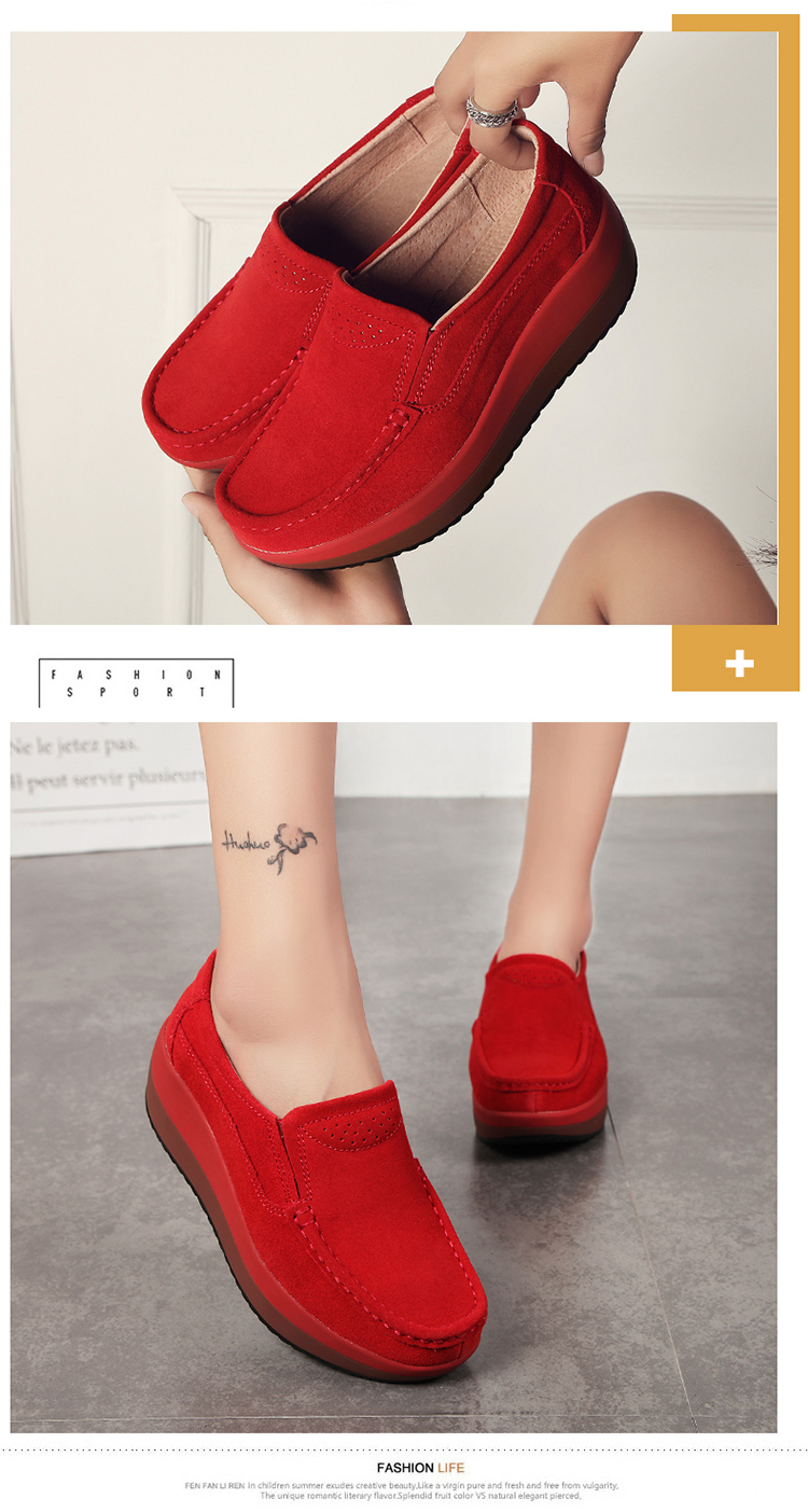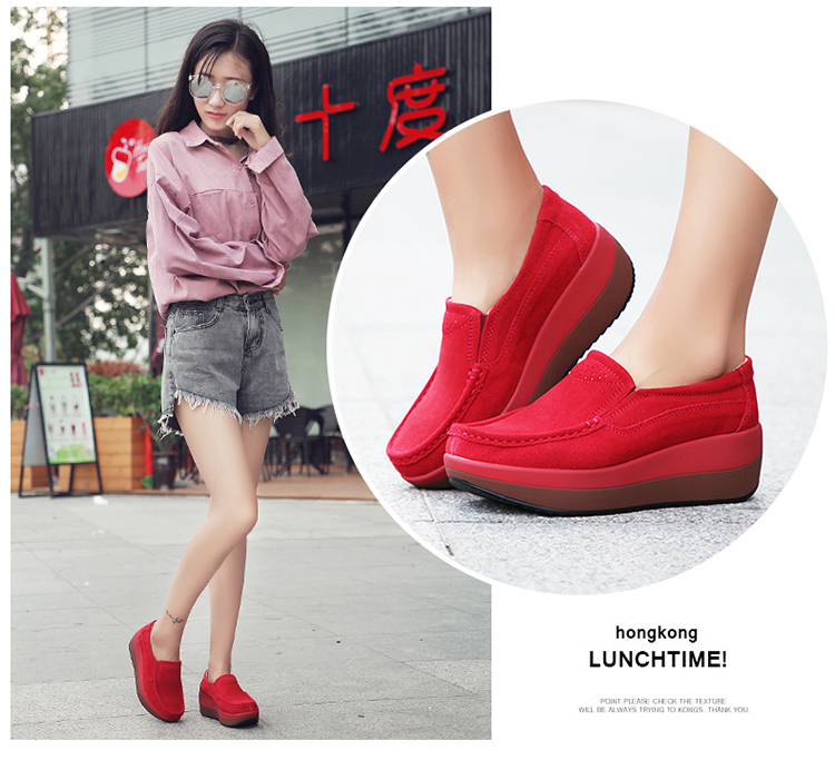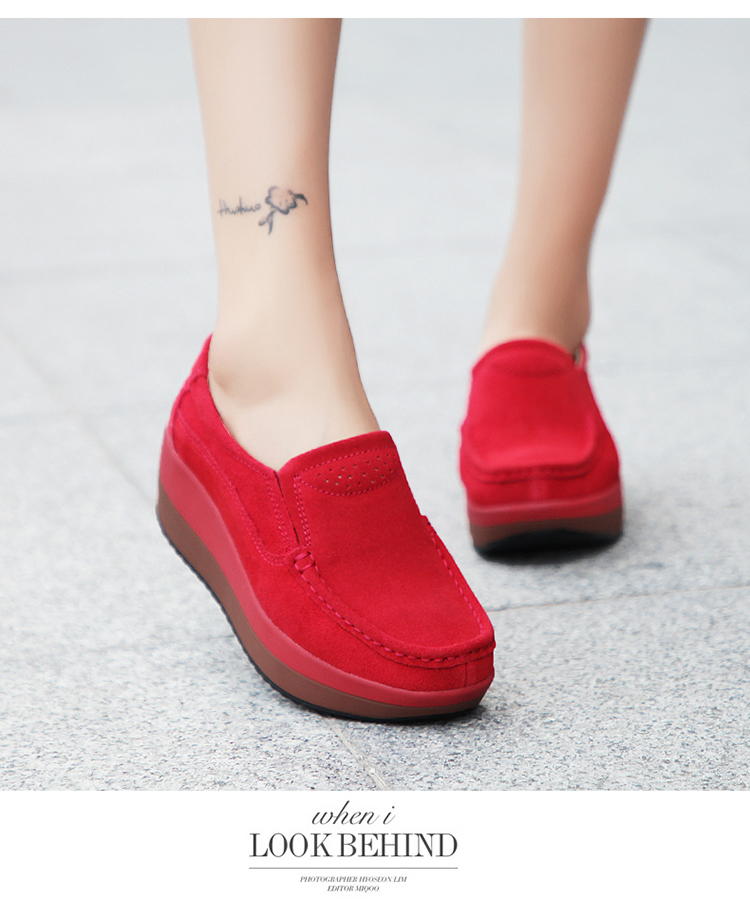 真皮休闲摇摇坡跟一脚蹬工作鞋女黑色职业女单鞋妈妈软底舒适春秋