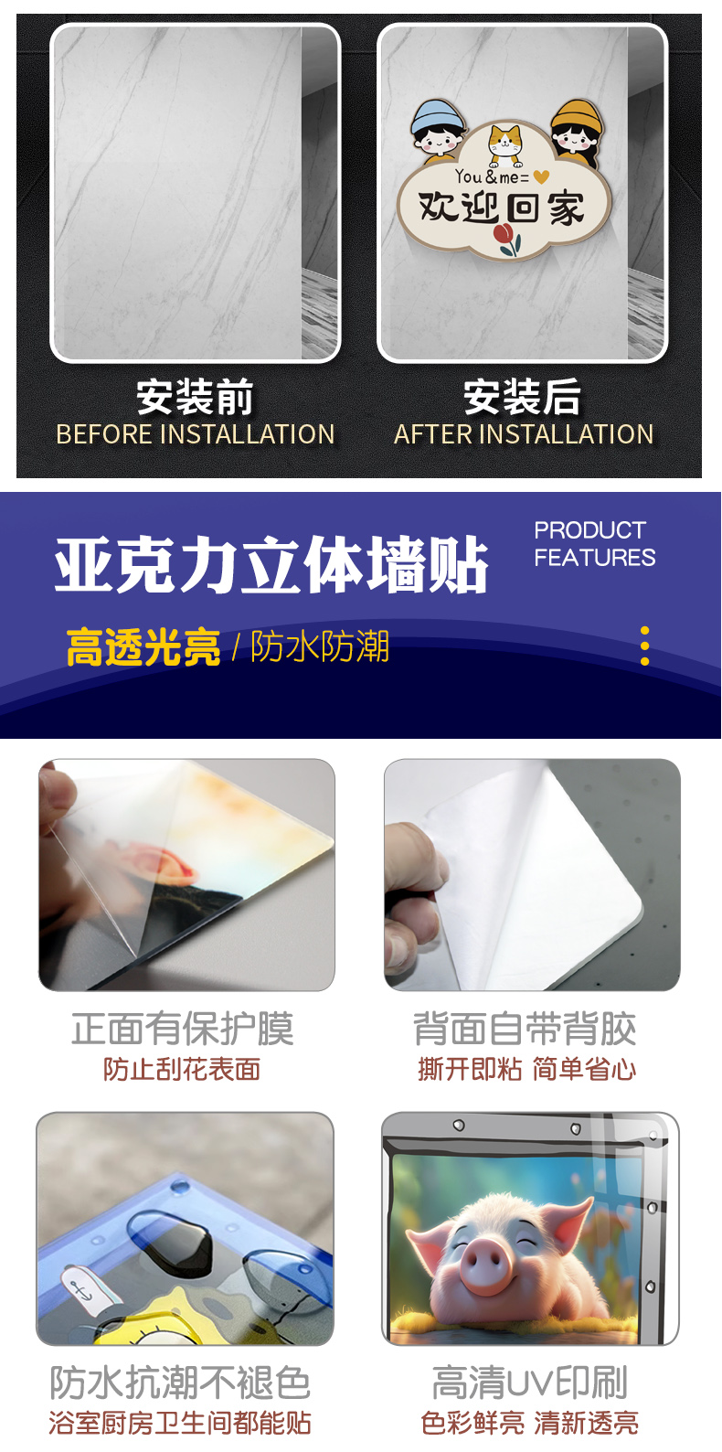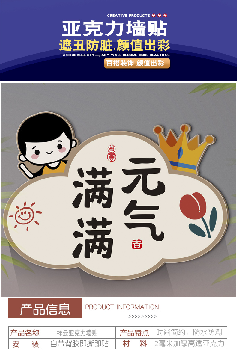 卡通可爱入户墙面遮丑贴补洞装饰贴3d立体遮丑贴定制自粘贴装饰画