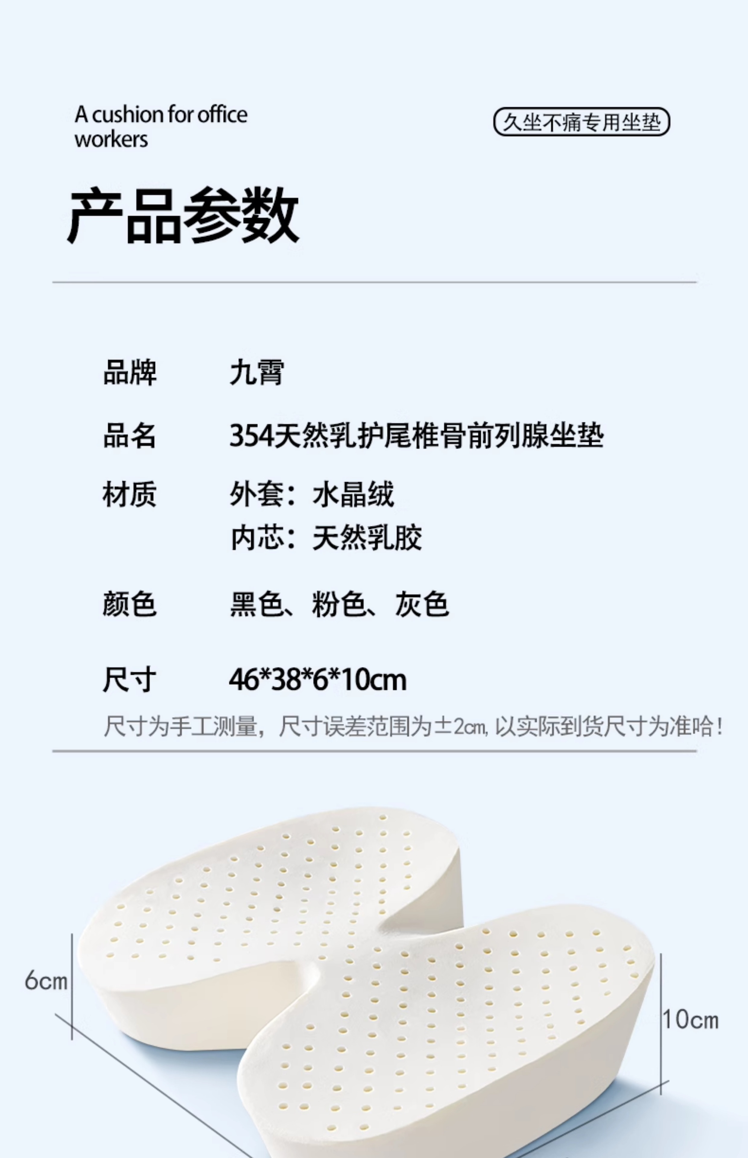 九霄天然乳胶坐垫屁垫椅垫护尾椎前列腺护臀透气办公室孕妇用座垫