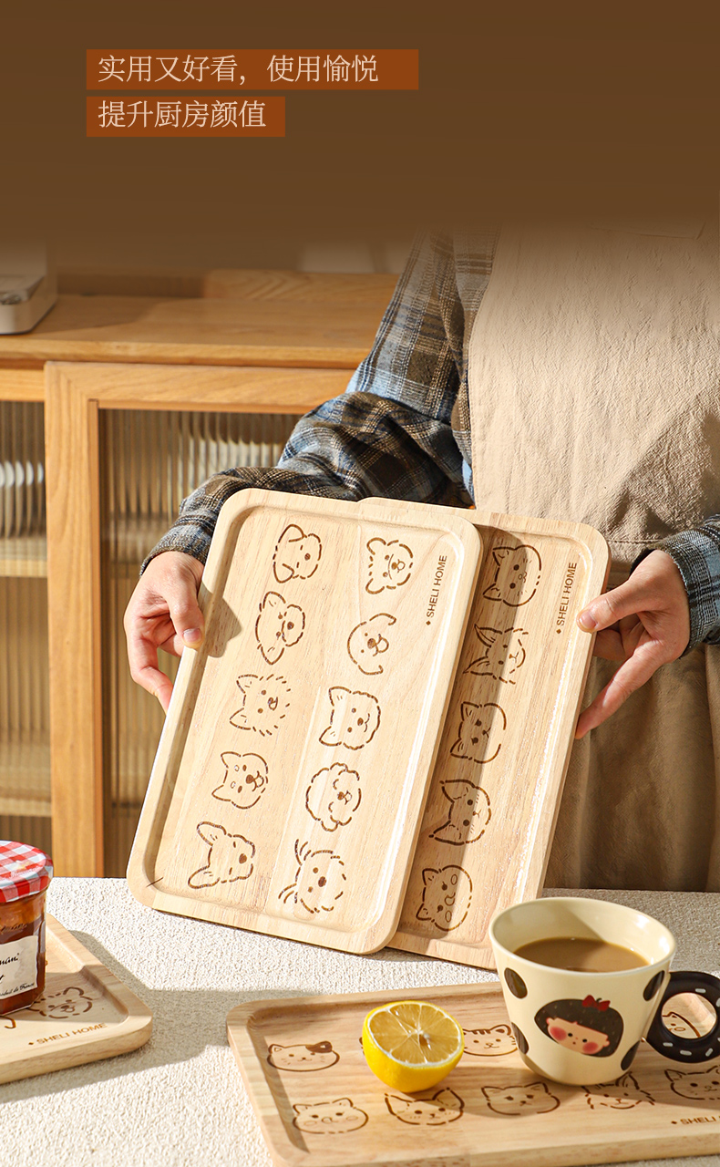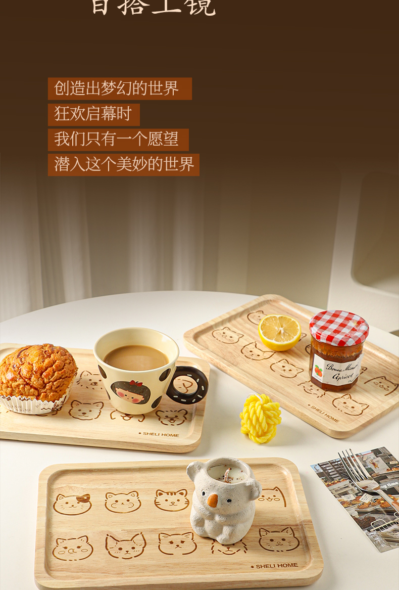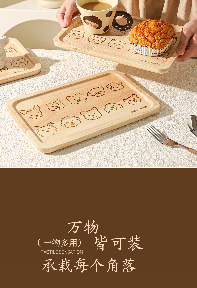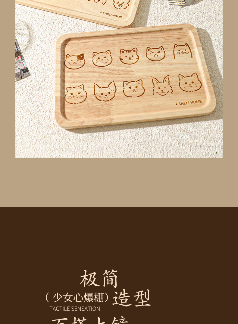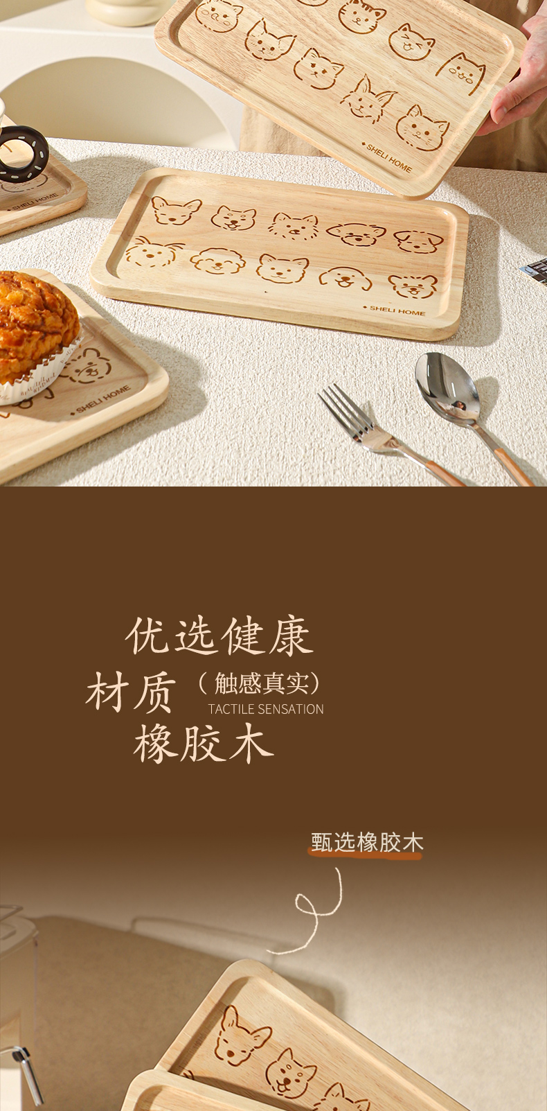 舍里橡胶木托盘可爱家用实木餐盘茶盘点心盘水果盘首饰杂物收纳盘