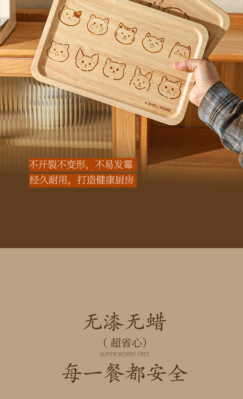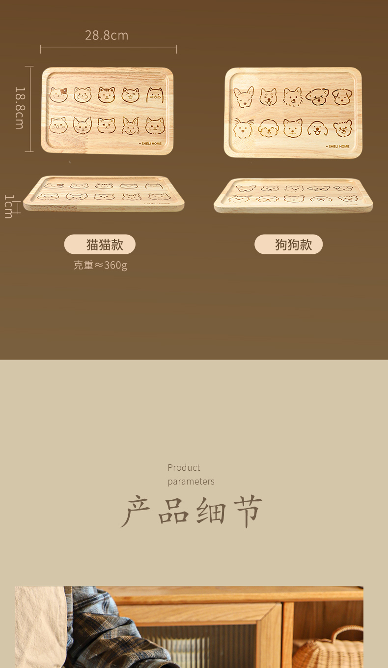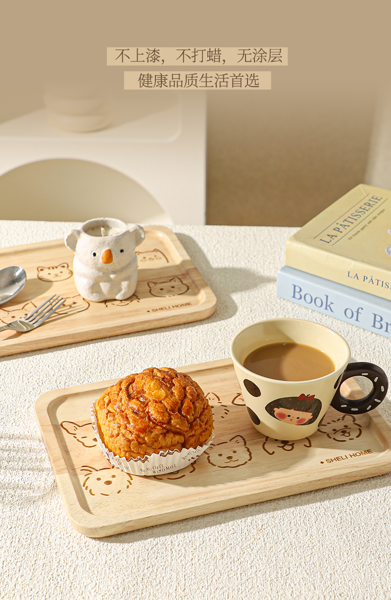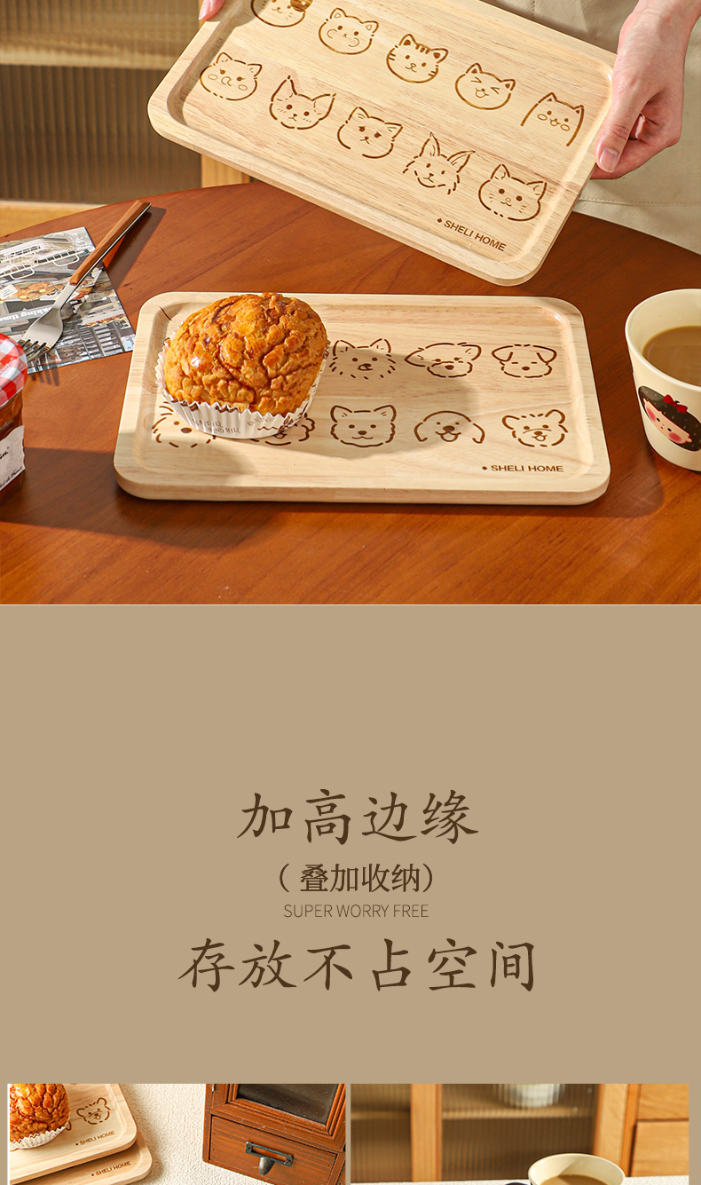 舍里橡胶木托盘可爱家用实木餐盘茶盘点心盘水果盘首饰杂物收纳盘