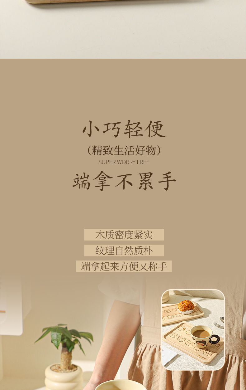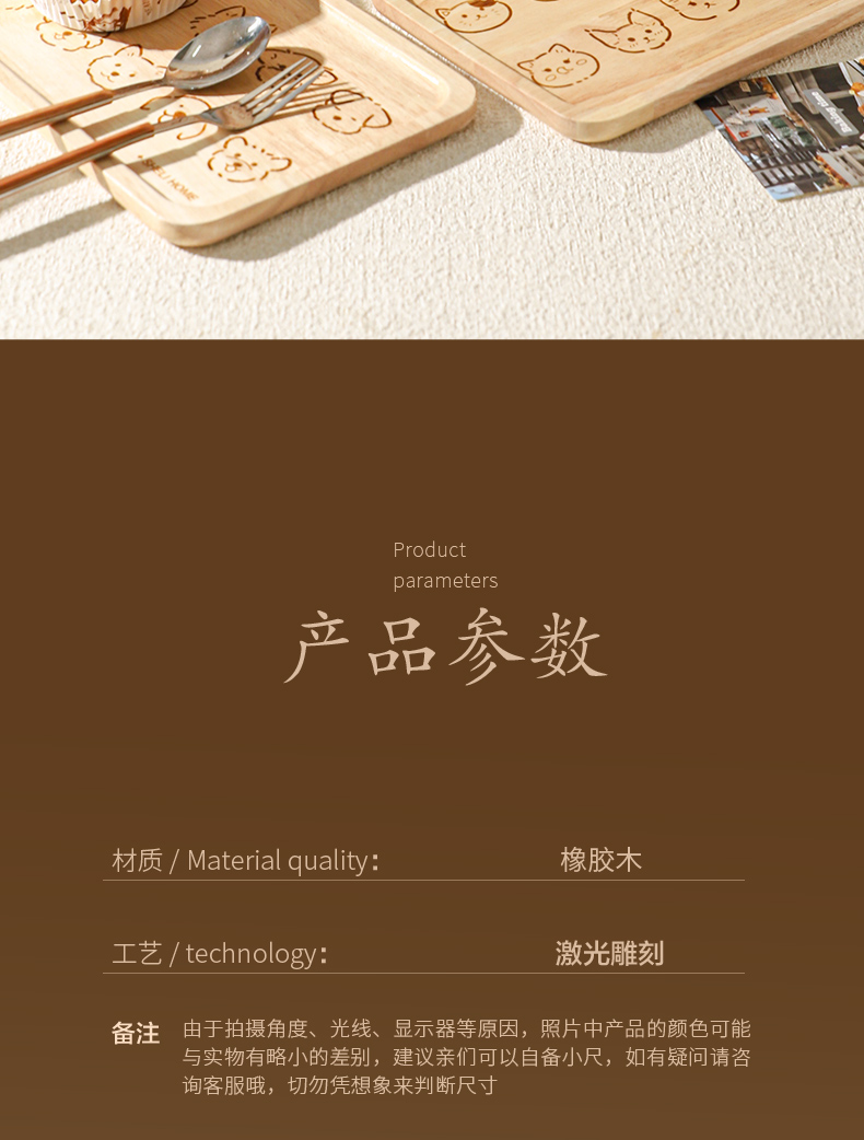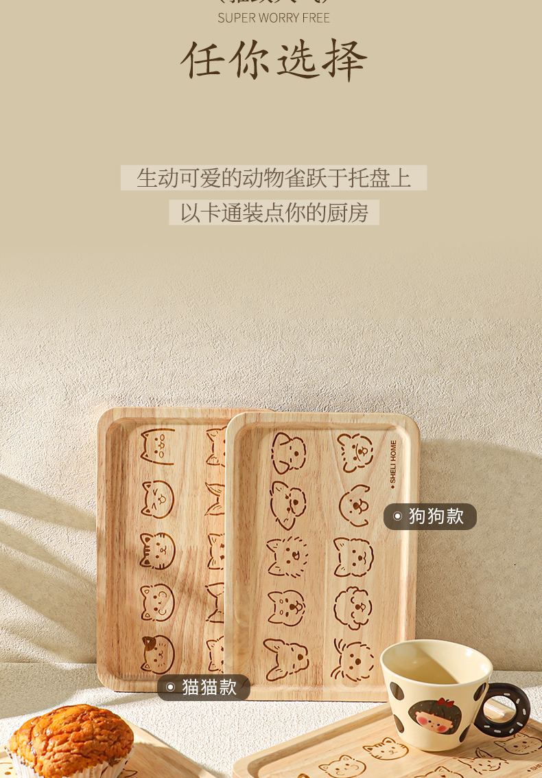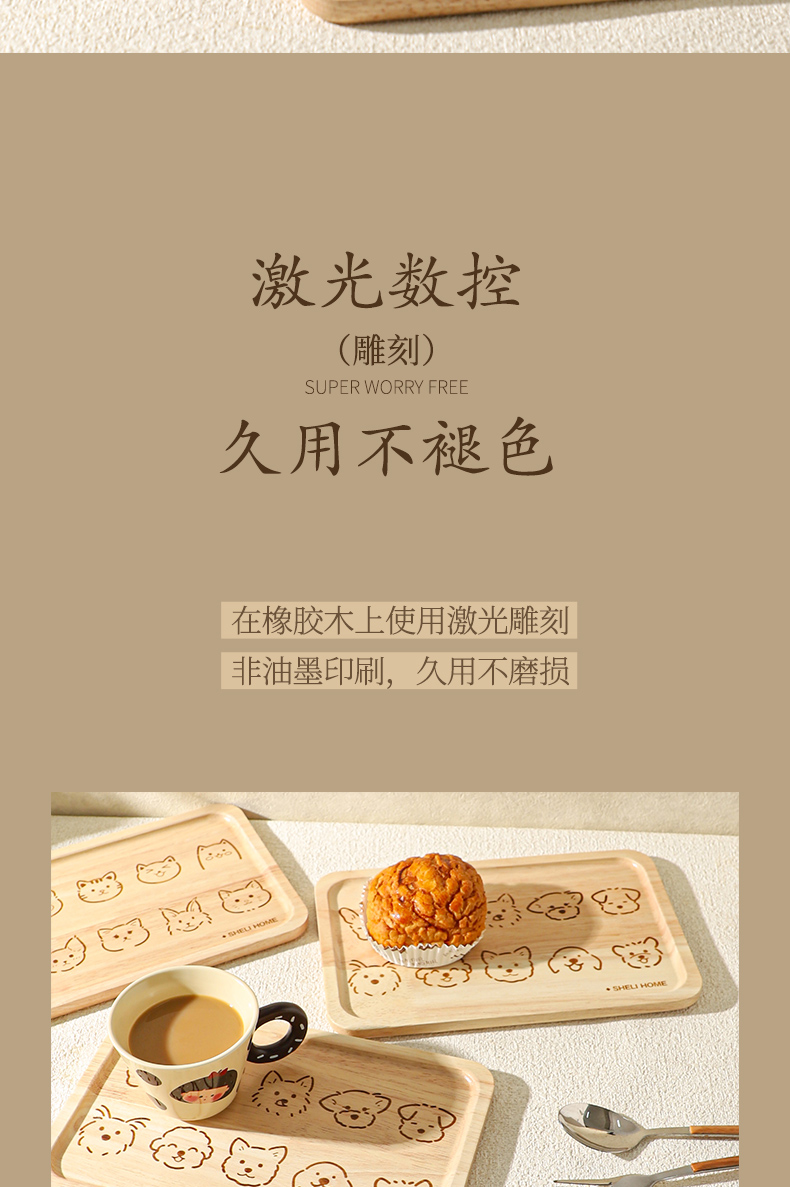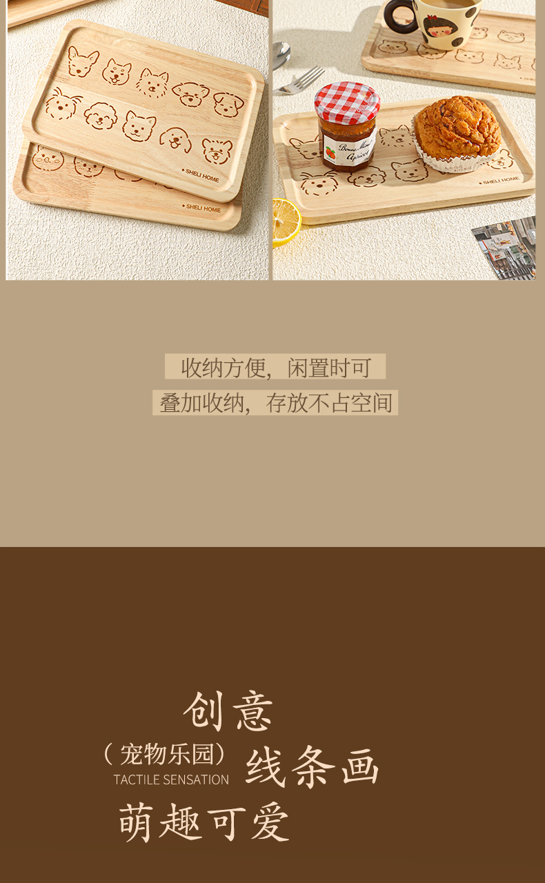 舍里橡胶木托盘可爱家用实木餐盘茶盘点心盘水果盘首饰杂物收纳盘