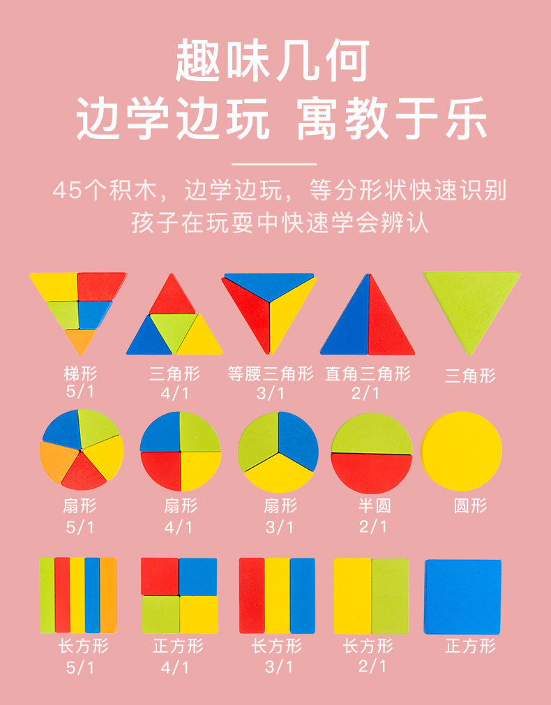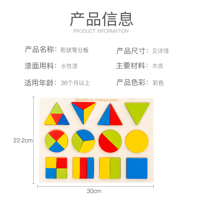 蒙氏形状认知配对玩具儿童几何等分拼图拼板木嵌板幼儿园启蒙教具