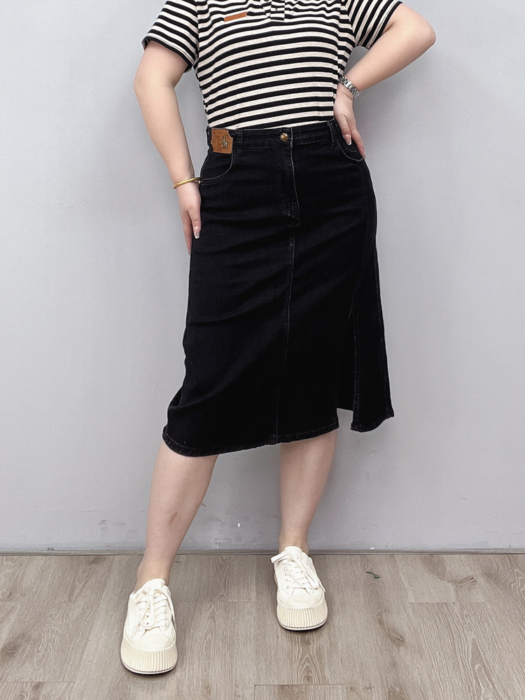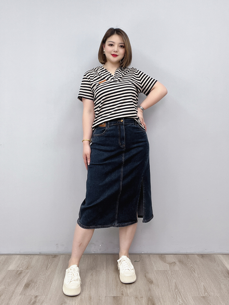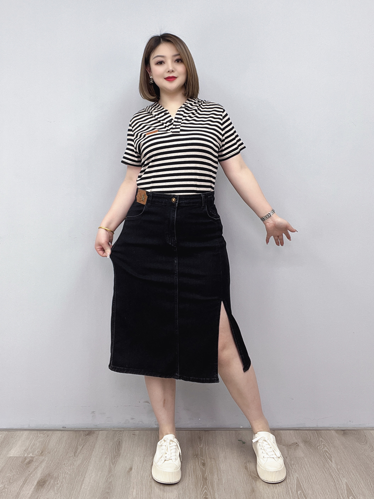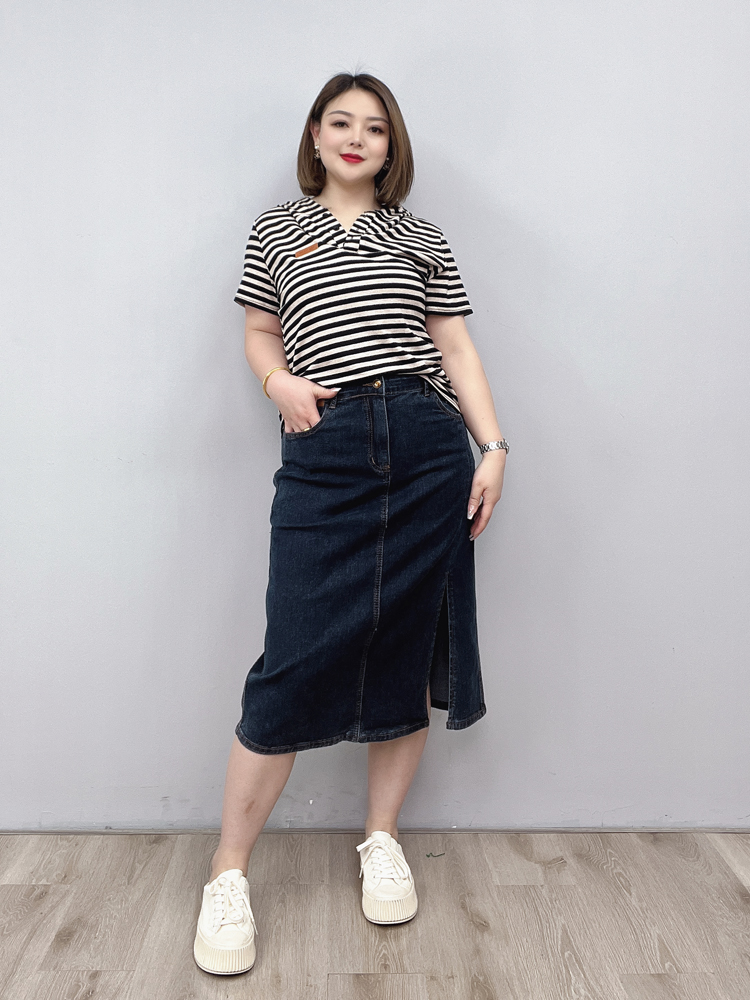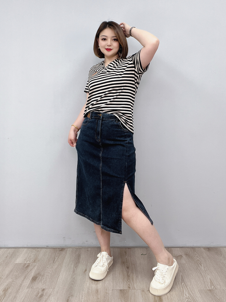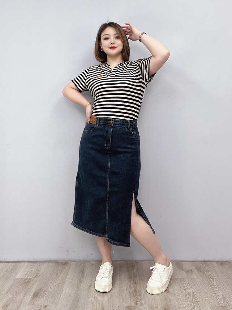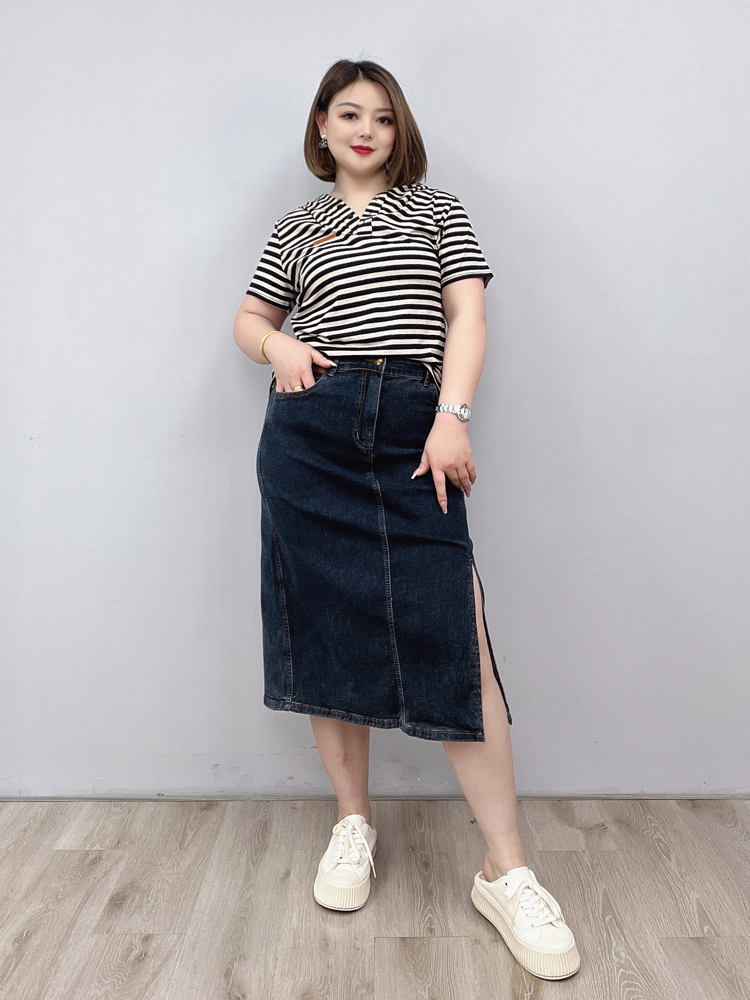 高腰牛仔半身裙女2025春夏装新款大码胖mm宽松显瘦百搭开叉a字裙