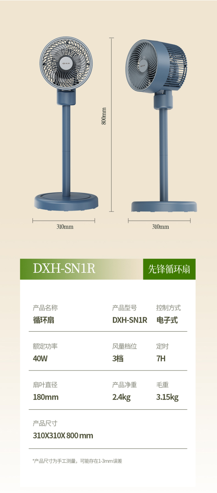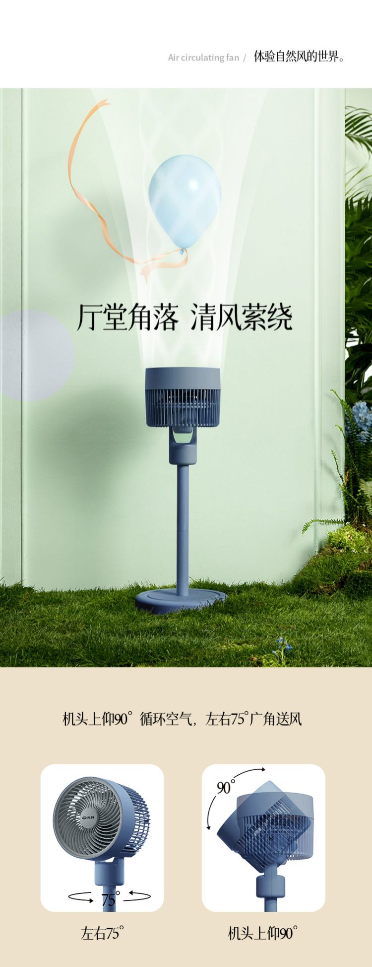 先锋空气循环扇家用电风扇摇头立式落地扇大风力遥控台式宿舍电扇