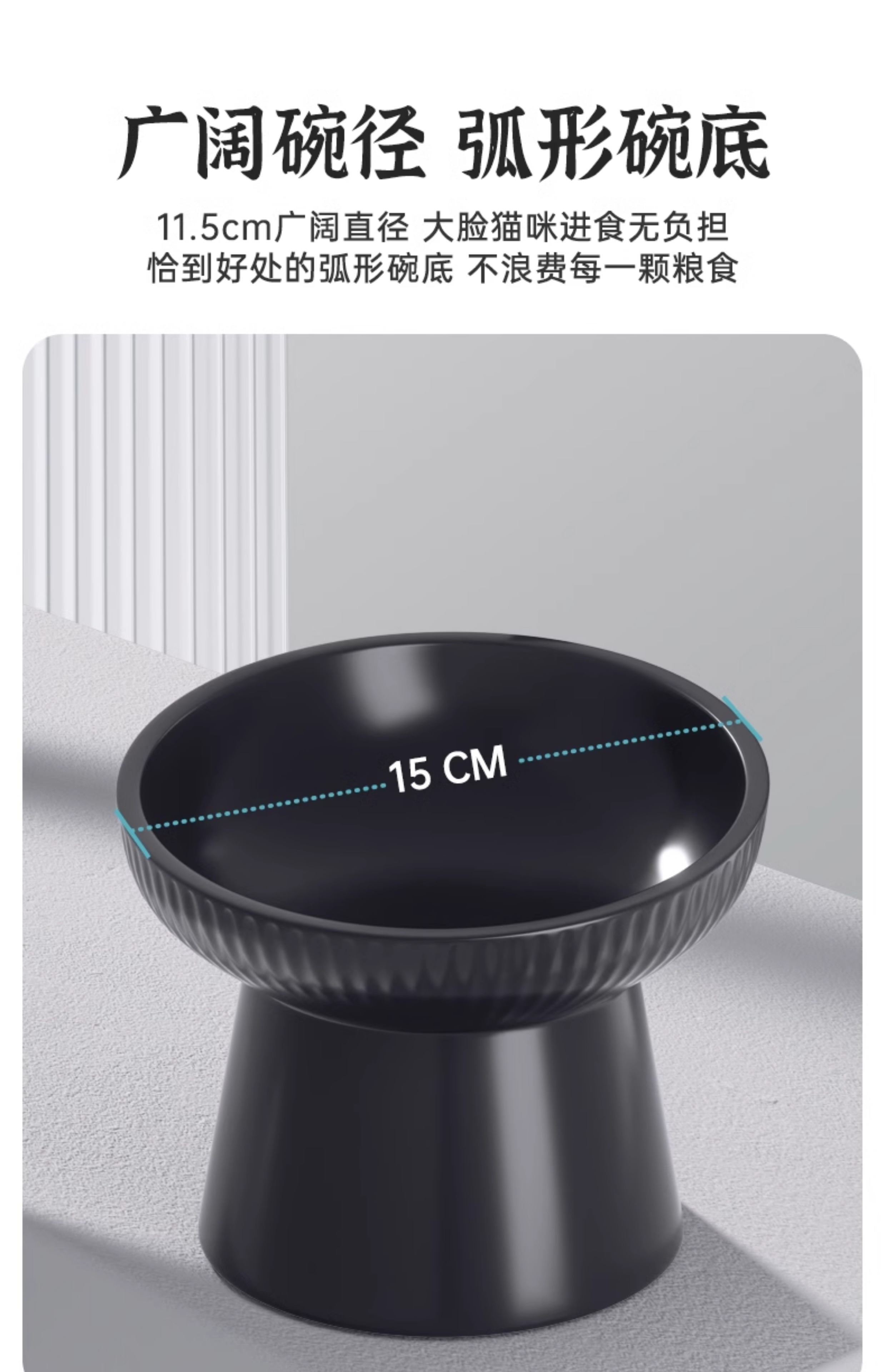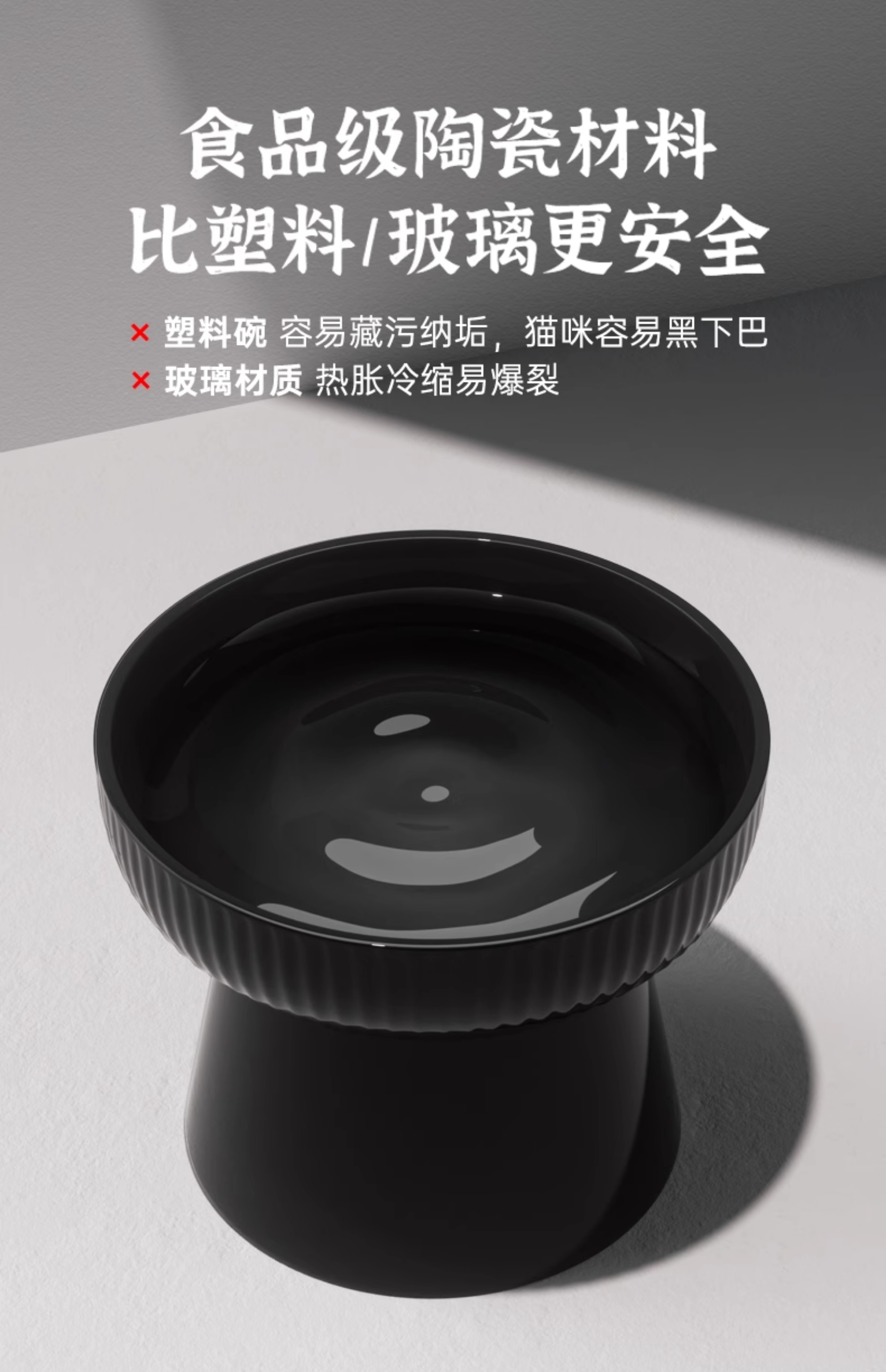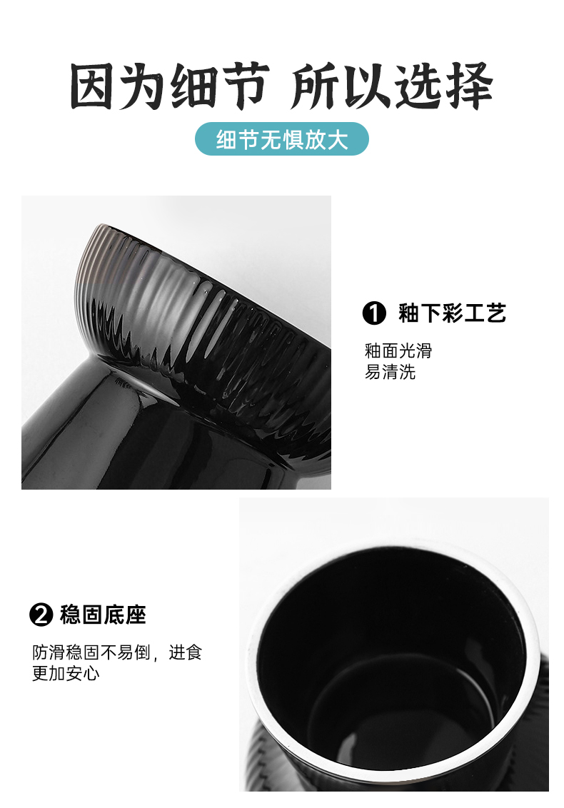 黑色猫碗陶瓷高脚猫碗猫食盆陶瓷猫盆喝水防打翻幼猫狗食盆宠物碗