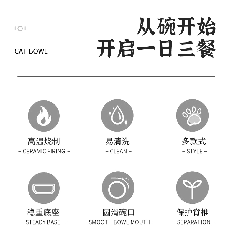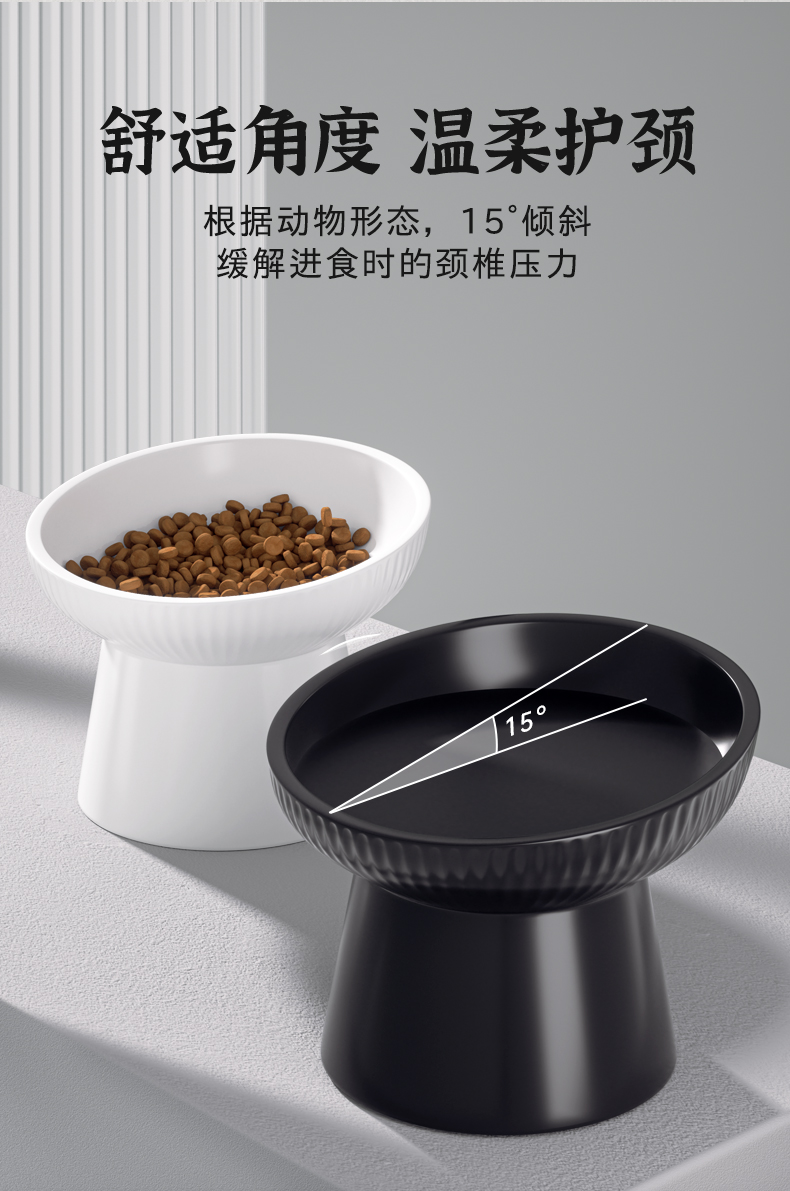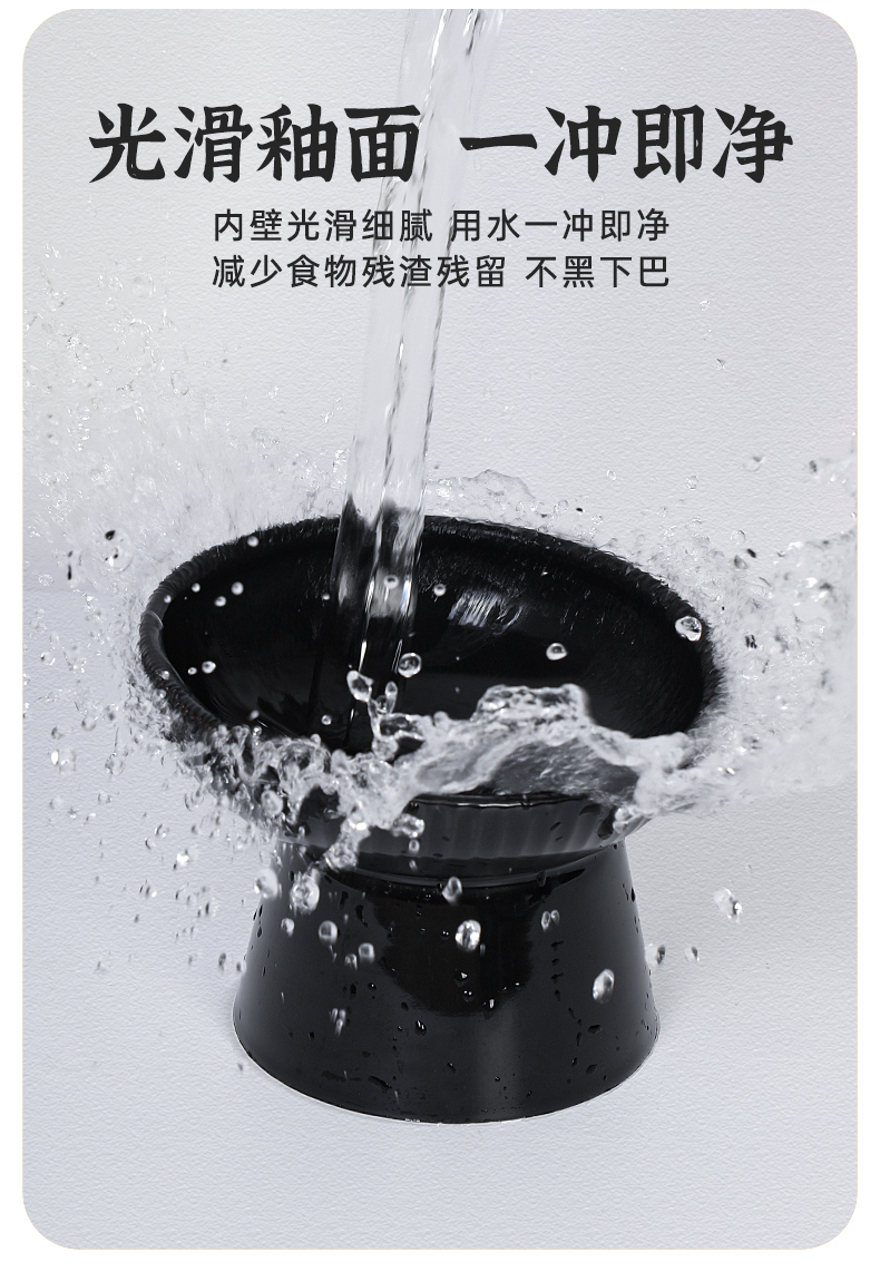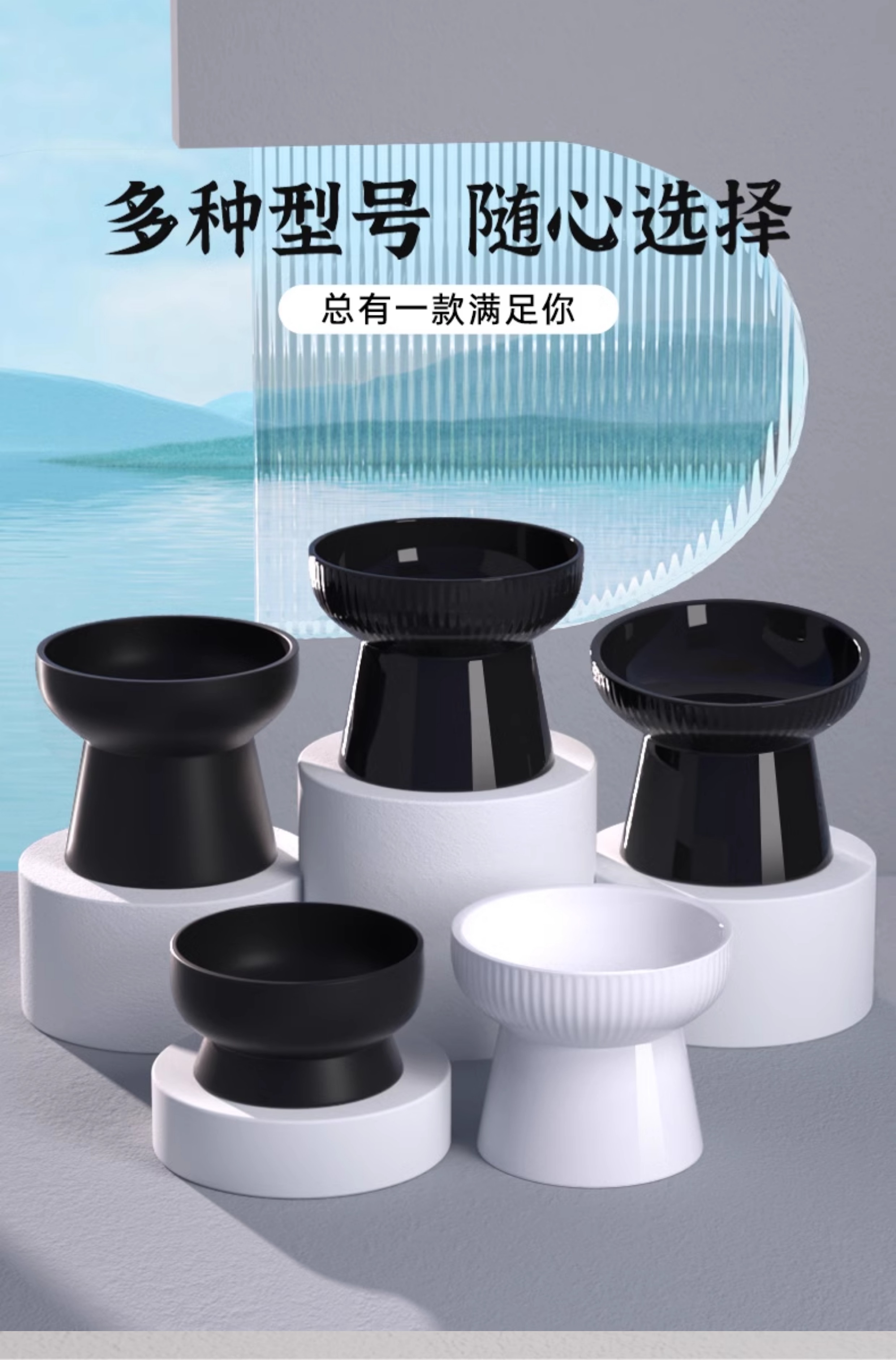 黑色猫碗陶瓷高脚猫碗猫食盆陶瓷猫盆喝水防打翻幼猫狗食盆宠物碗