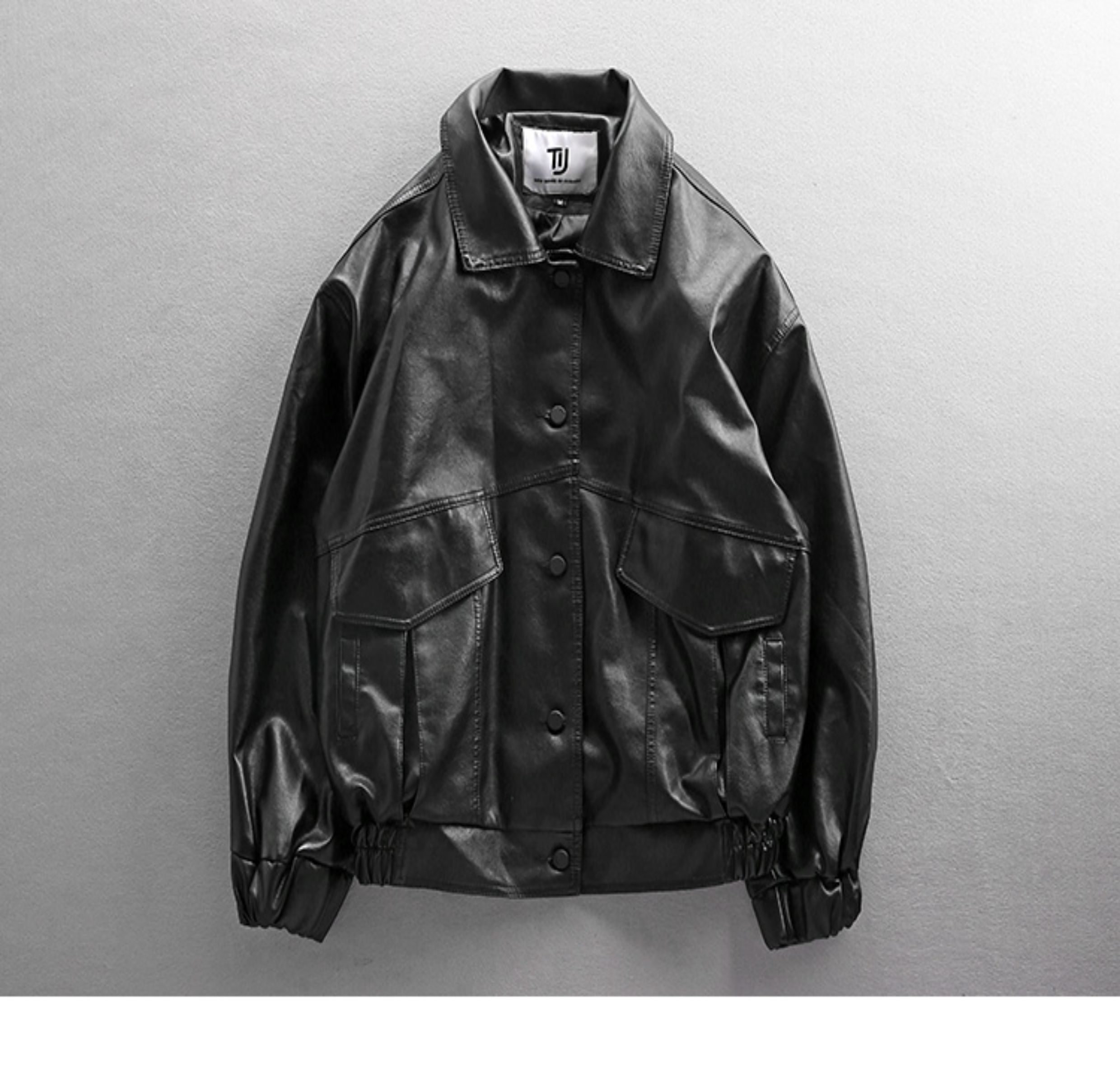 欧美潮流徽章刺绣皮衣外套男加绒加厚痞帅宽松情侣机车服PU皮夹克