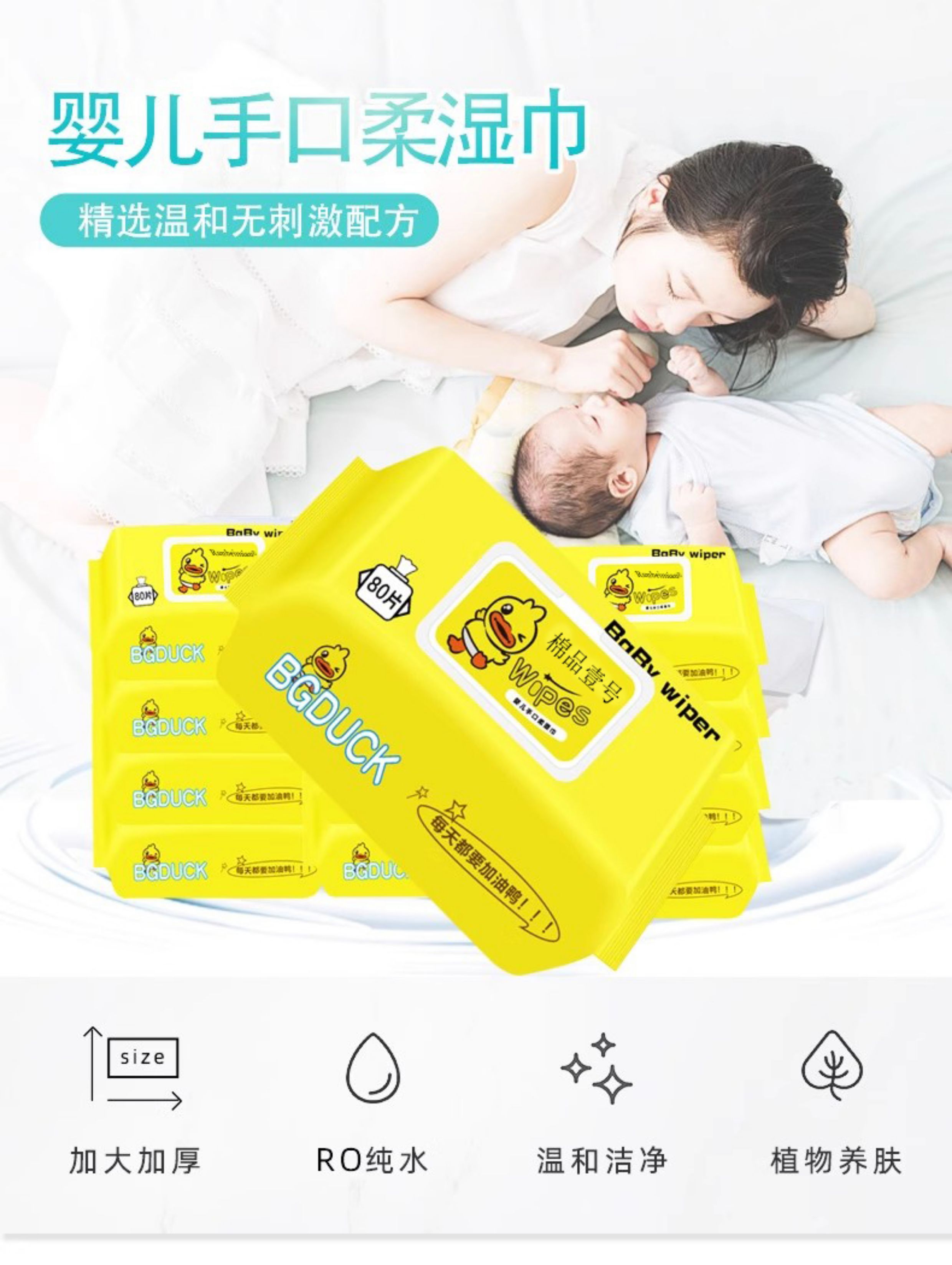 婴儿湿巾纸家用大包婴幼儿童新生手口专用80抽湿巾纸