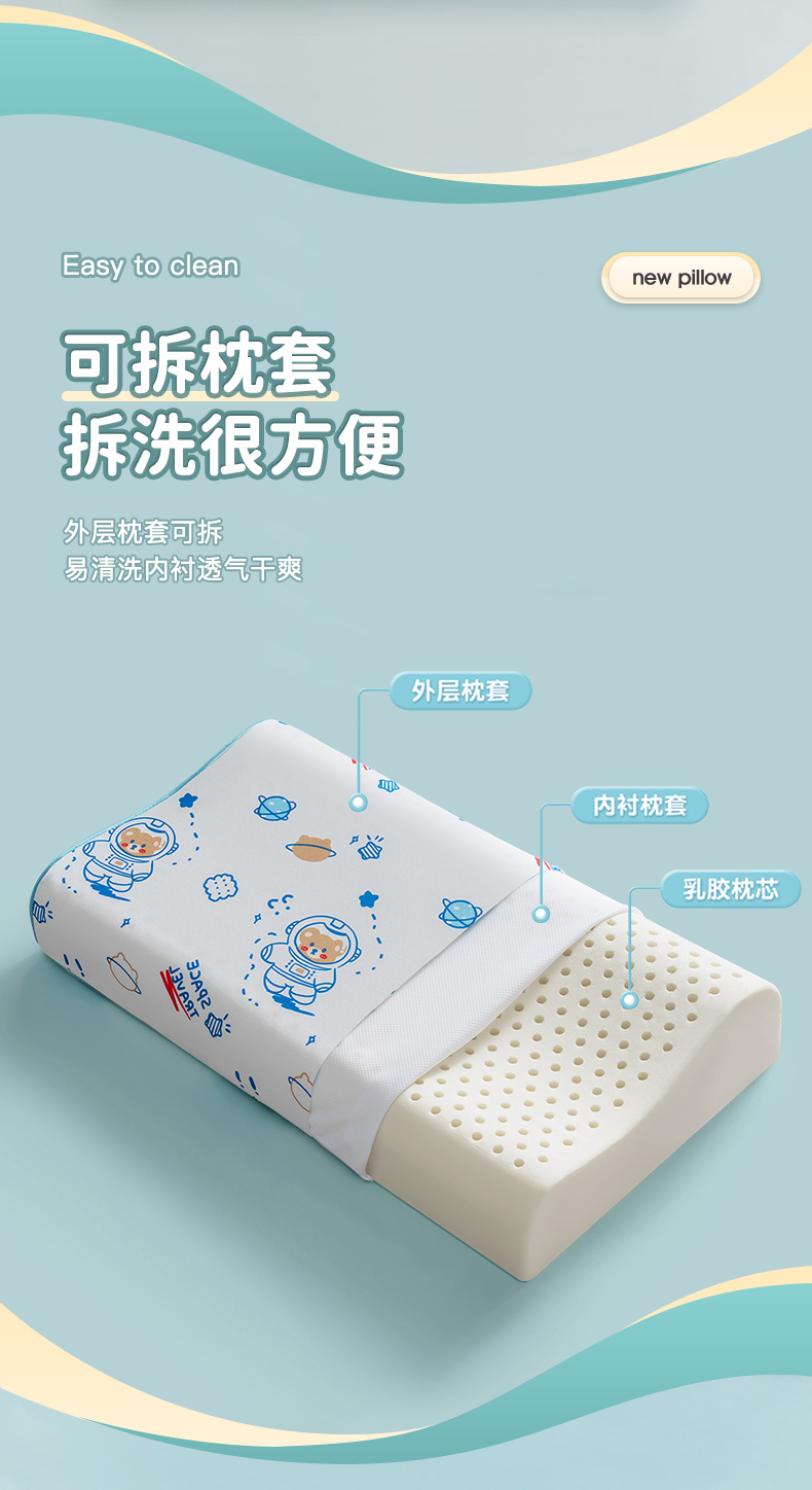 儿童乳胶枕头泰国天然橡胶3岁以上小学生专用幼儿园宝宝小孩枕芯6