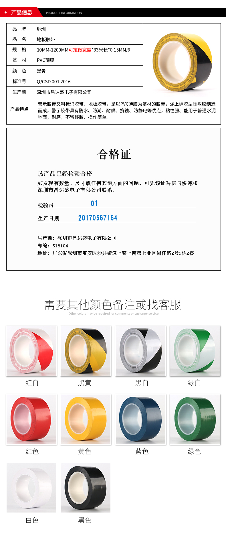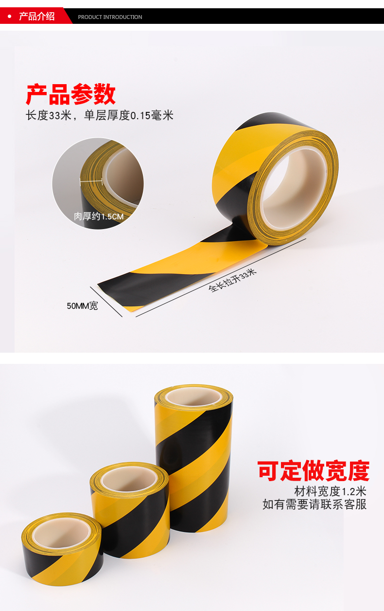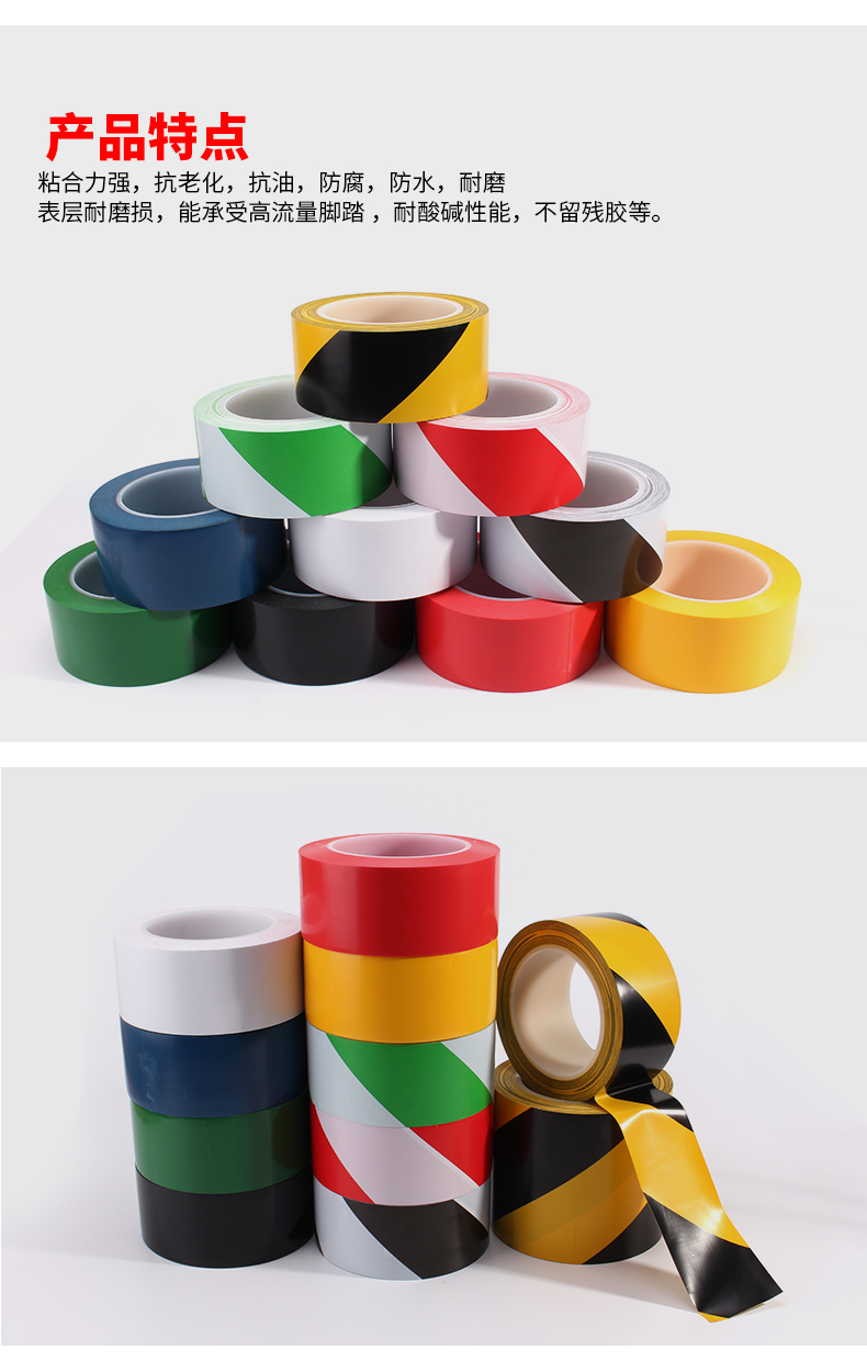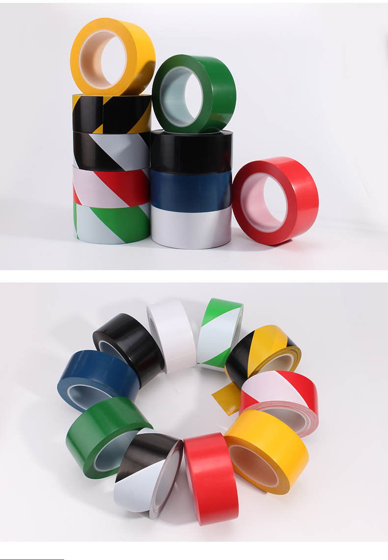 黄黑警示胶带 黑黄地板胶纸 黄黑斑马线 PVC划线胶带纸无尘胶管芯3 3m长红黄蓝绿白绿彩色标示定位贴地面胶带