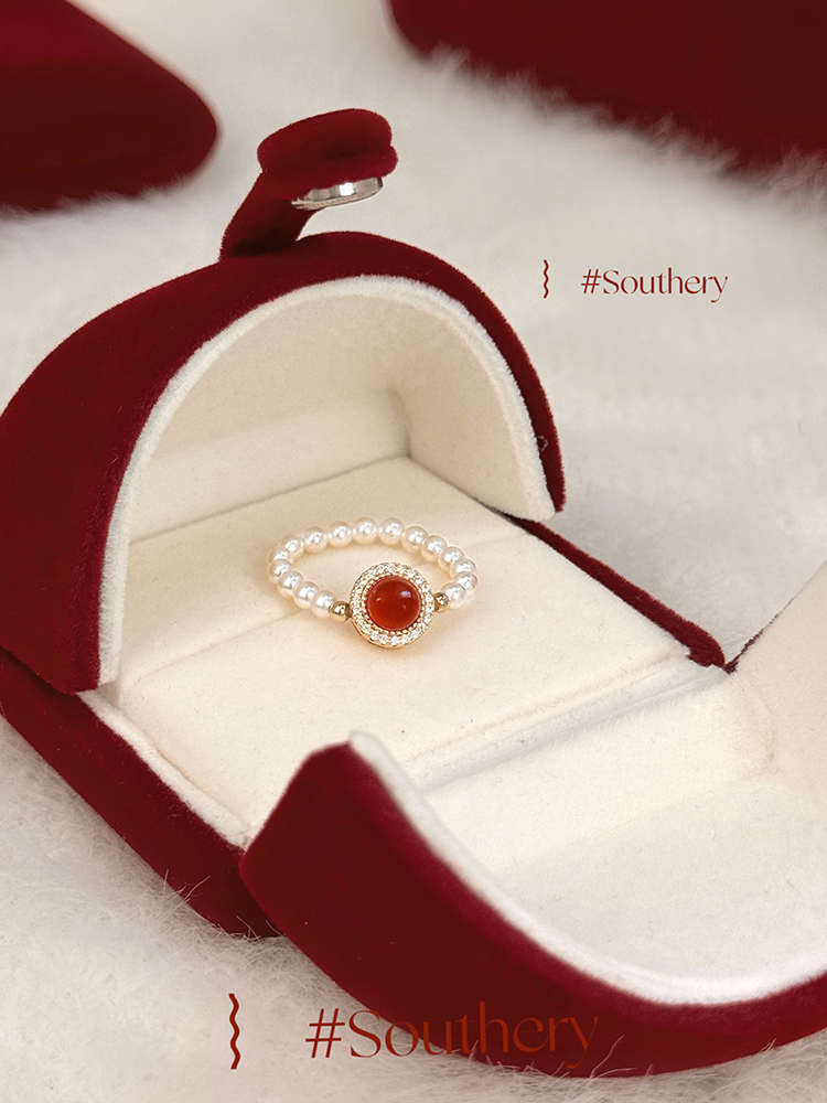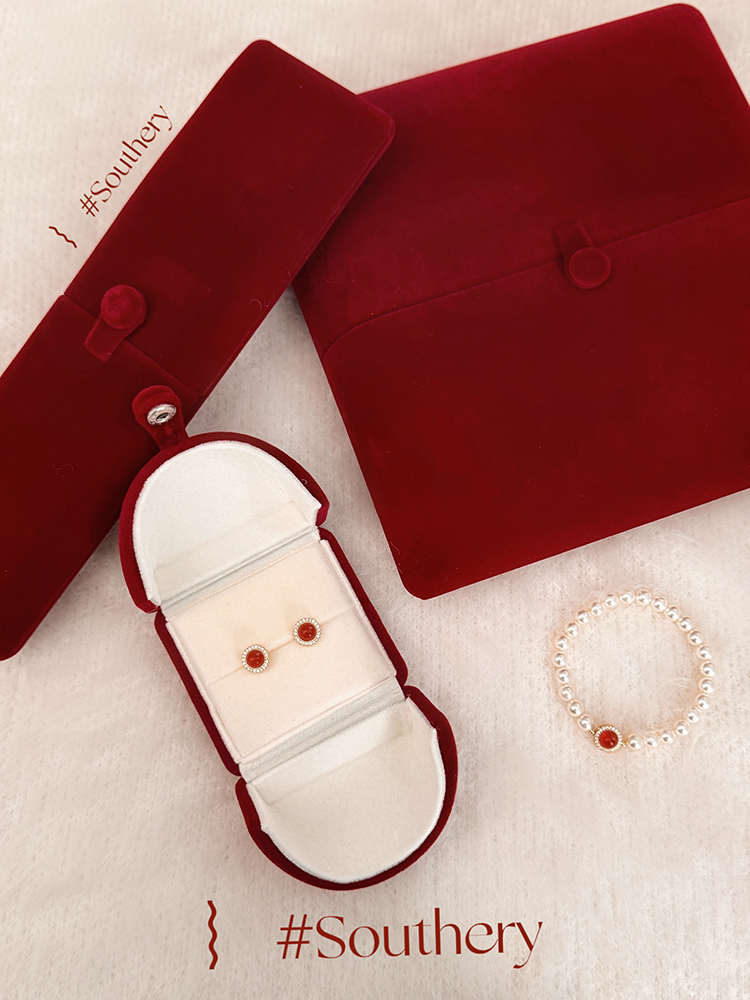 Southery 复古创意红色丝绒戒指收纳盒小型首饰品包装盒礼盒高档