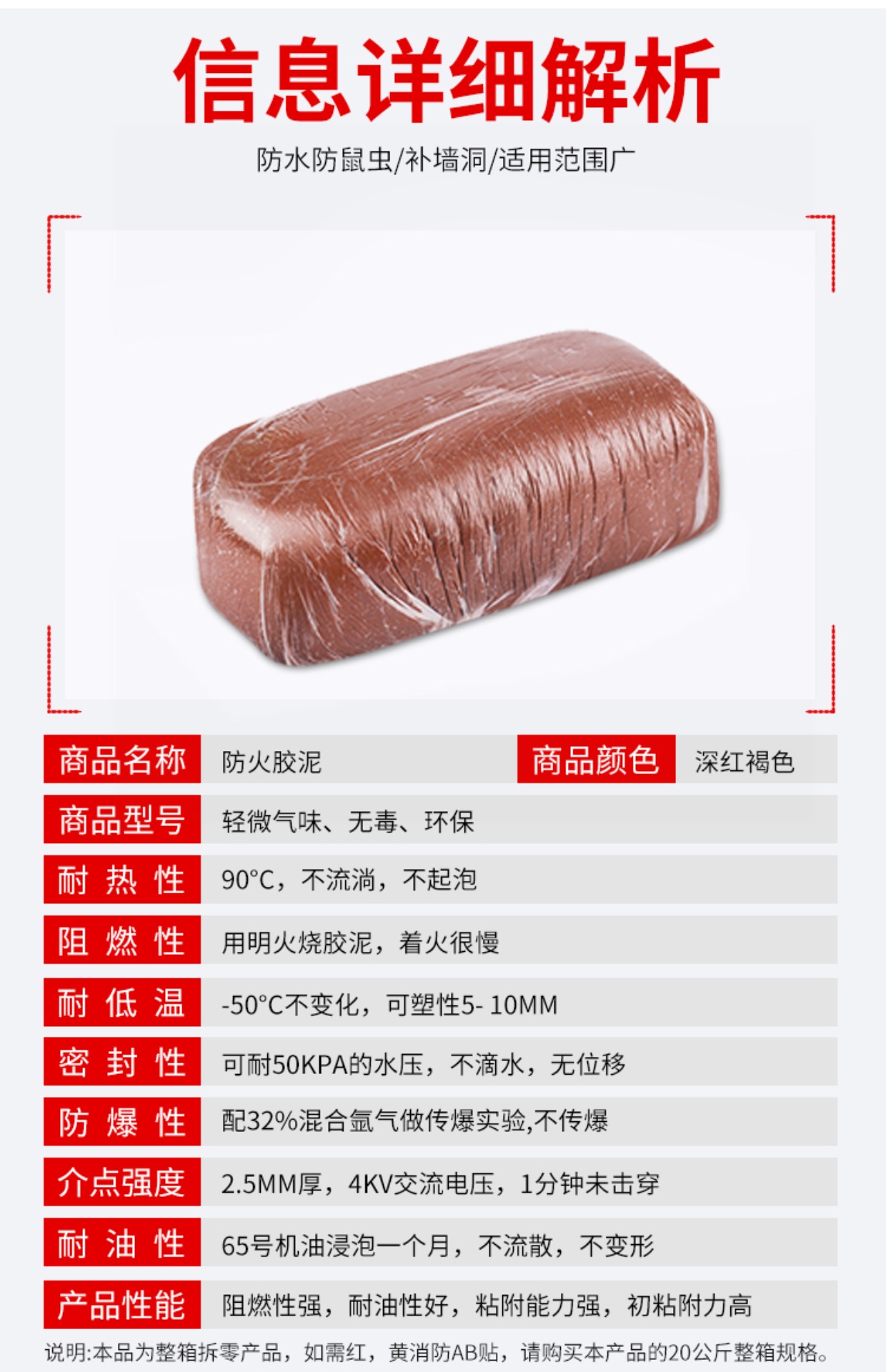 耐高温防火泥消防电力工程封堵20公斤有机防火胶泥空调堵洞密封泥
