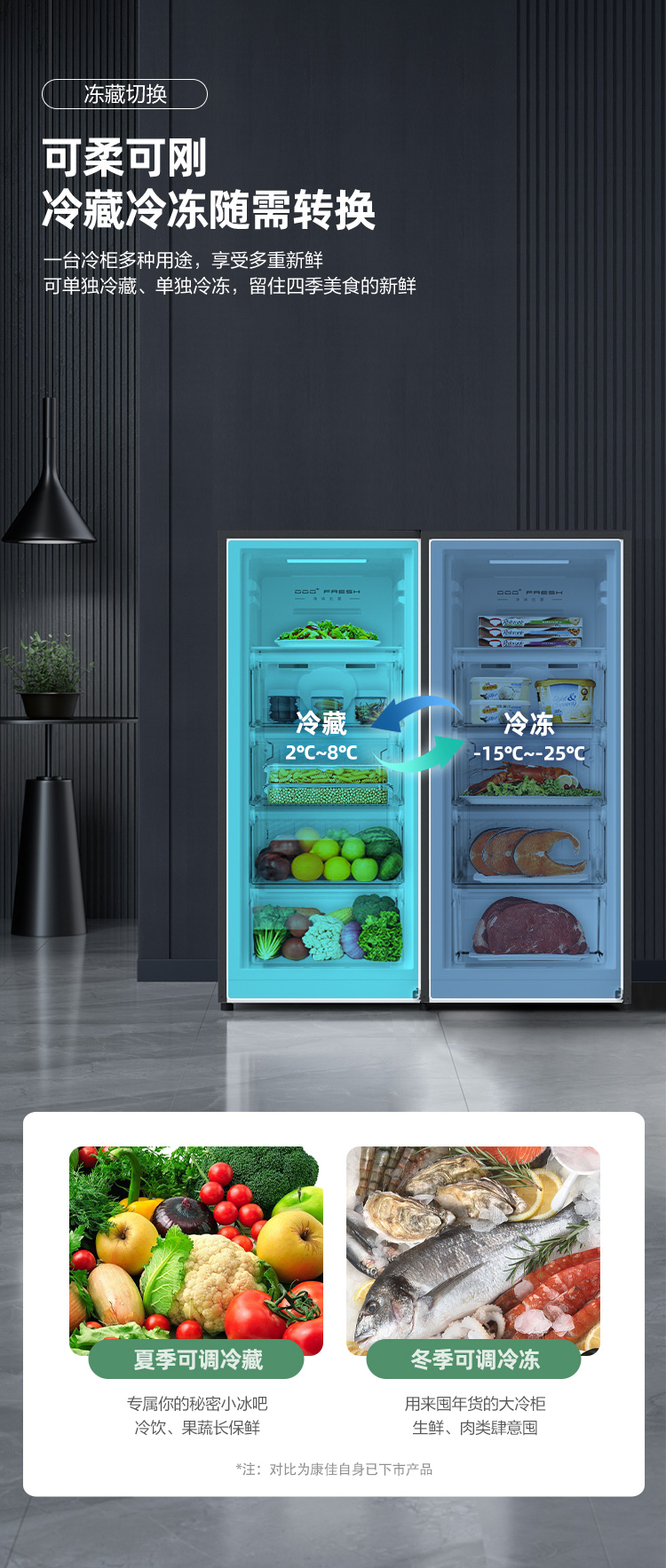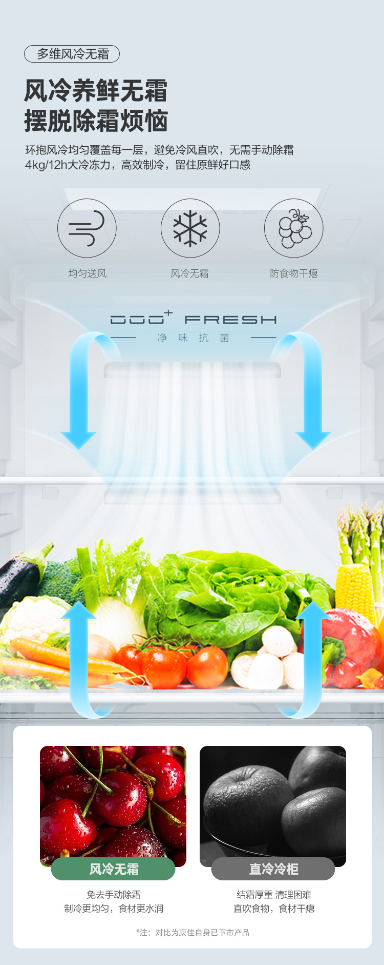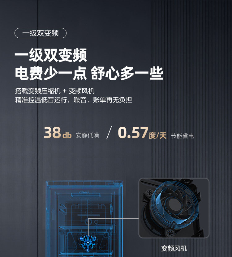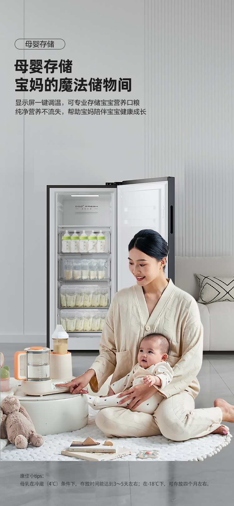 康佳131升立式冷柜家用节能冷藏冷冻保鲜母婴抑菌除味风冷变频